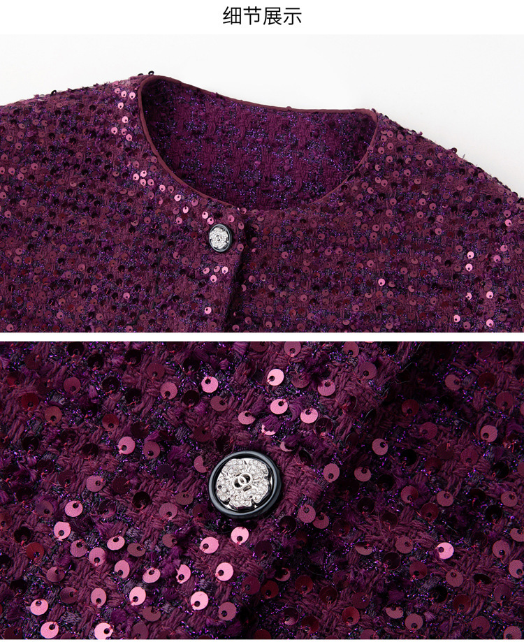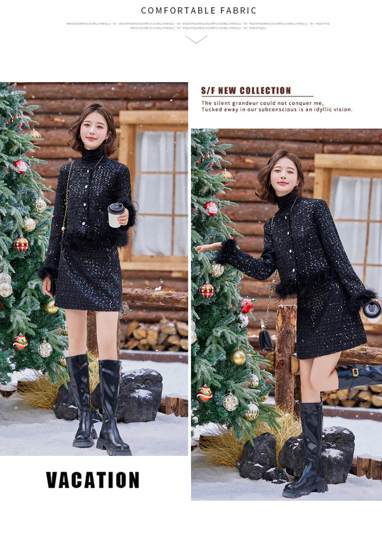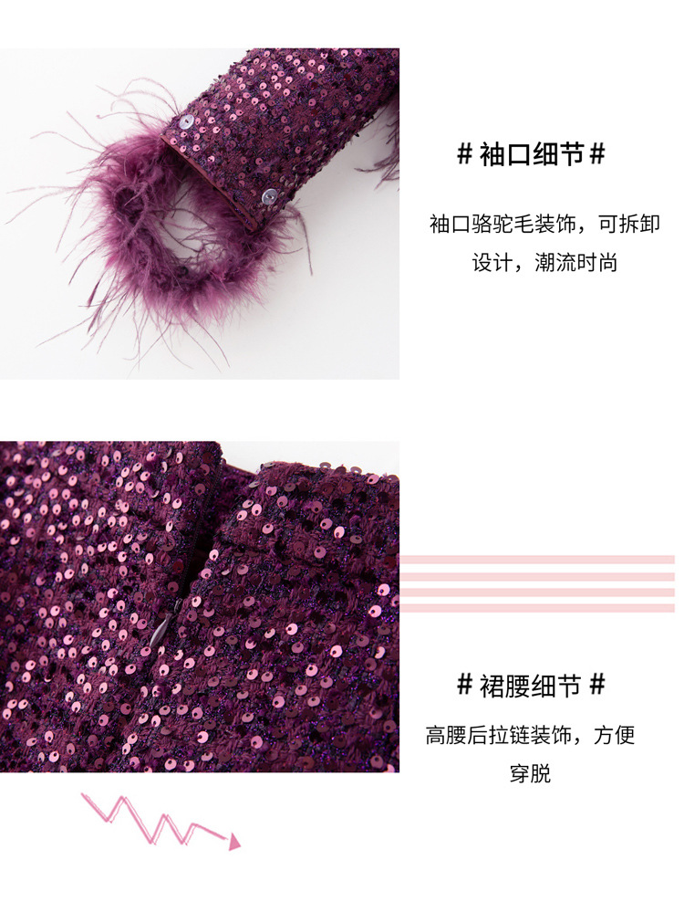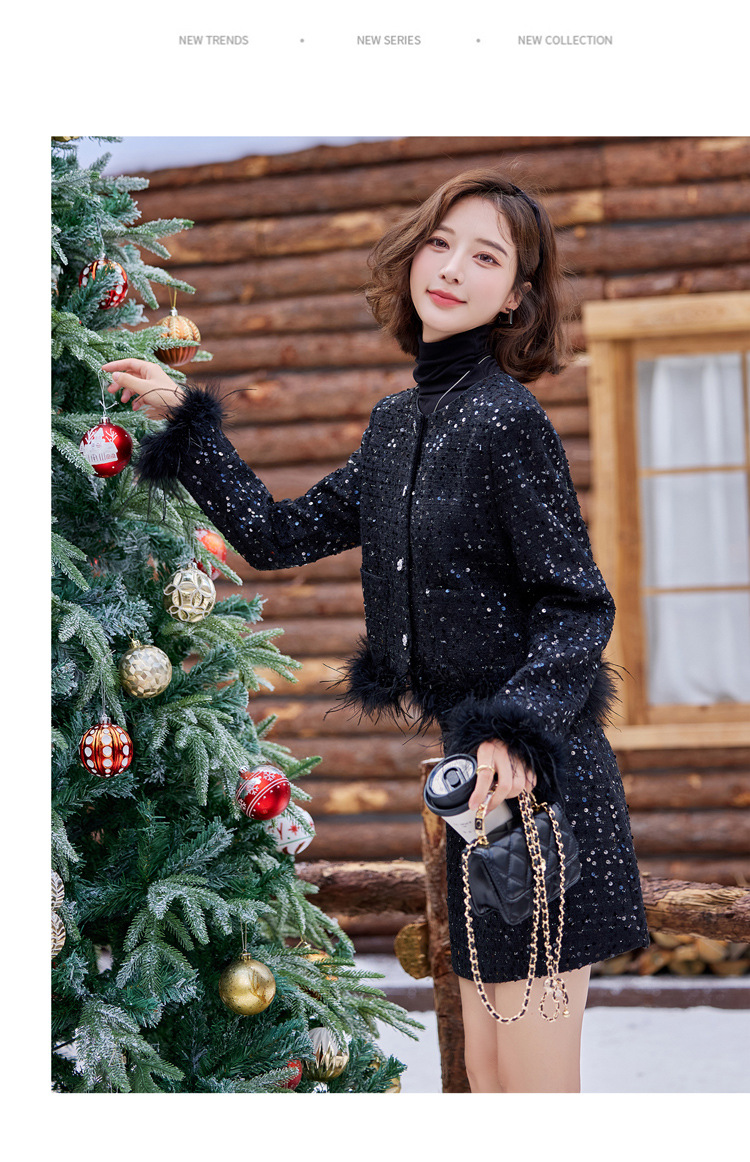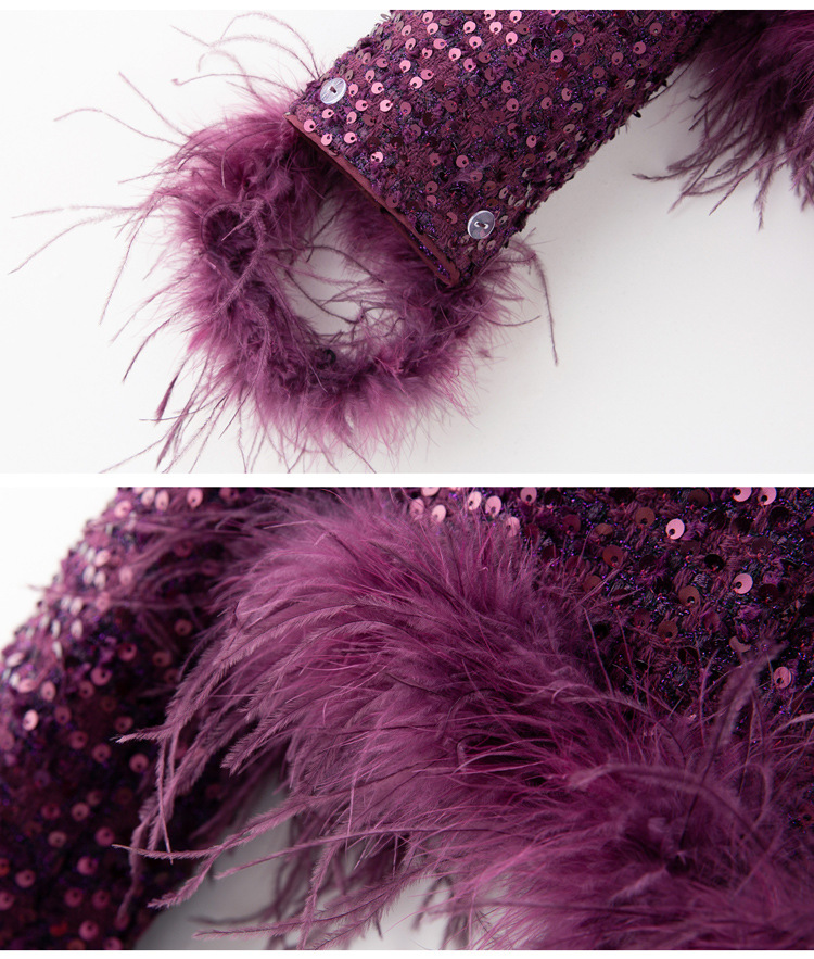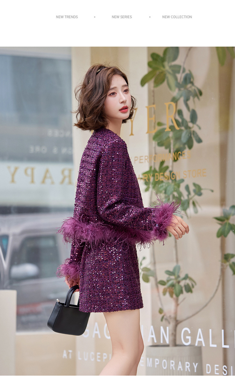 HR-YJLY1329财阀千金系列2025新款早春miu系重工亮片两件套鸵鸟毛套装