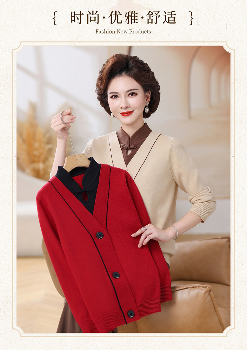 5528A洋气妈妈装春秋冬毛衣中年妇女时尚休闲上衣中老年宽松针织打底衫