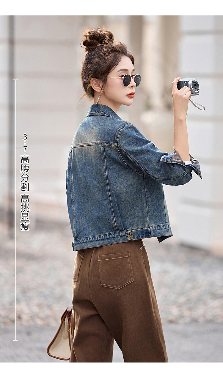 XGJ5815短款牛仔外套女2025秋季新款小个子时尚气质复古翻领正肩百搭上衣 商品图4