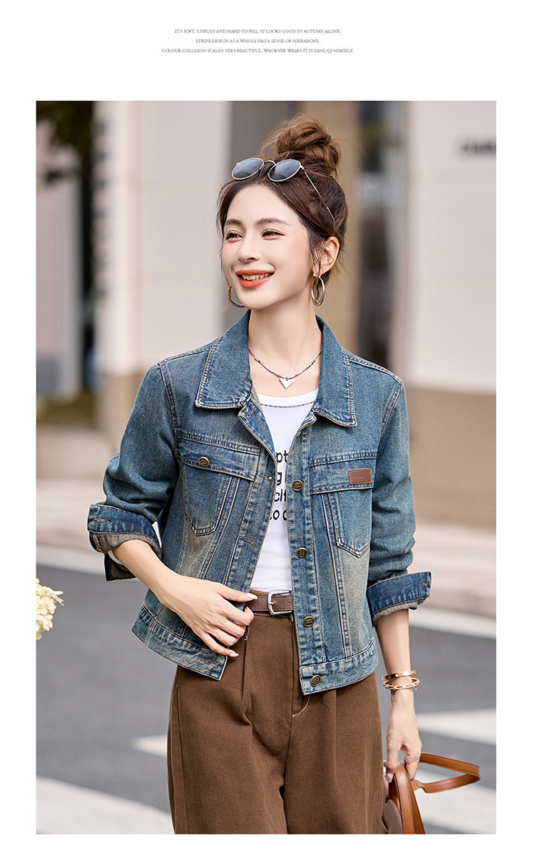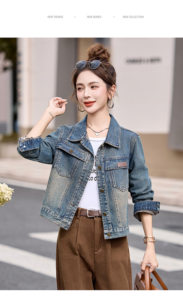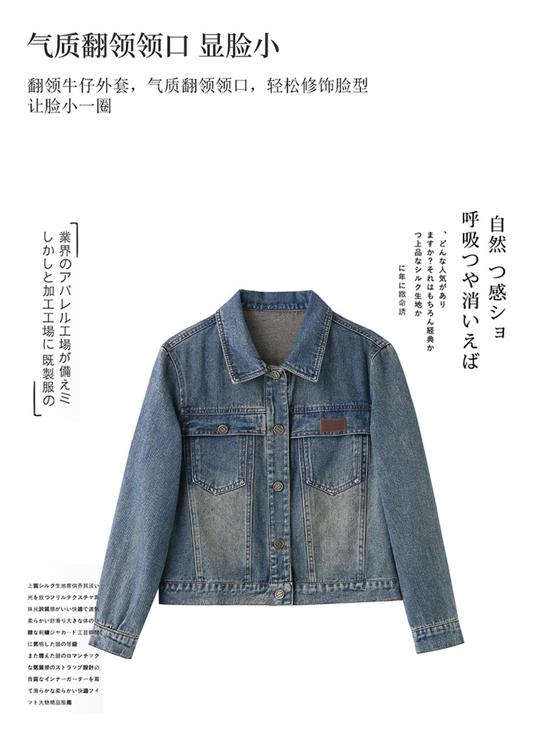 XGJ5815短款牛仔外套女2025秋季新款小个子时尚气质复古翻领正肩百搭上衣 商品图2