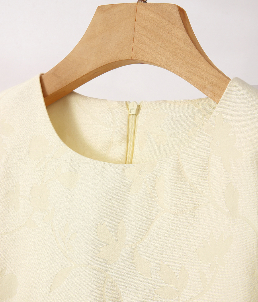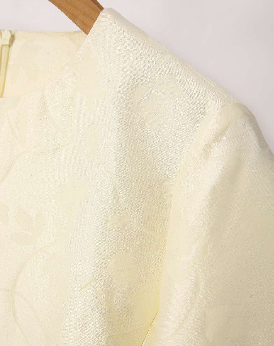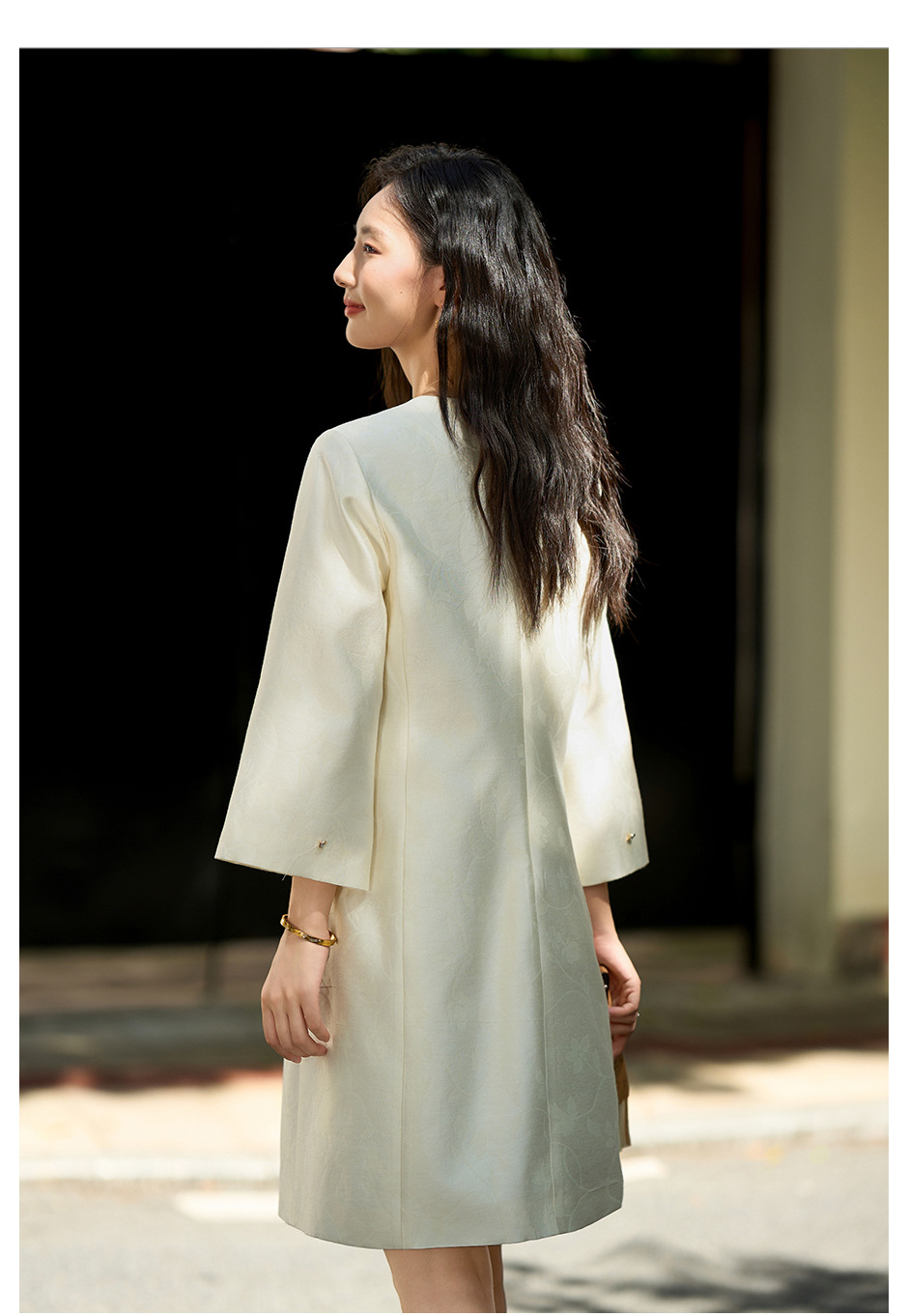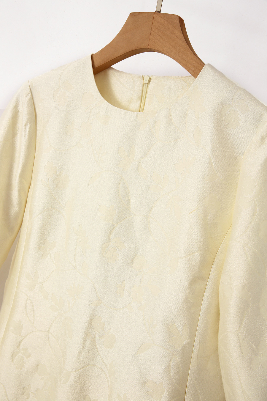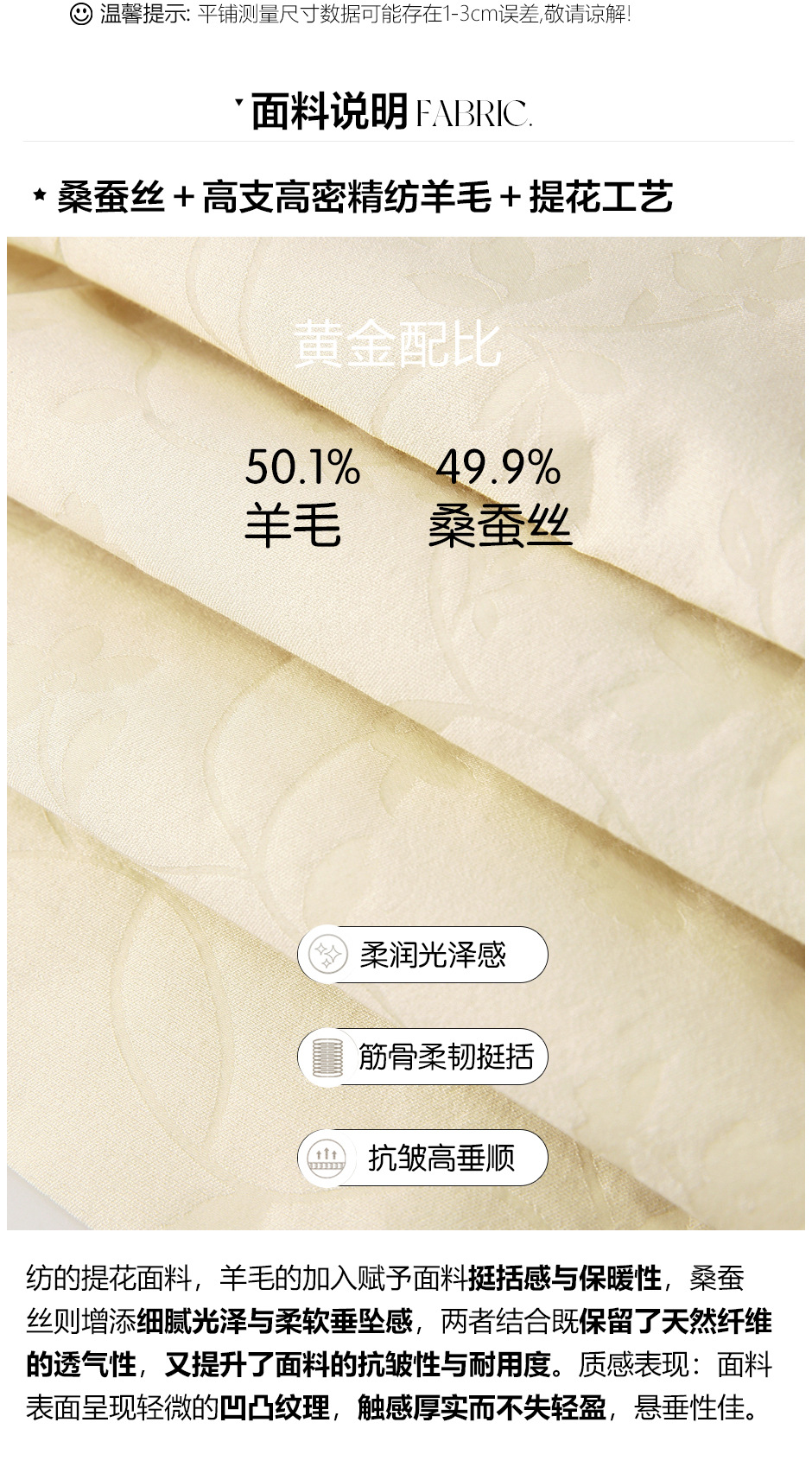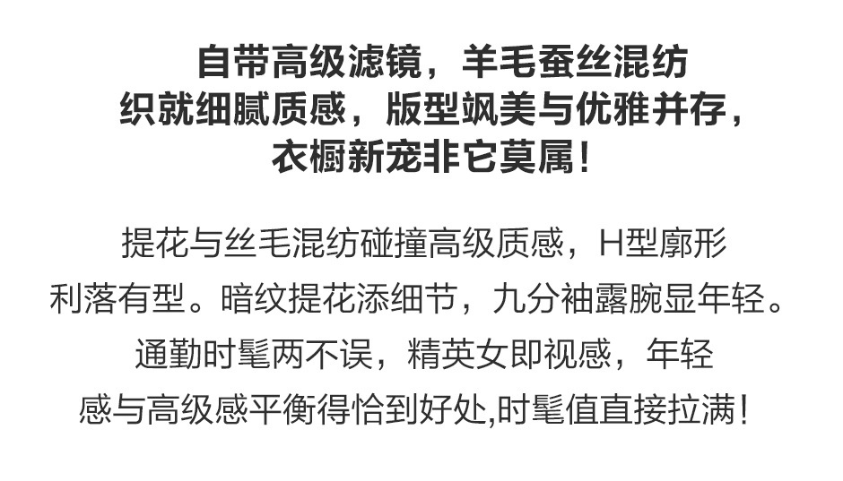 丁摩 秋冬丝毛混暗纹提花连衣裙 圆领九分袖中长款通勤百搭简约5ZF-76005