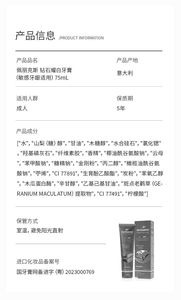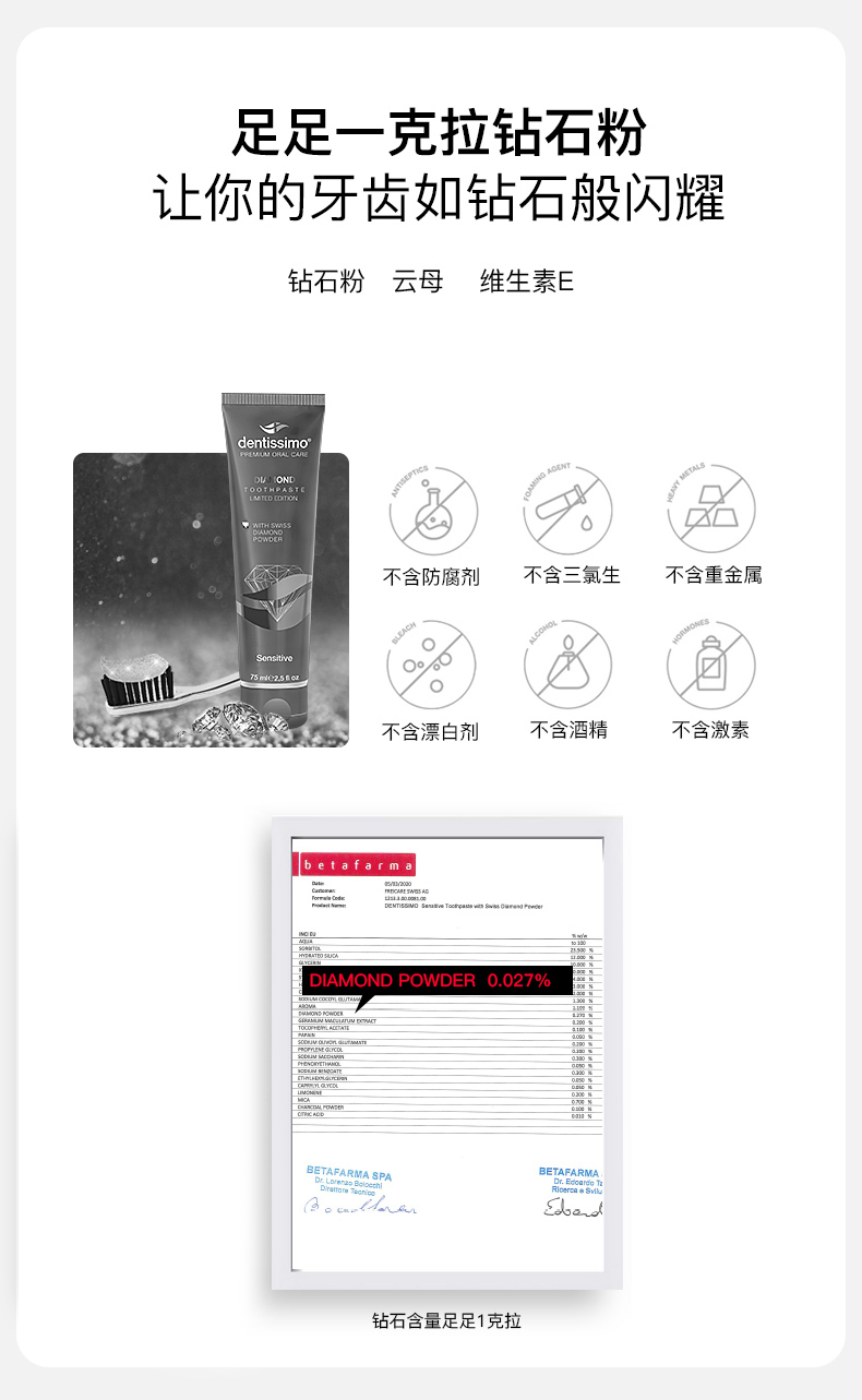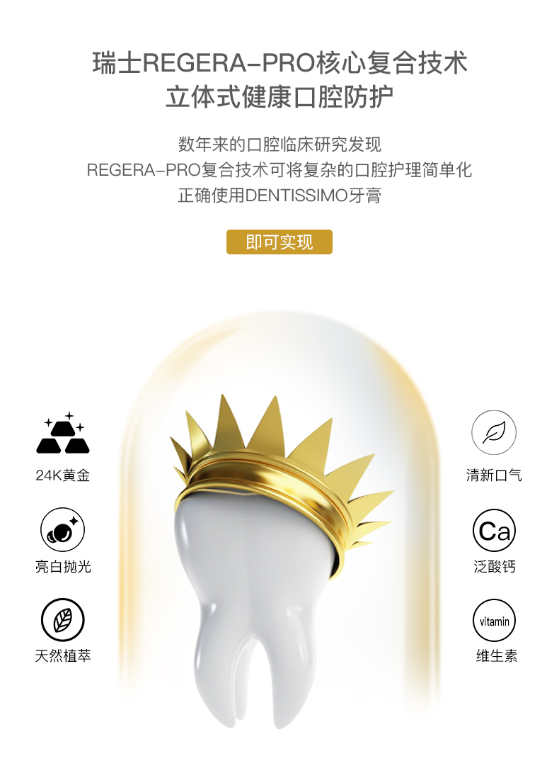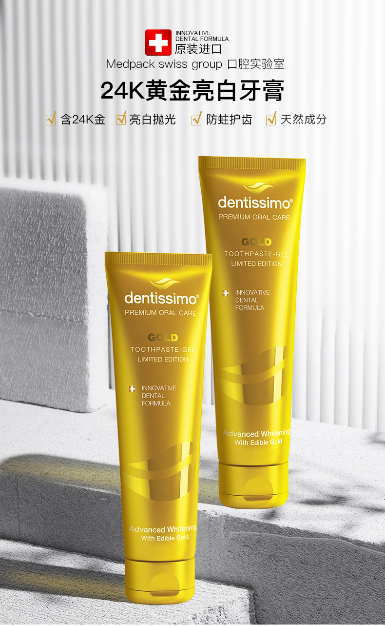 钻石耀白牙膏75ml/24K胶体金装亮白牙膏75ml dentissimo 2款可选