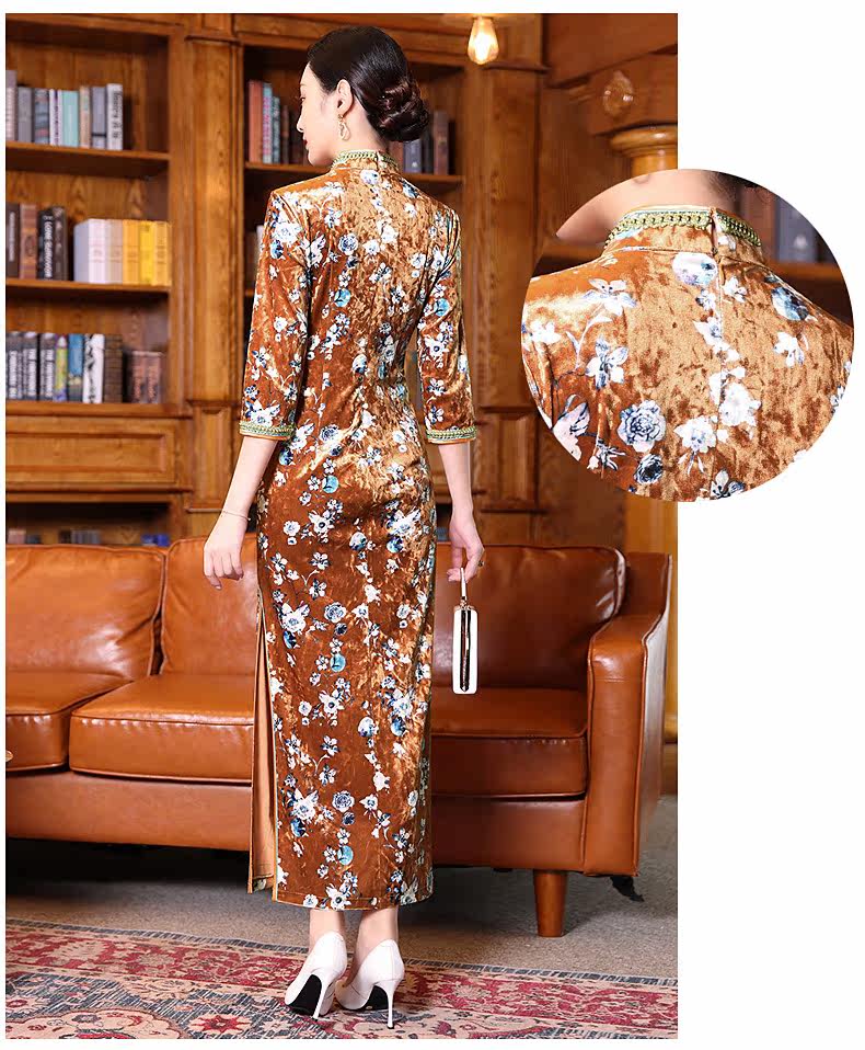 多丽琦2020年新款丝绒印花中国风复古改良旗袍秋冬气质显瘦连衣裙