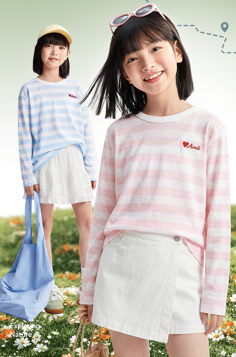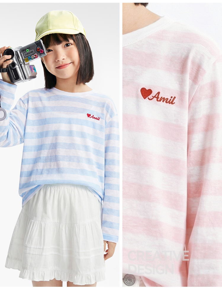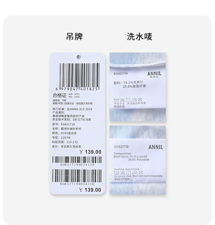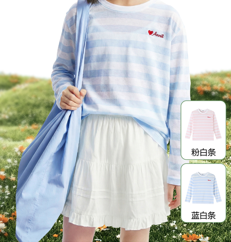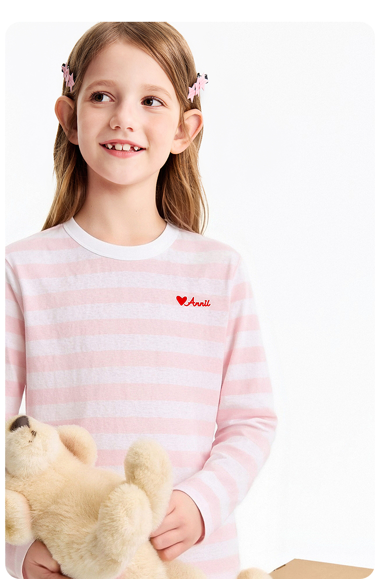 女童圆领长袖针织衫夏季新款安奈儿童装EG621719