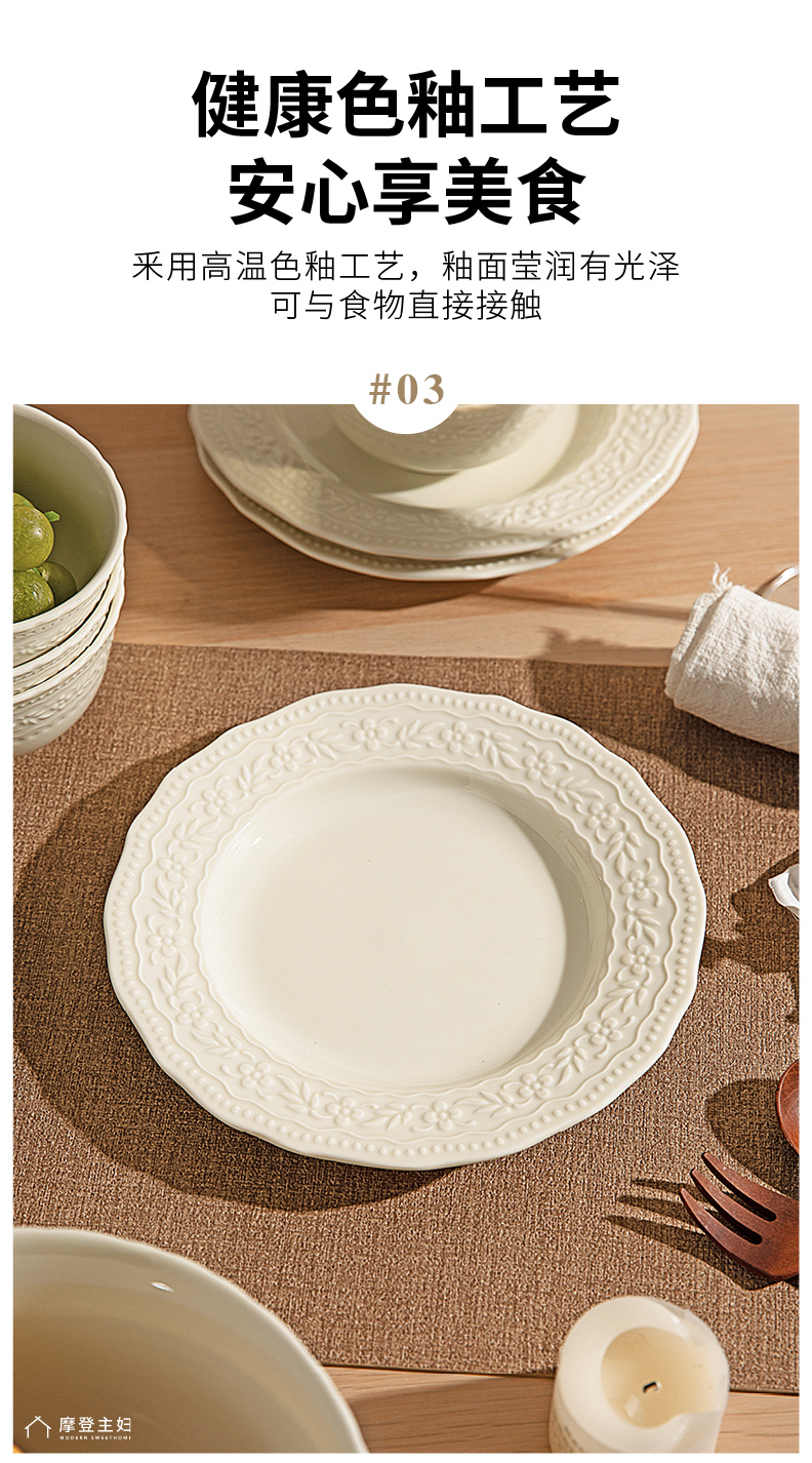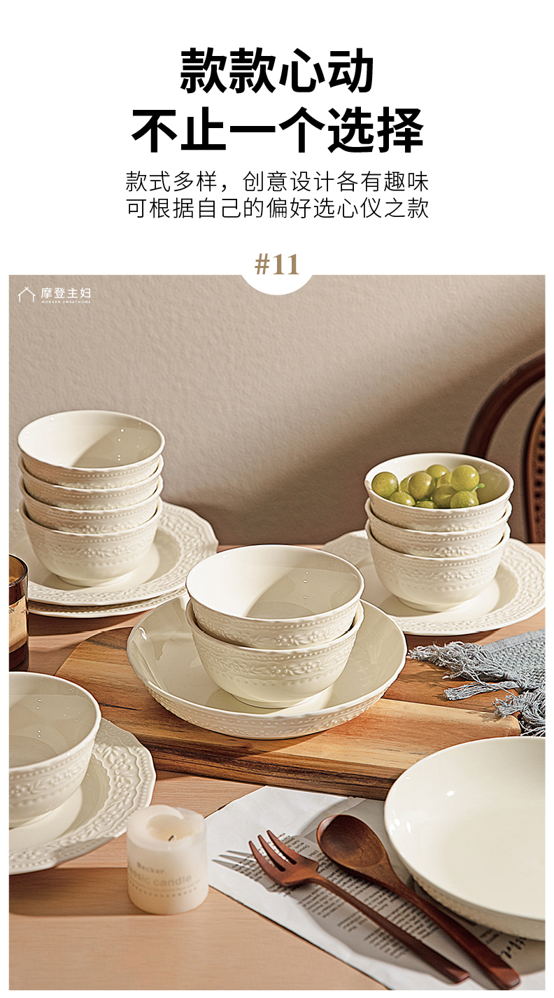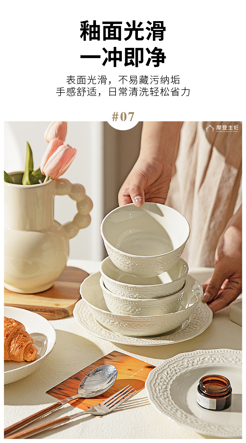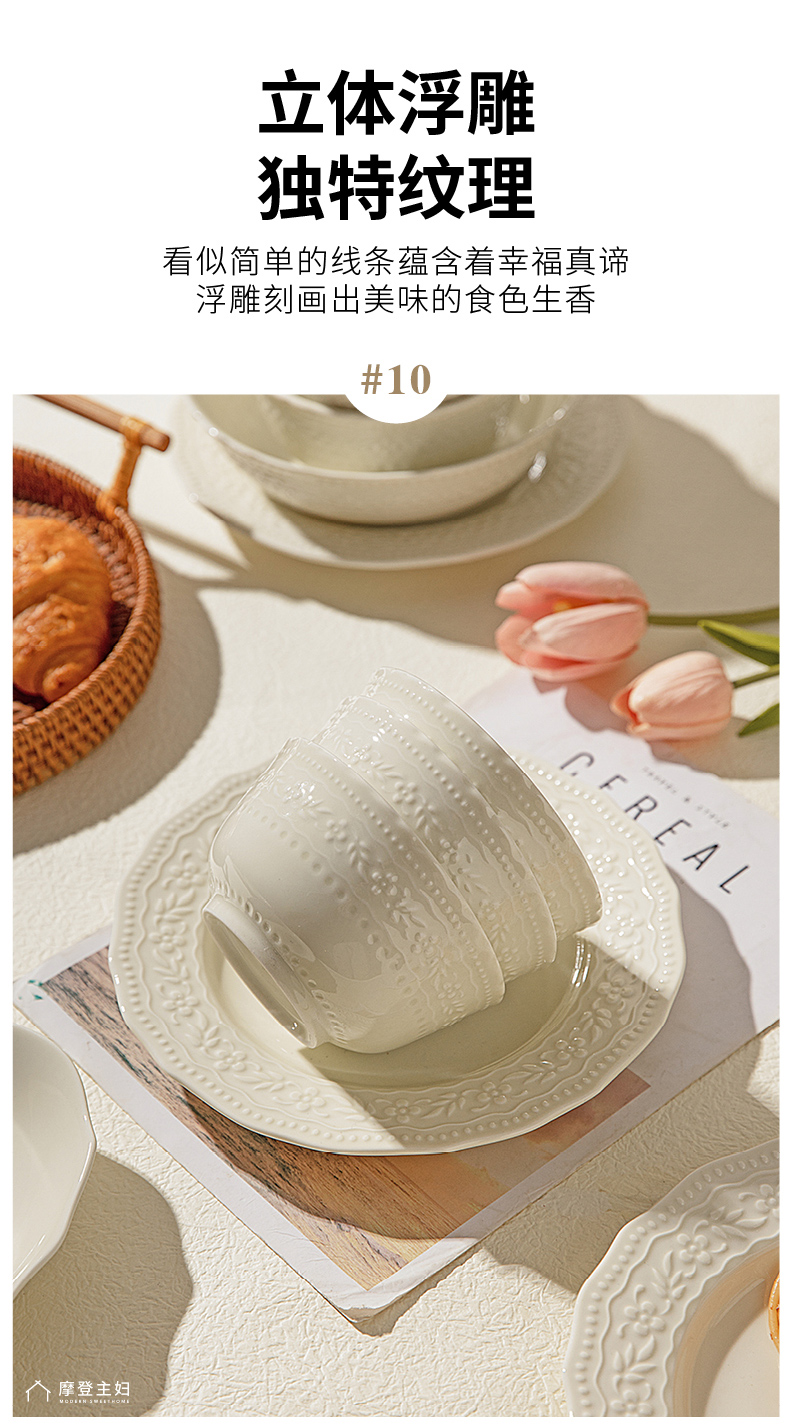 摩登主妇浮雕米饭碗家用碗具法式餐具陶瓷盘子餐盘特别好看的饭碗