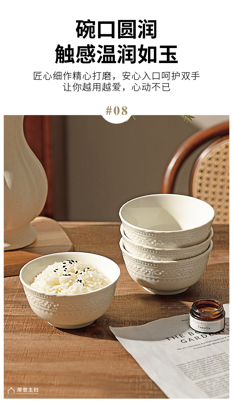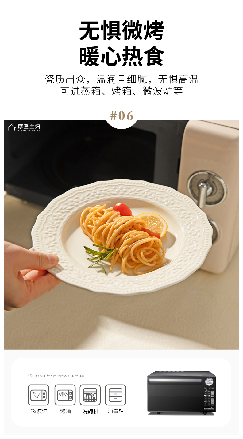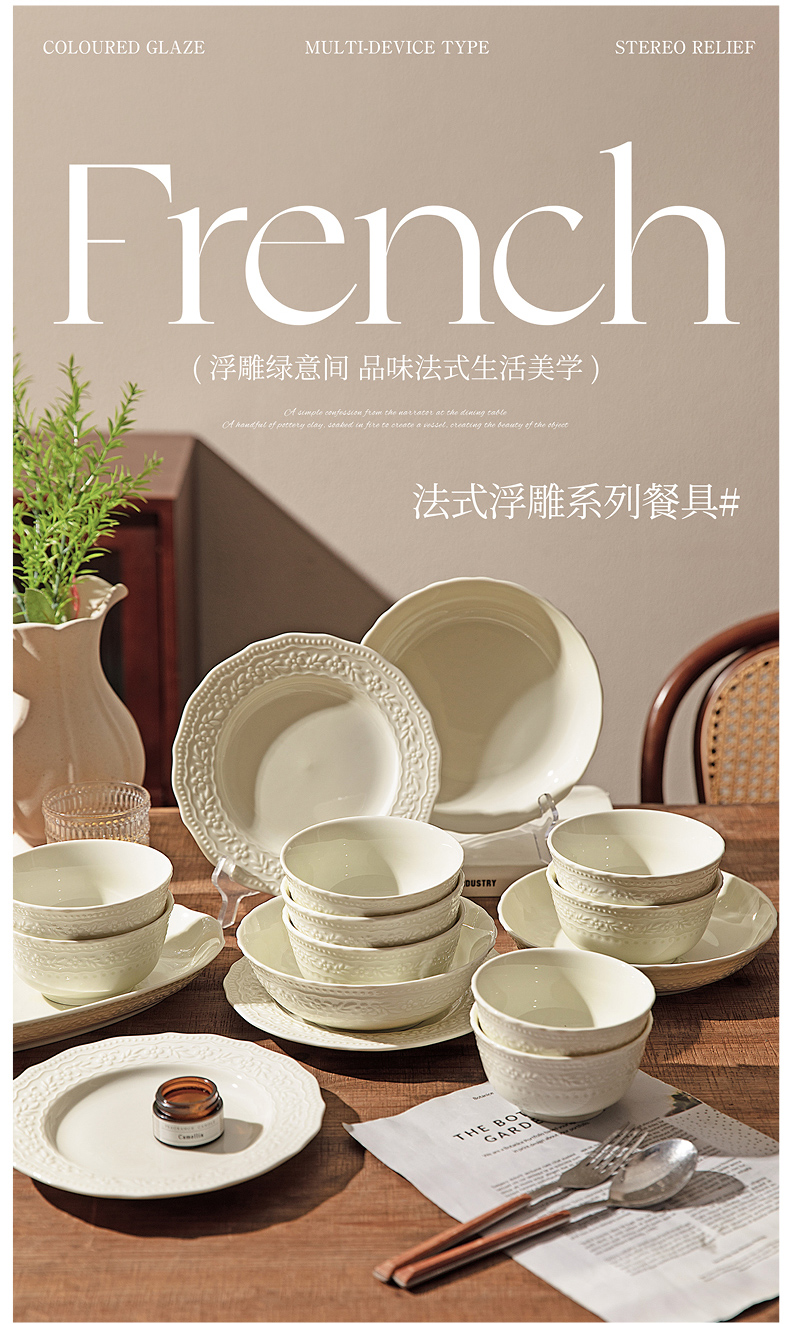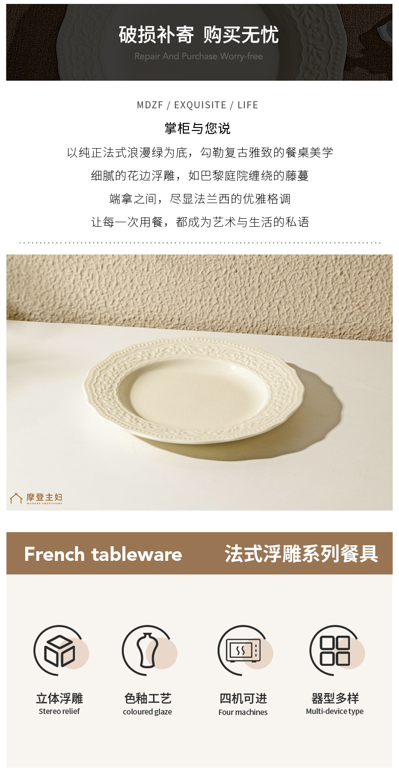摩登主妇浮雕米饭碗家用碗具法式餐具陶瓷盘子餐盘特别好看的饭碗