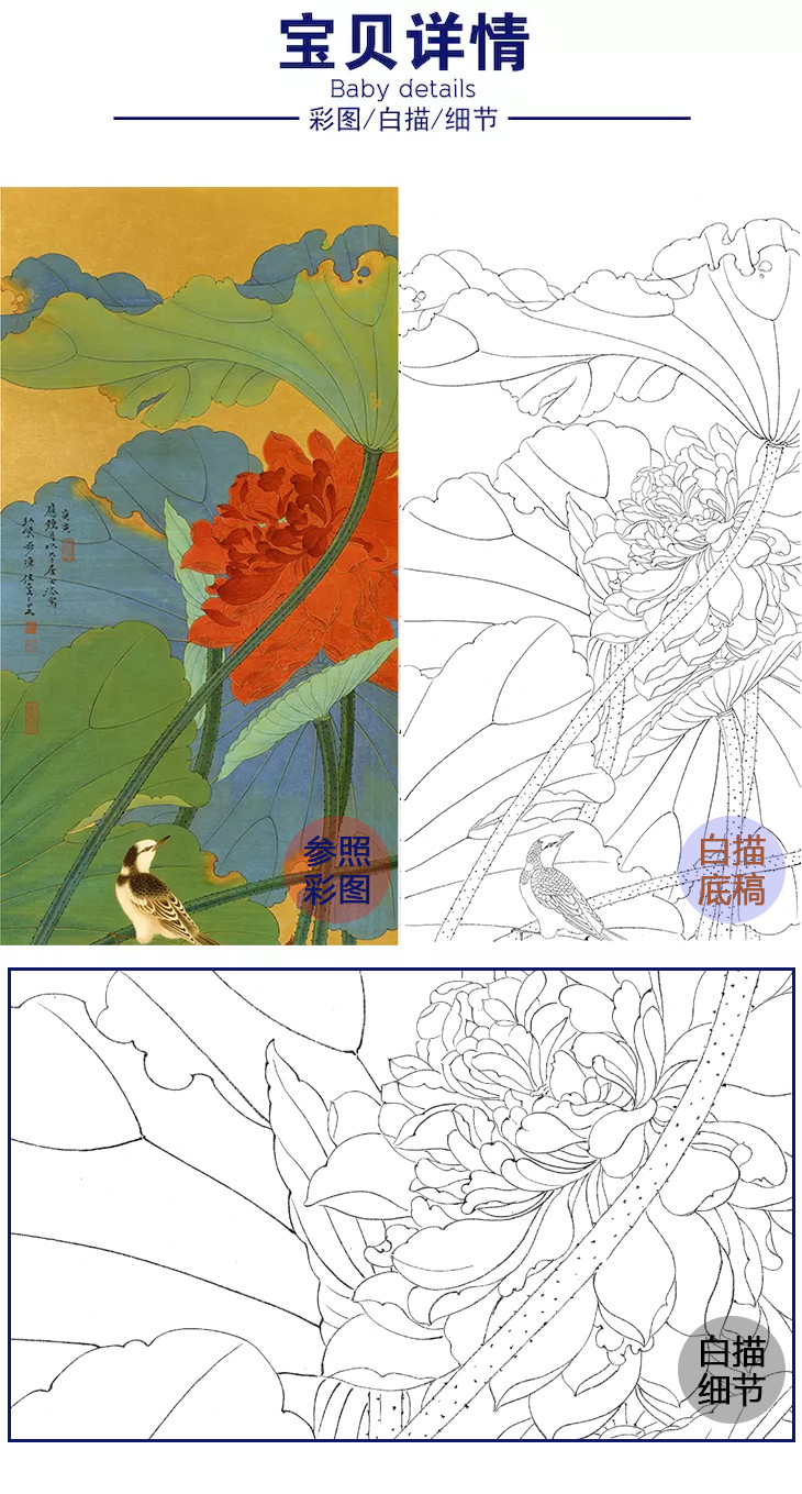 工笔花鸟白描底稿-余稚花鸟-斗方小品册页-YT12