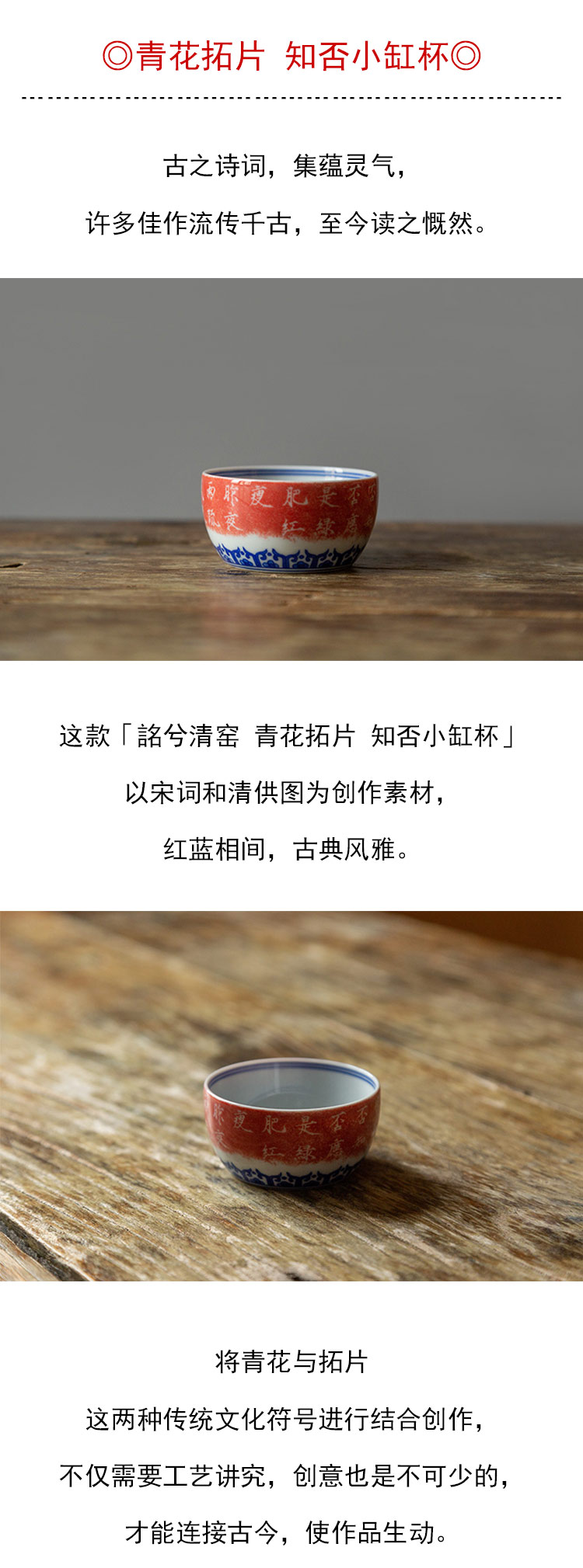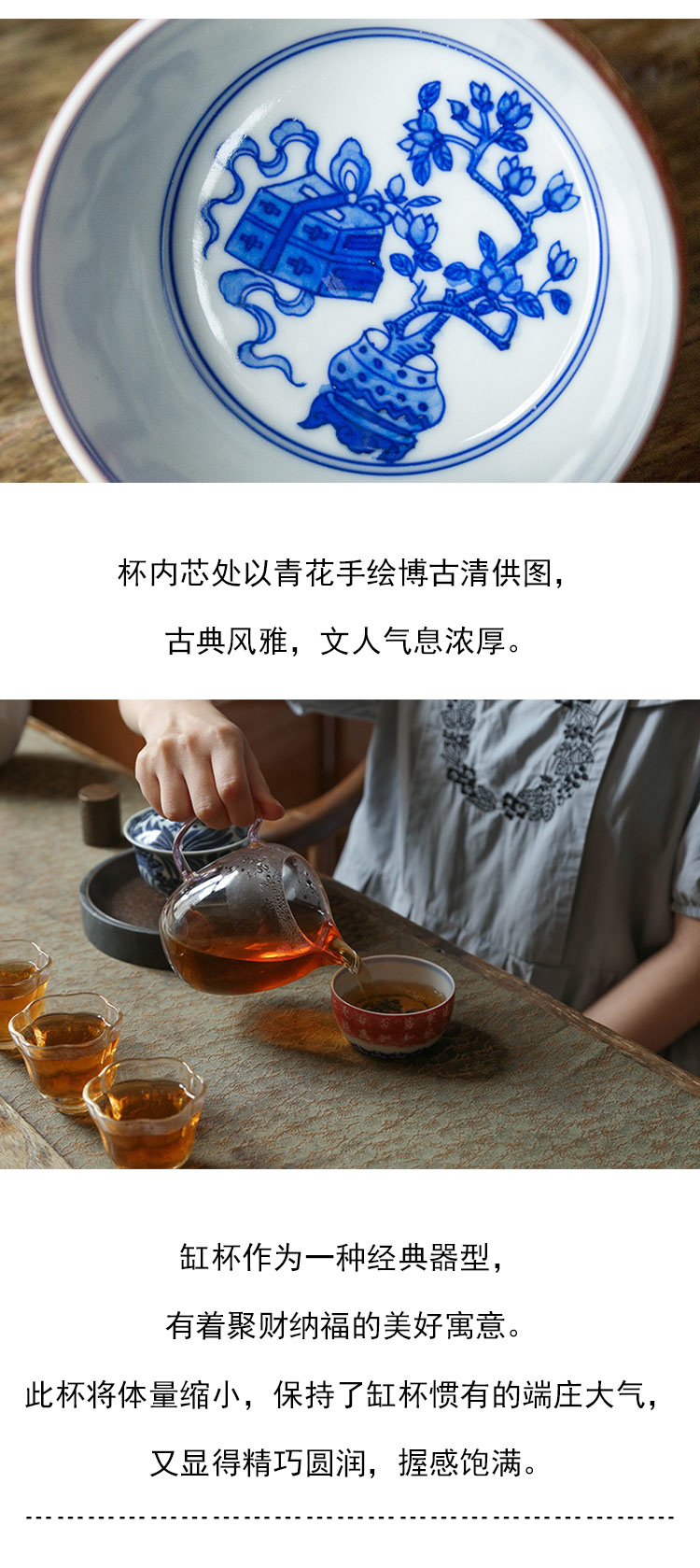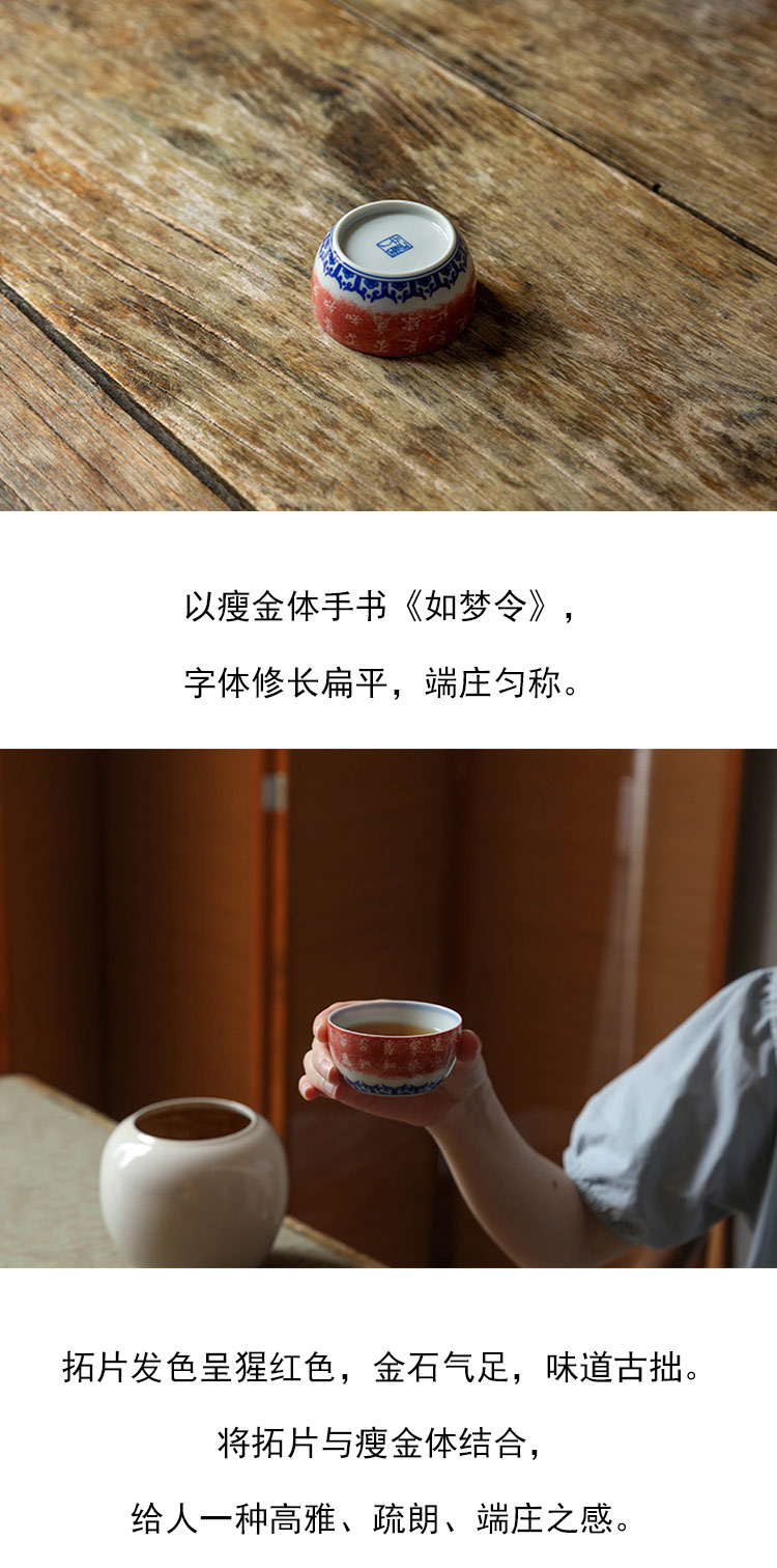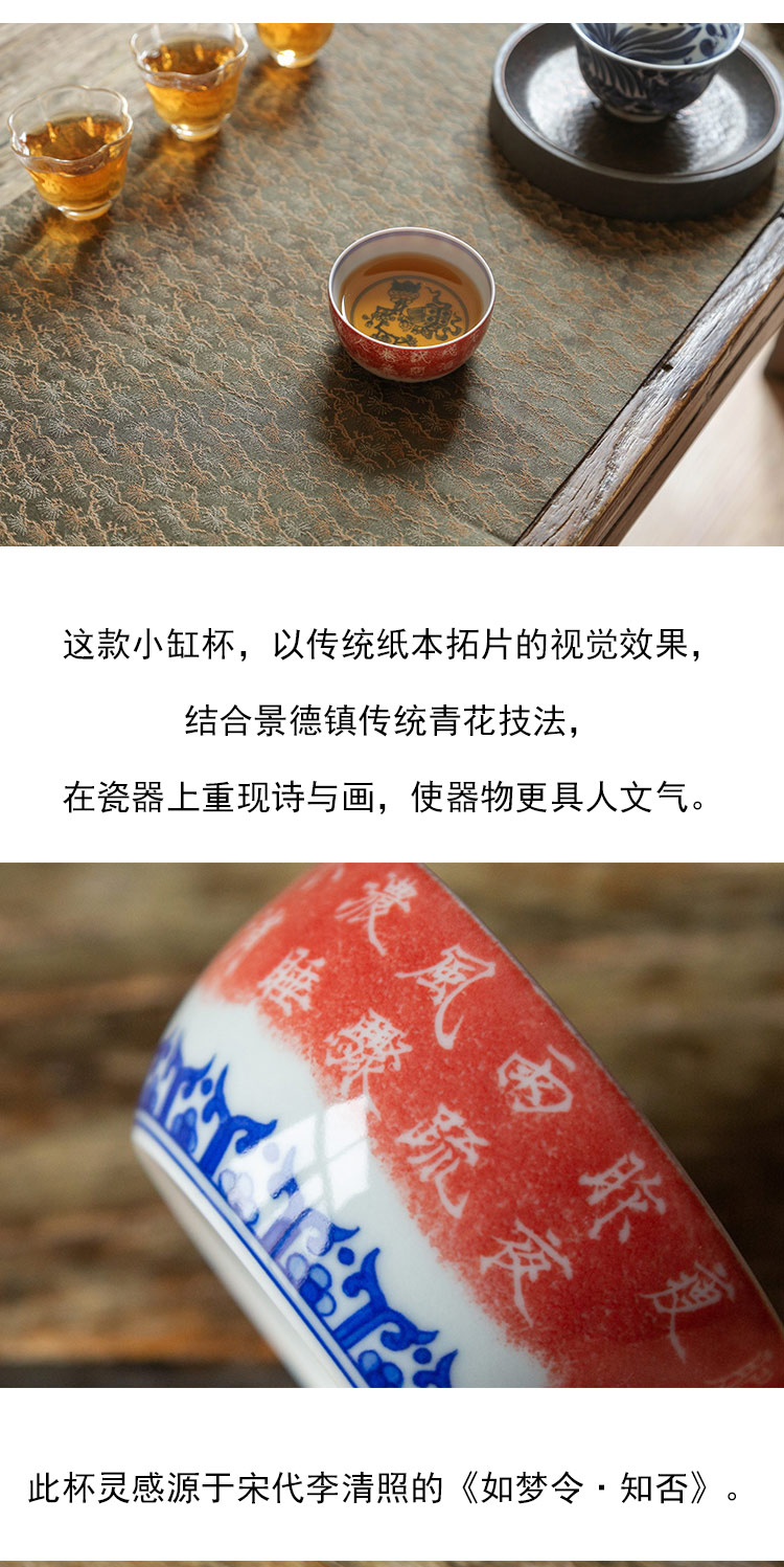 茶香记 景德镇手工 青花拓片 知否小缸杯 古典风雅 主人杯 茶杯