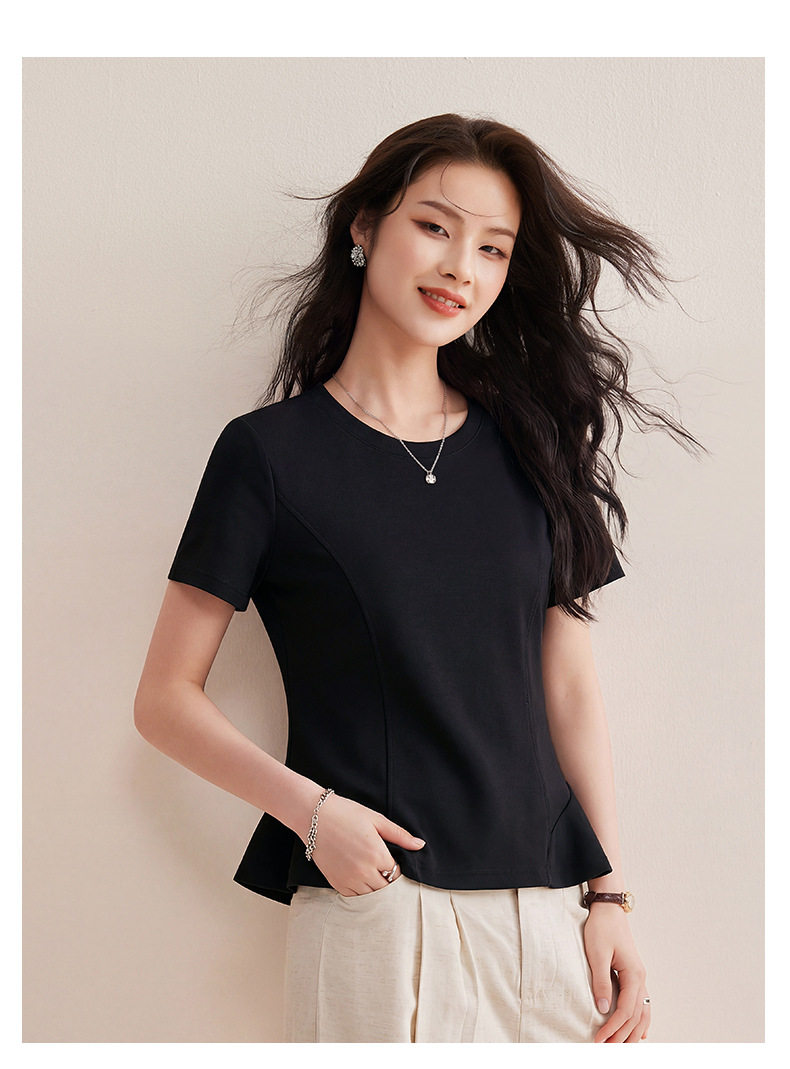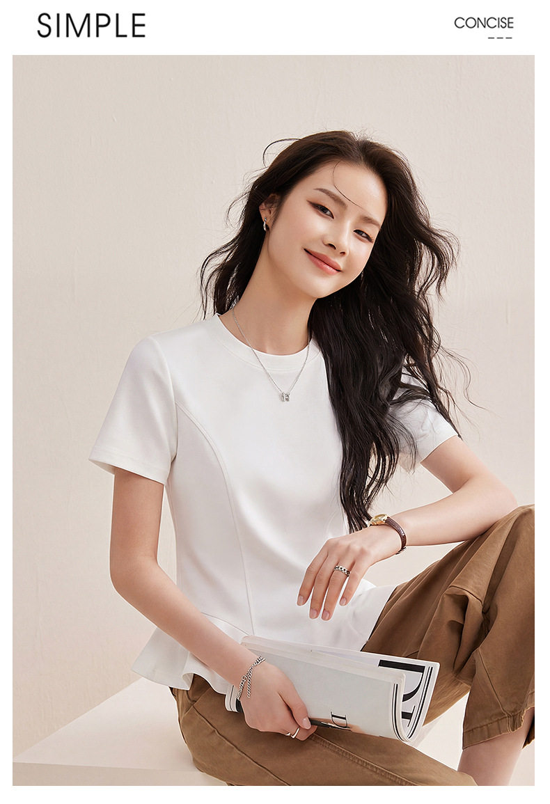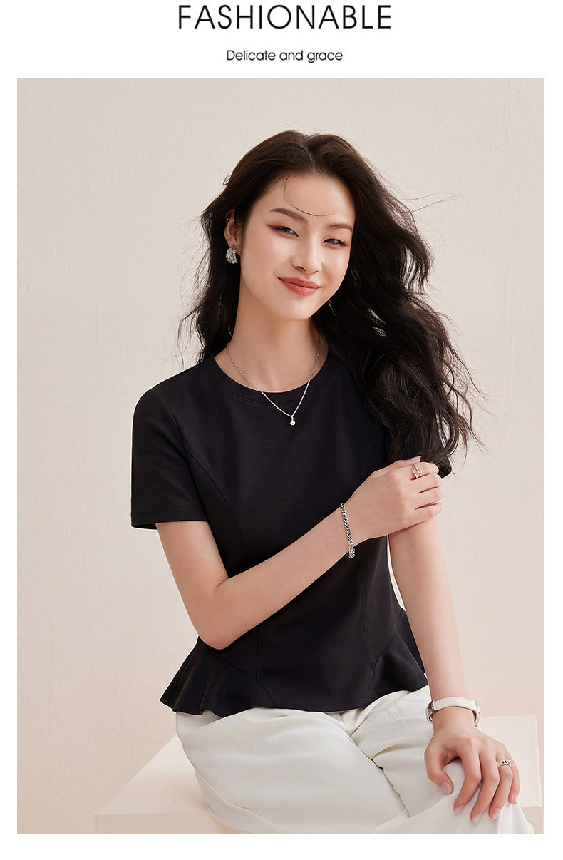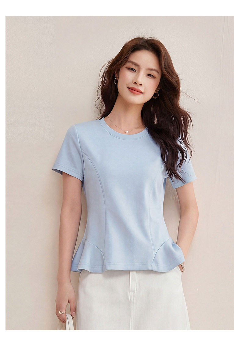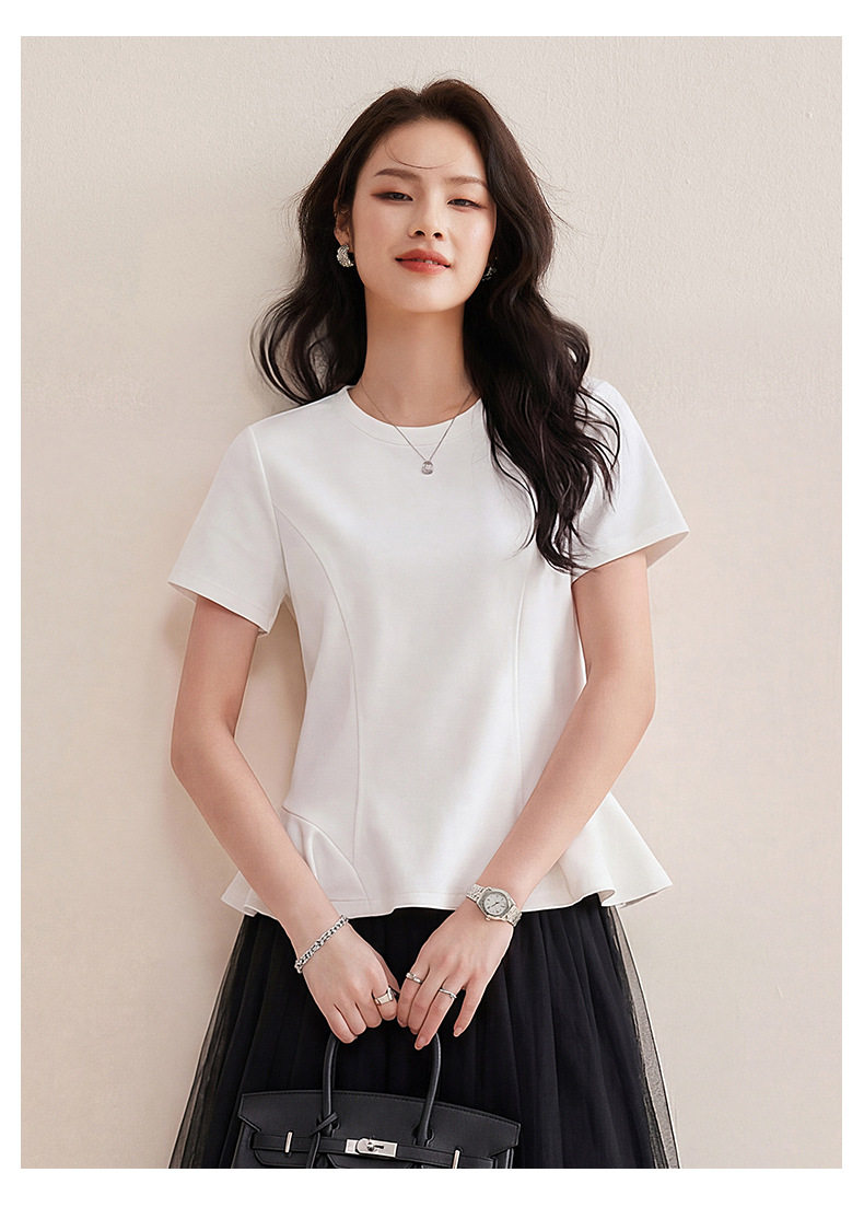 「自j」全新升级【铂金会员119/天猫159/差价40】(05142)洛诗琳拼接荷叶边云朵短袖上衣2026设计感薄款正肩显瘦T恤
