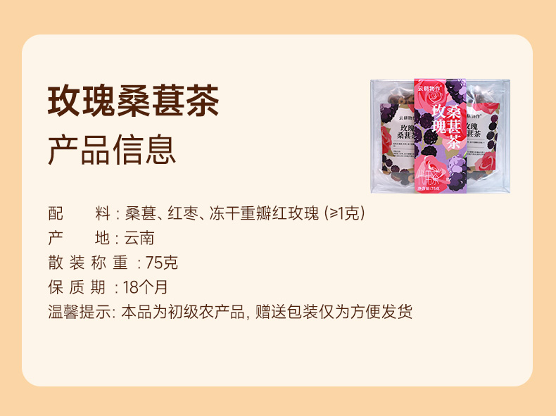 【玫瑰桑葚茶】组合花茶茶包 75g(5袋)/盒办公室养生必备