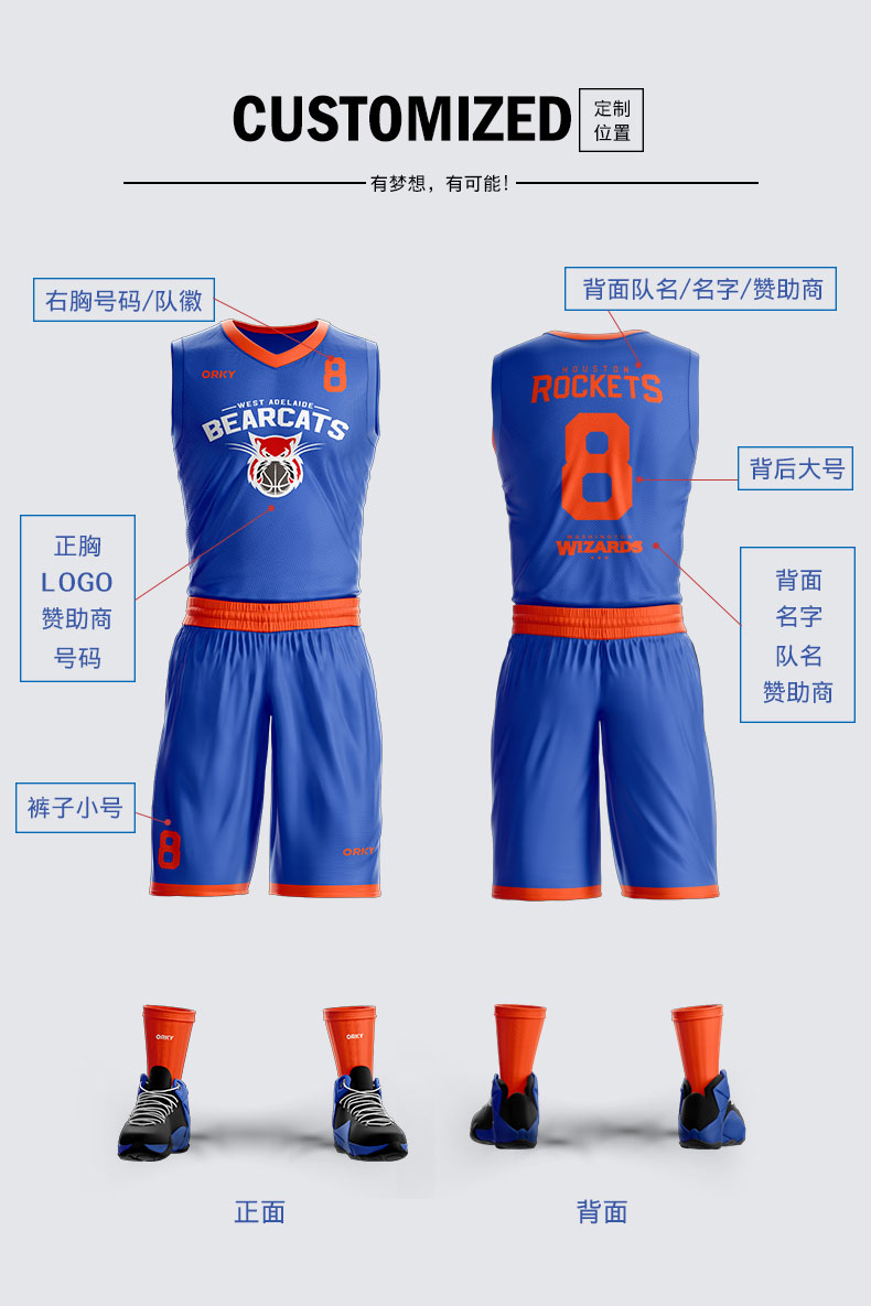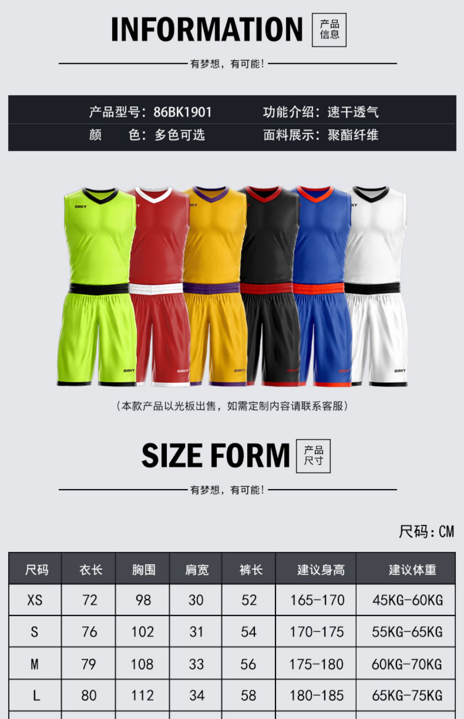 沃恺体育:篮球服套装男定制球衣学生比赛队服透气运动训练服订86BK1901