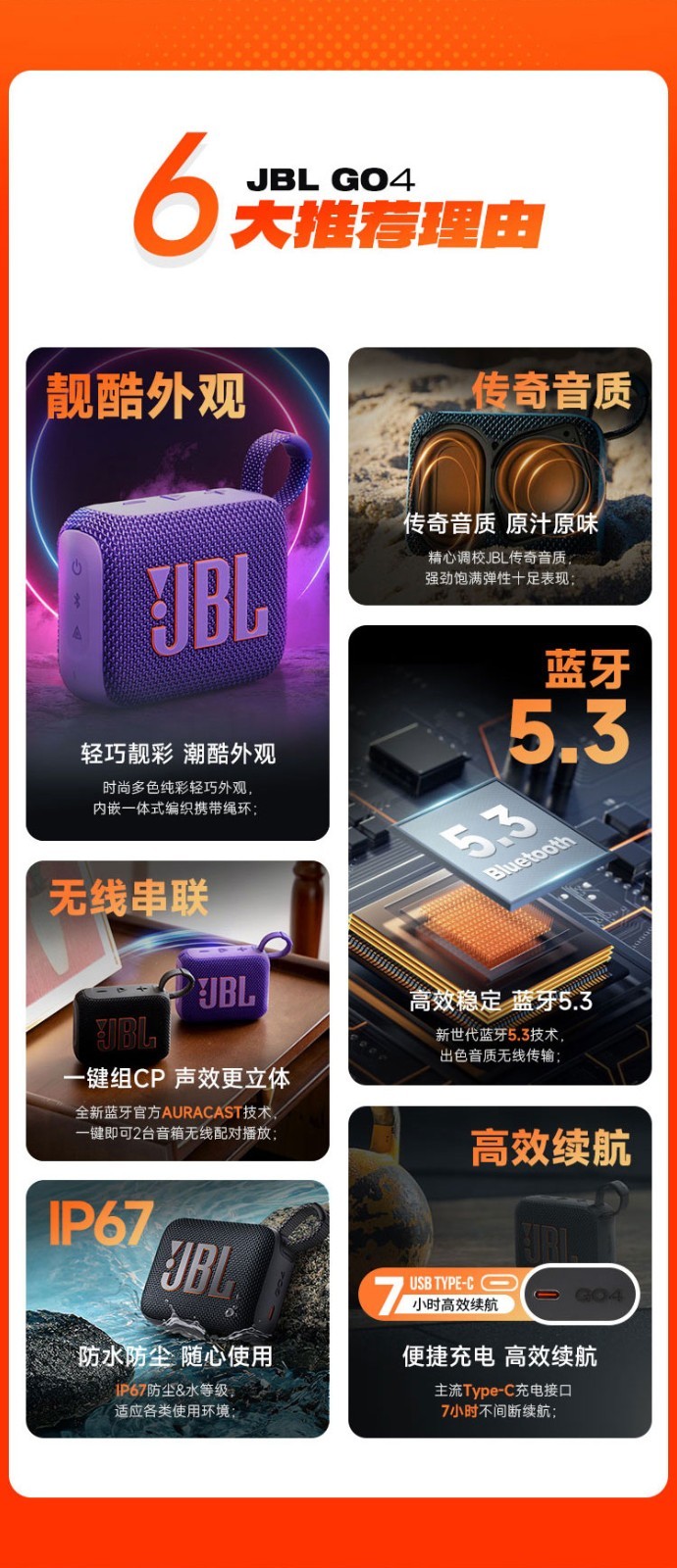 JBL GO4 音乐金砖四代 户外便携蓝牙音箱