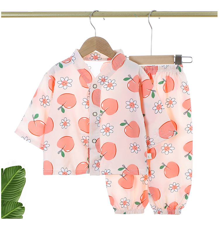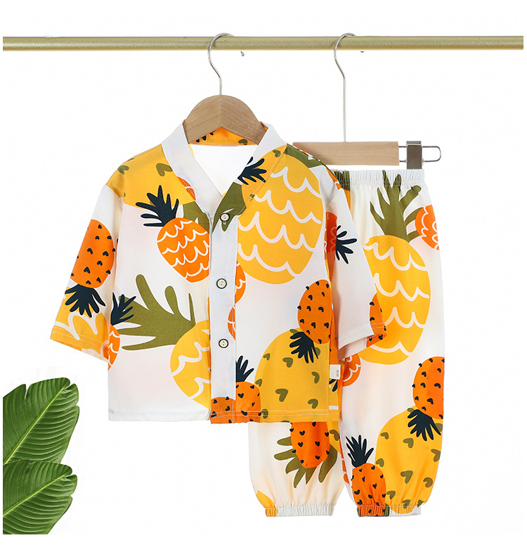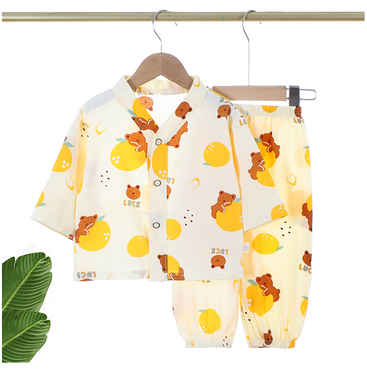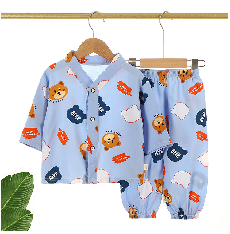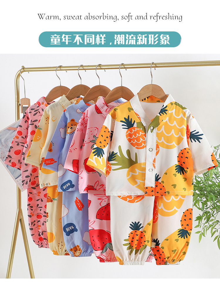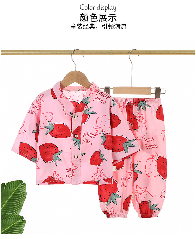 【童装经典,引领潮流~】2024夏天儿童款 睡衣短袖短裤 男童女孩宝宝套装 夏季薄款宽松中小童 空调服睡衣-QQ