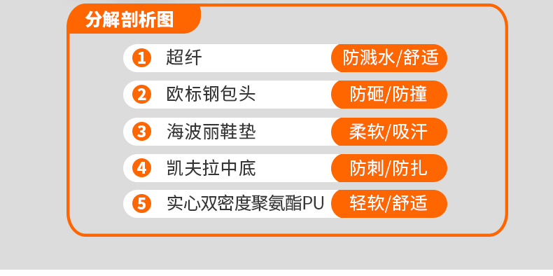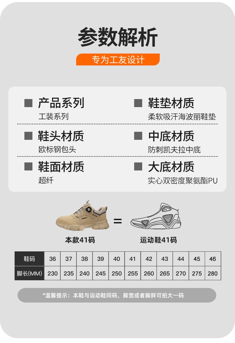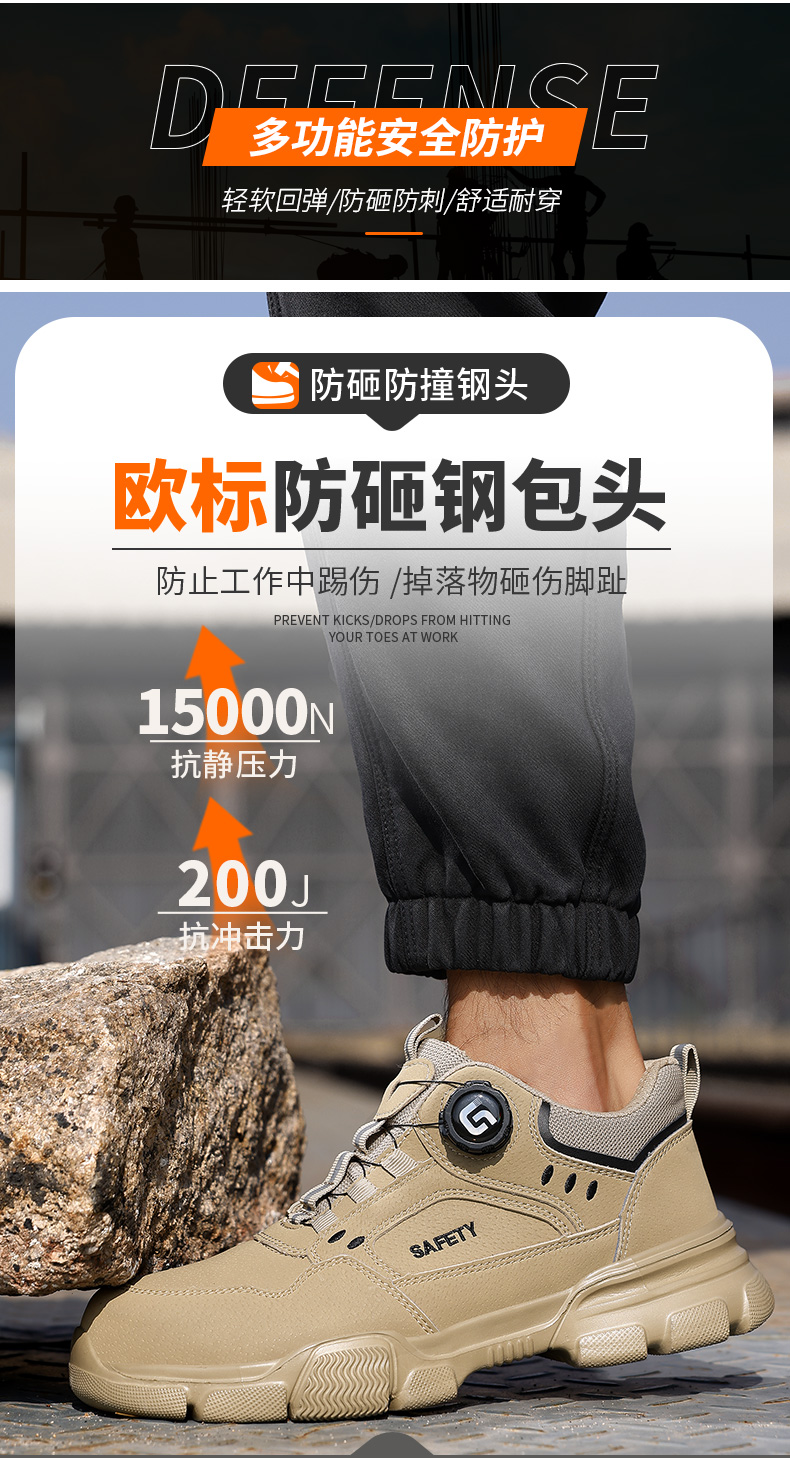 劳保鞋防砸防刺穿工装系列欧标钢包头凯夫拉实心双密度聚氨酯PU大底