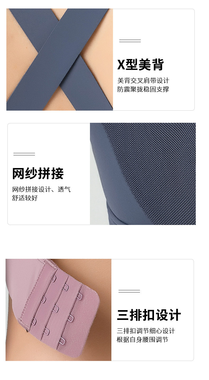 跃牌(呗咪纷纷系列)后搭扣美背防震聚拢运动背心文胸 一体杯WX029