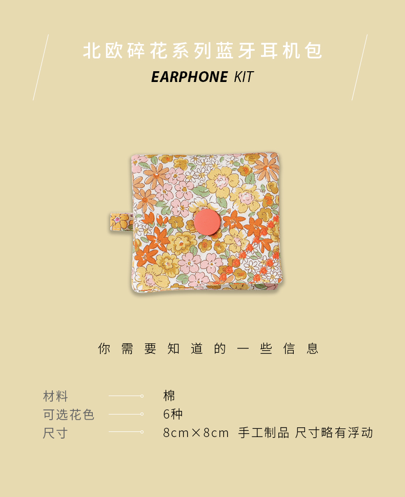 北欧碎花系列蓝牙耳机包数据线收纳包蓝牙耳机包小包布艺拉链迷你U盘U盾保护便携