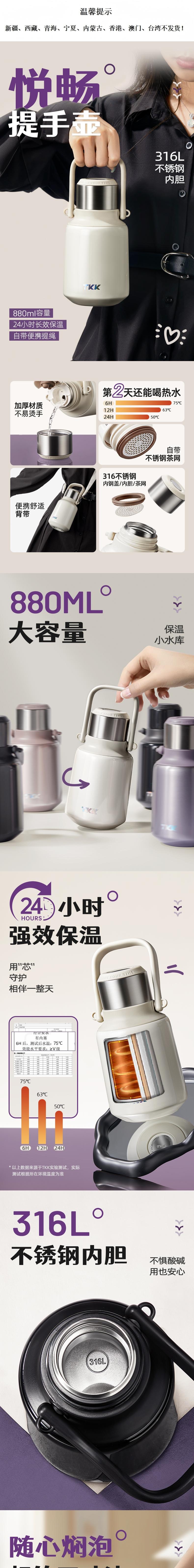 TKK 悦畅提手保温壶 880ml TKK-2040
