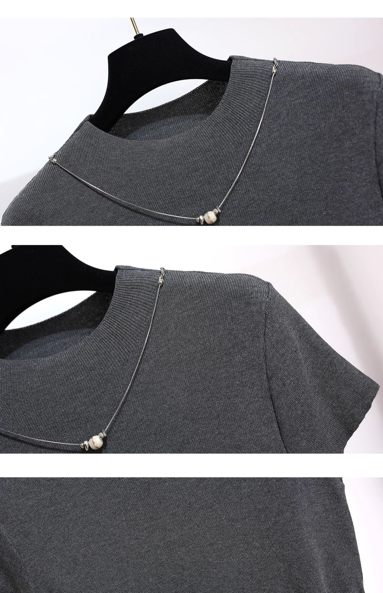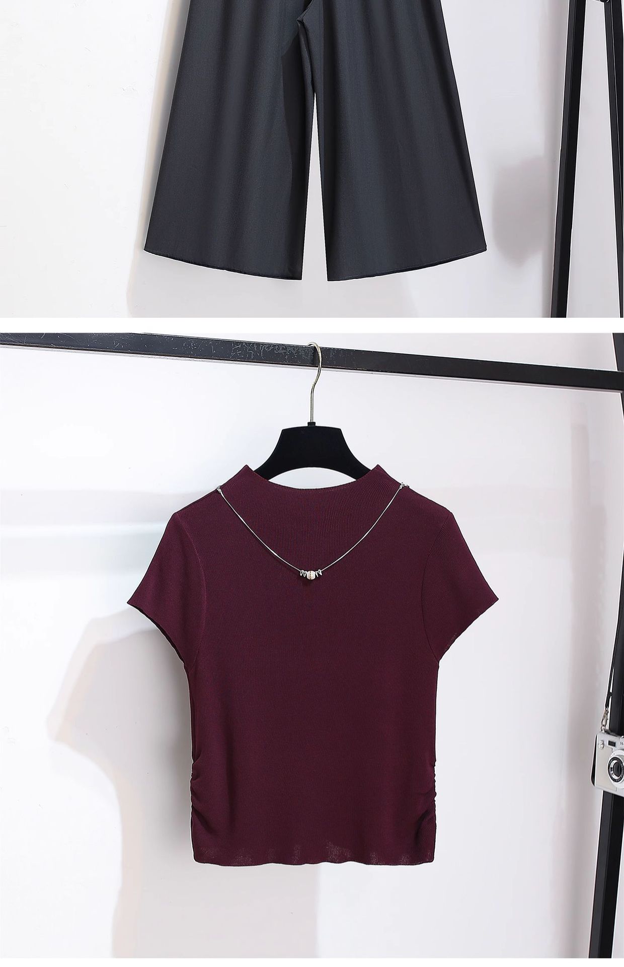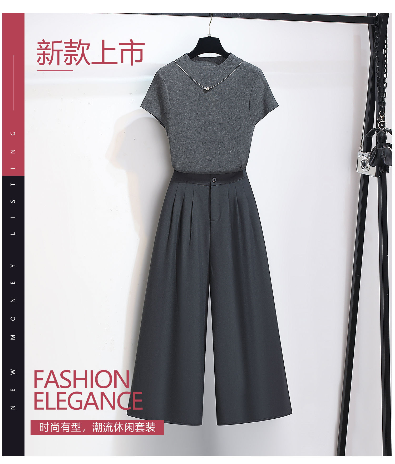 丁摩 巨好看的套装短袖针织T恤西装阔腿裤两件套女夏早春装新款6ZF-A022