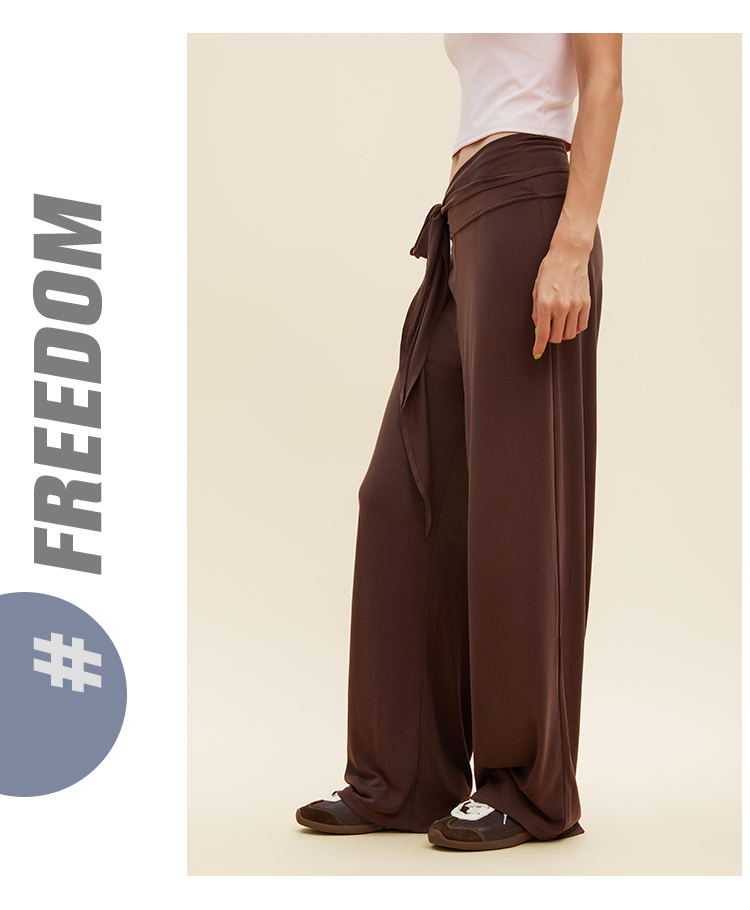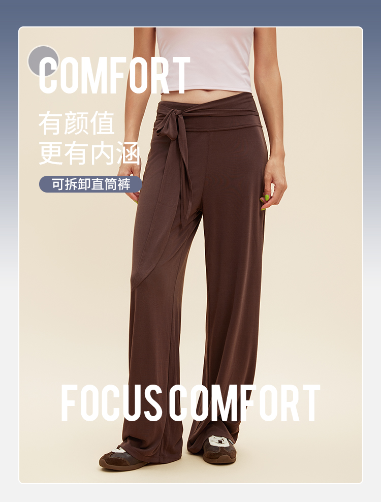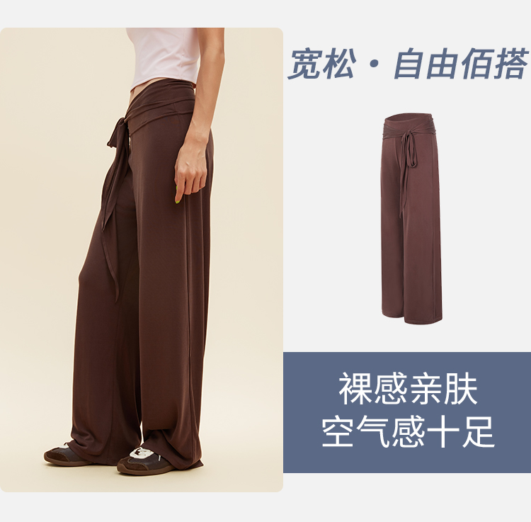 【限时秒】YOGACODE【火树银花系列】慵懒宽松阔腿裤女可拆卸腰带透气垂感遮肉显瘦直筒长裤DWL125601