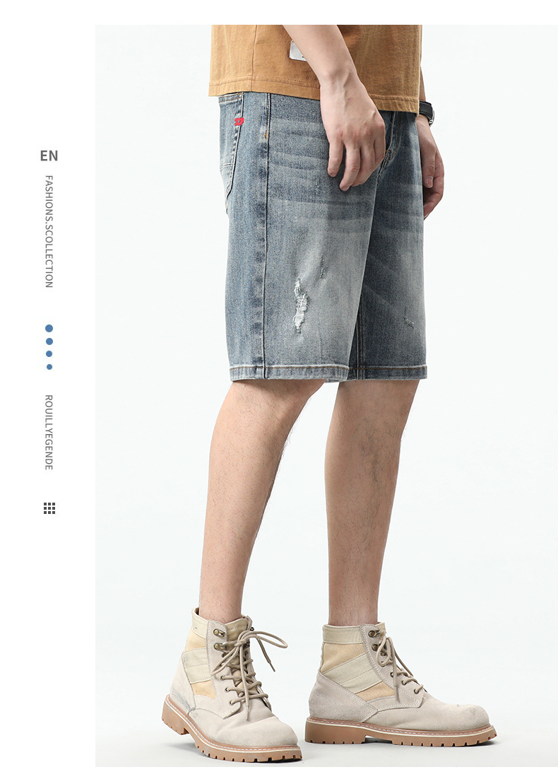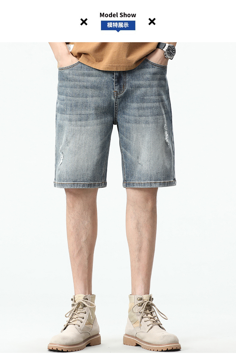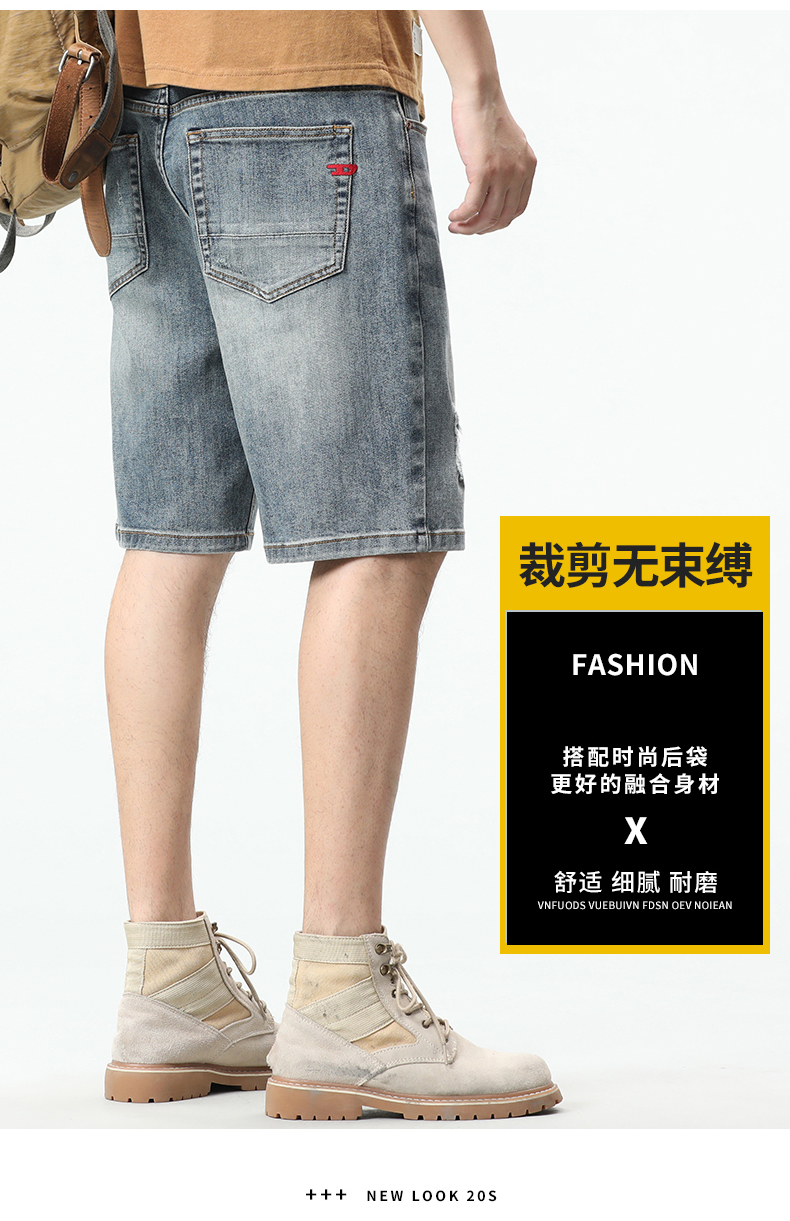 一口价【新款DQ】大依优型大码松紧腰复古牛仔五分裤加肥加长短裤弹力宽松显瘦肥佬休闲男士夏简约