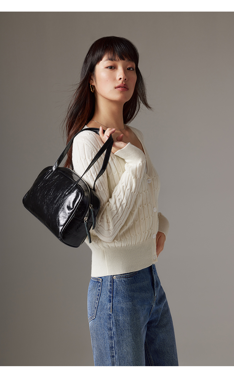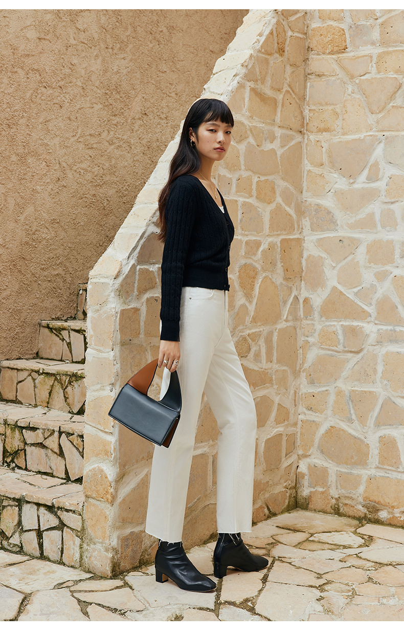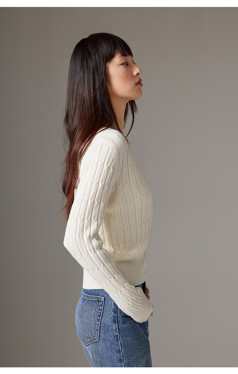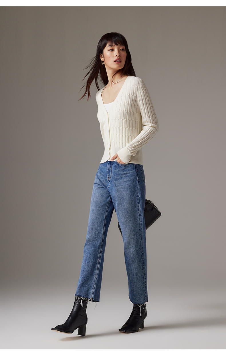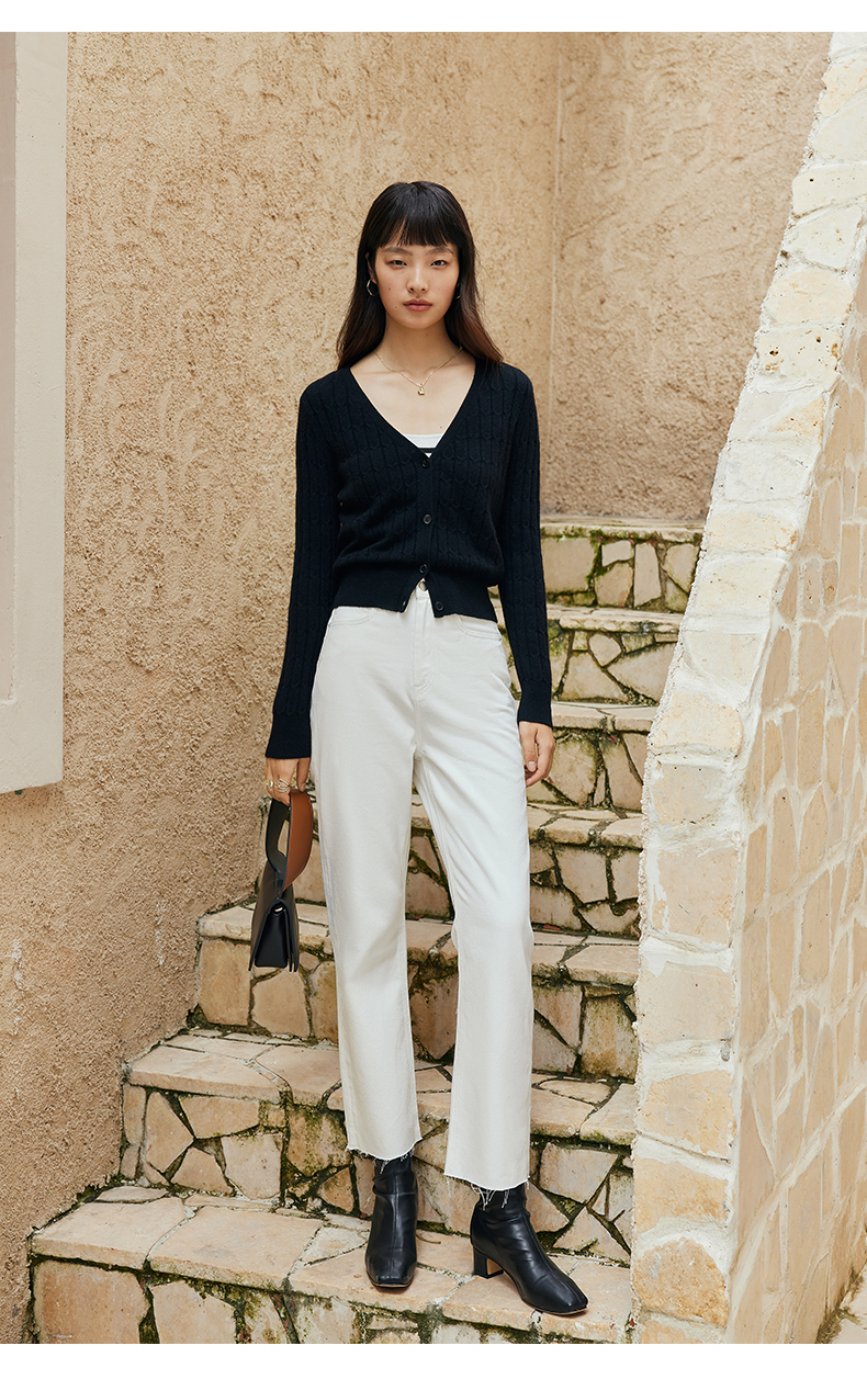 IN AND ON云柔感羊毛羊绒 复古绞花V领针织开衫53639