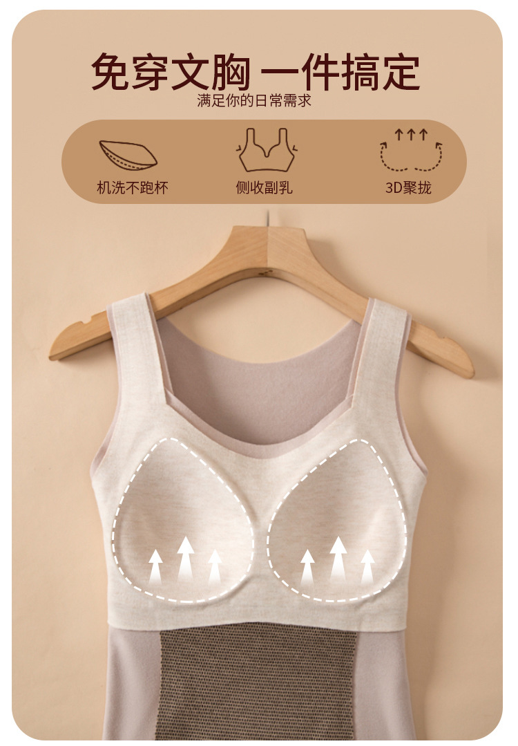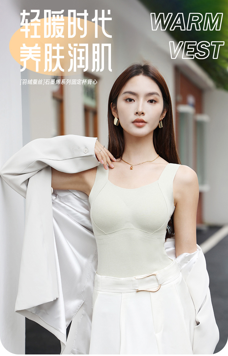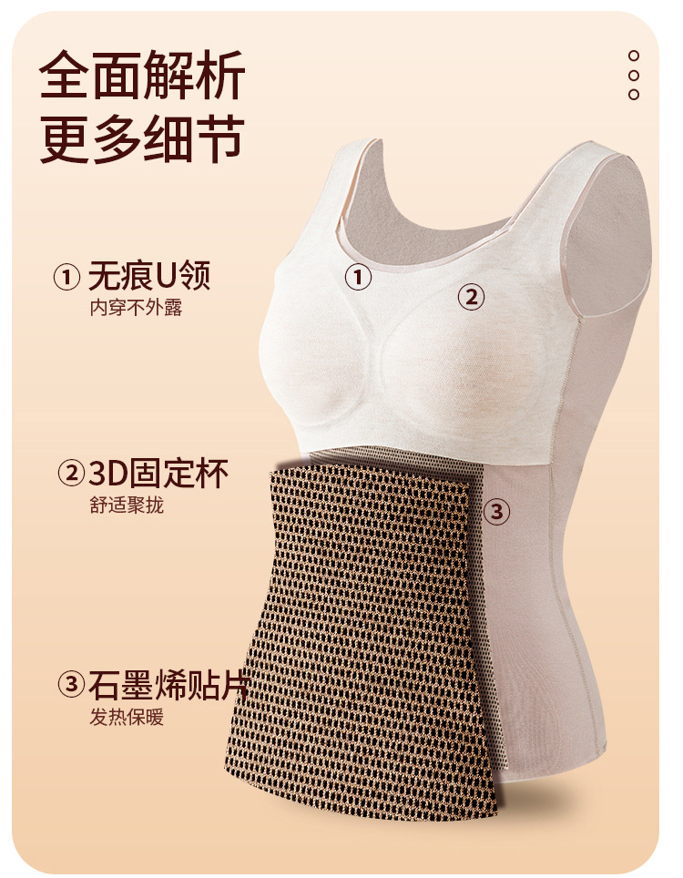 丁摩 黑科技石墨烯保暖吊带背心秋冬季大码德绒带胸垫女士发热内衣5ZF-8834