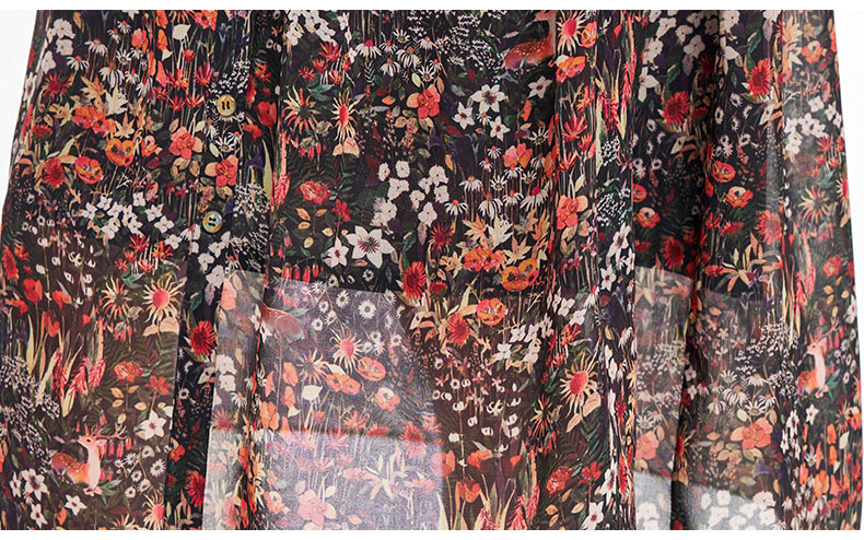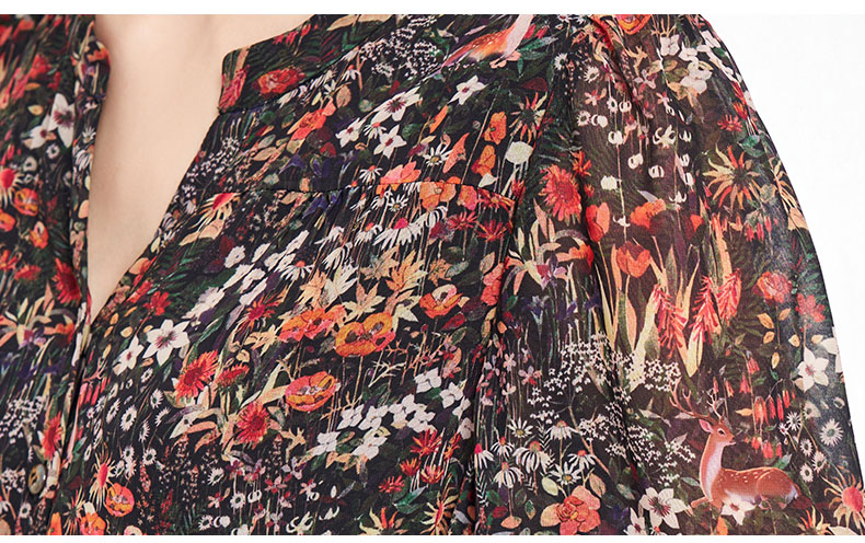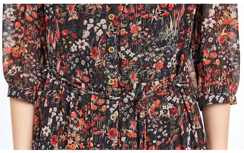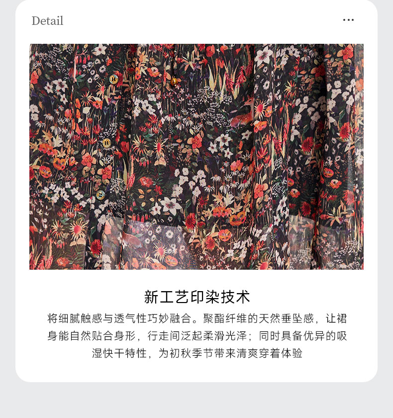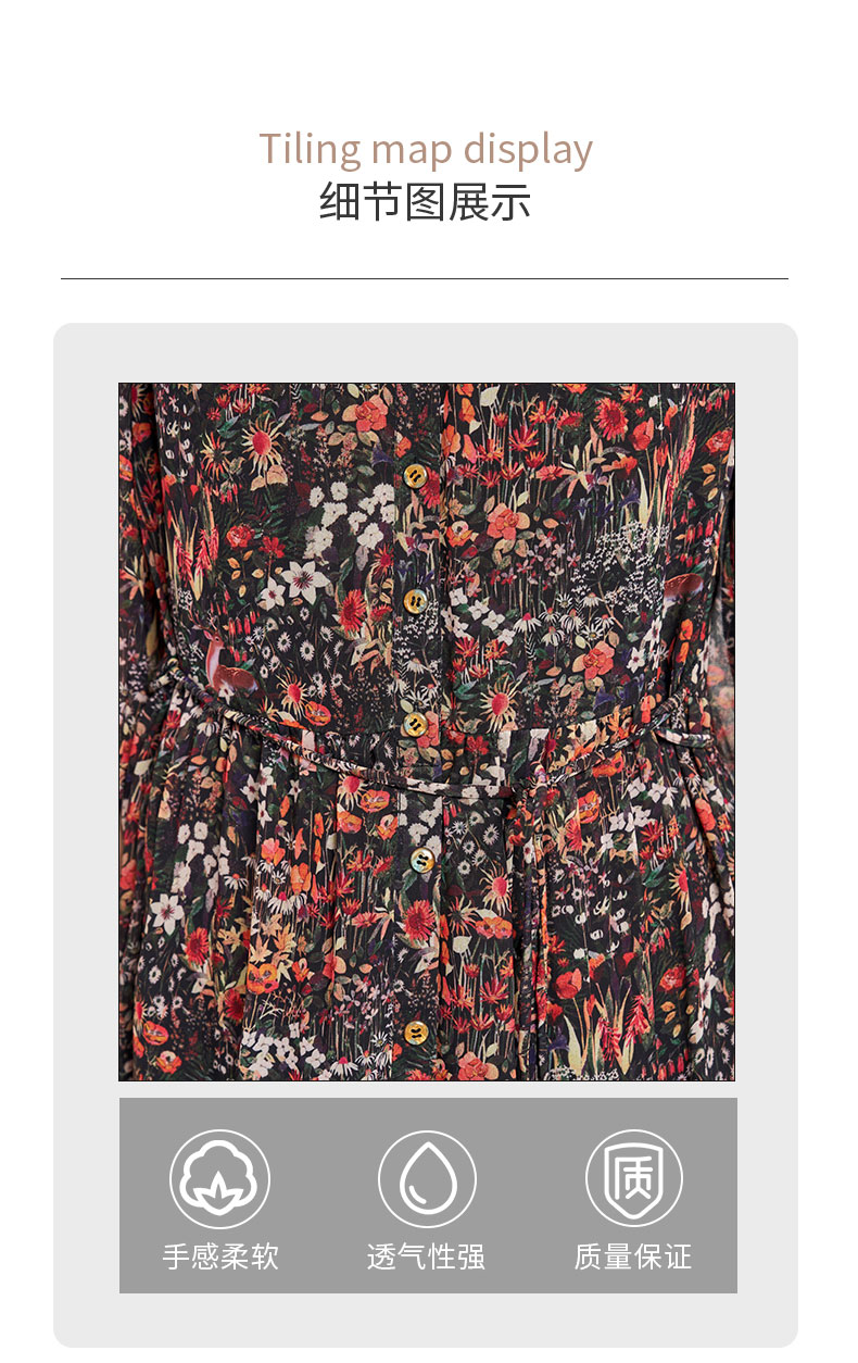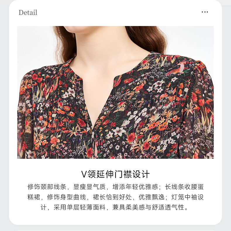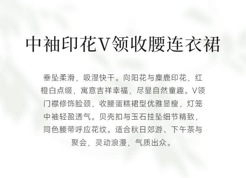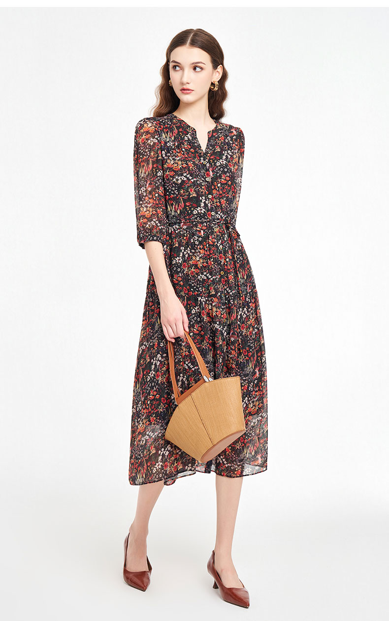 乔万尼新品2025秋V领收腰显瘦印花中长款连衣裙ED3E207