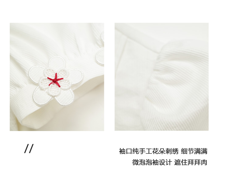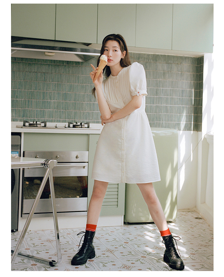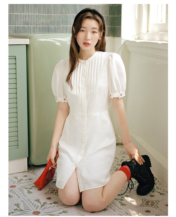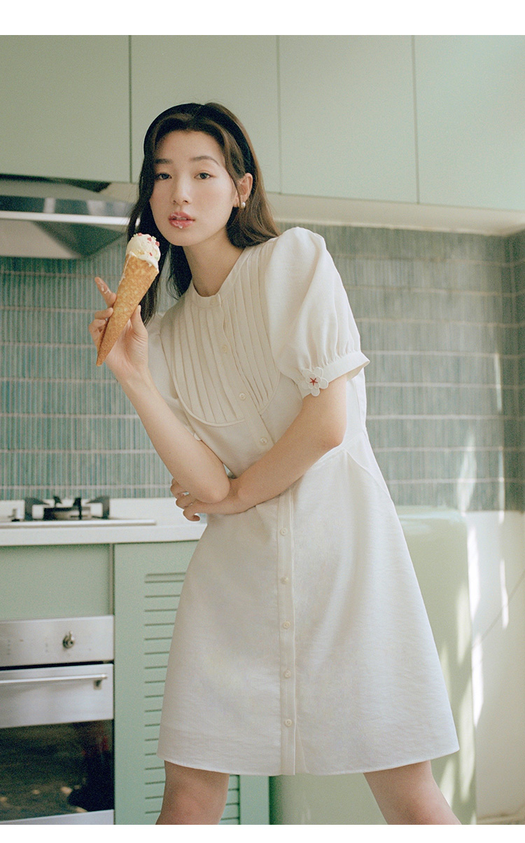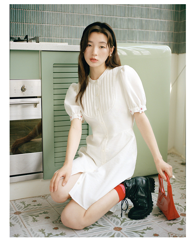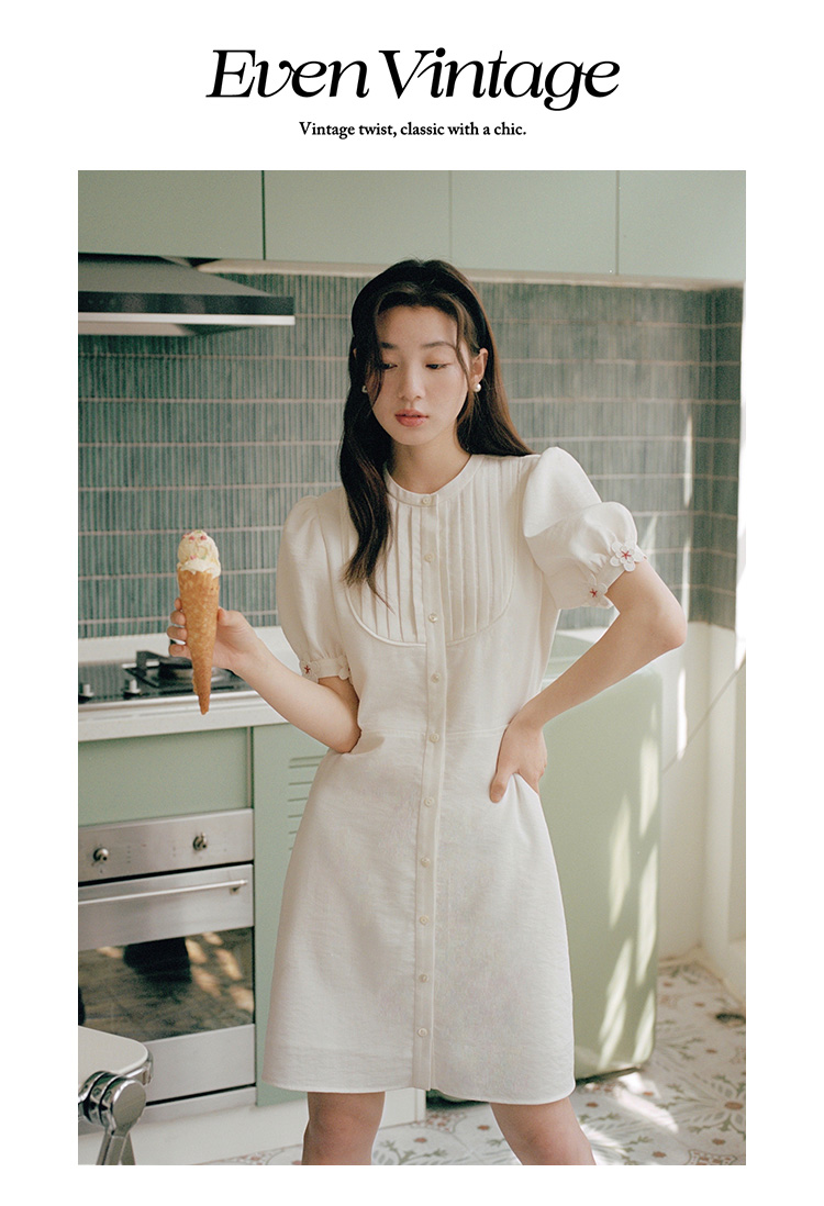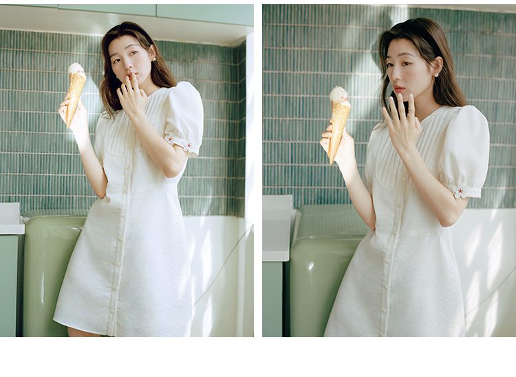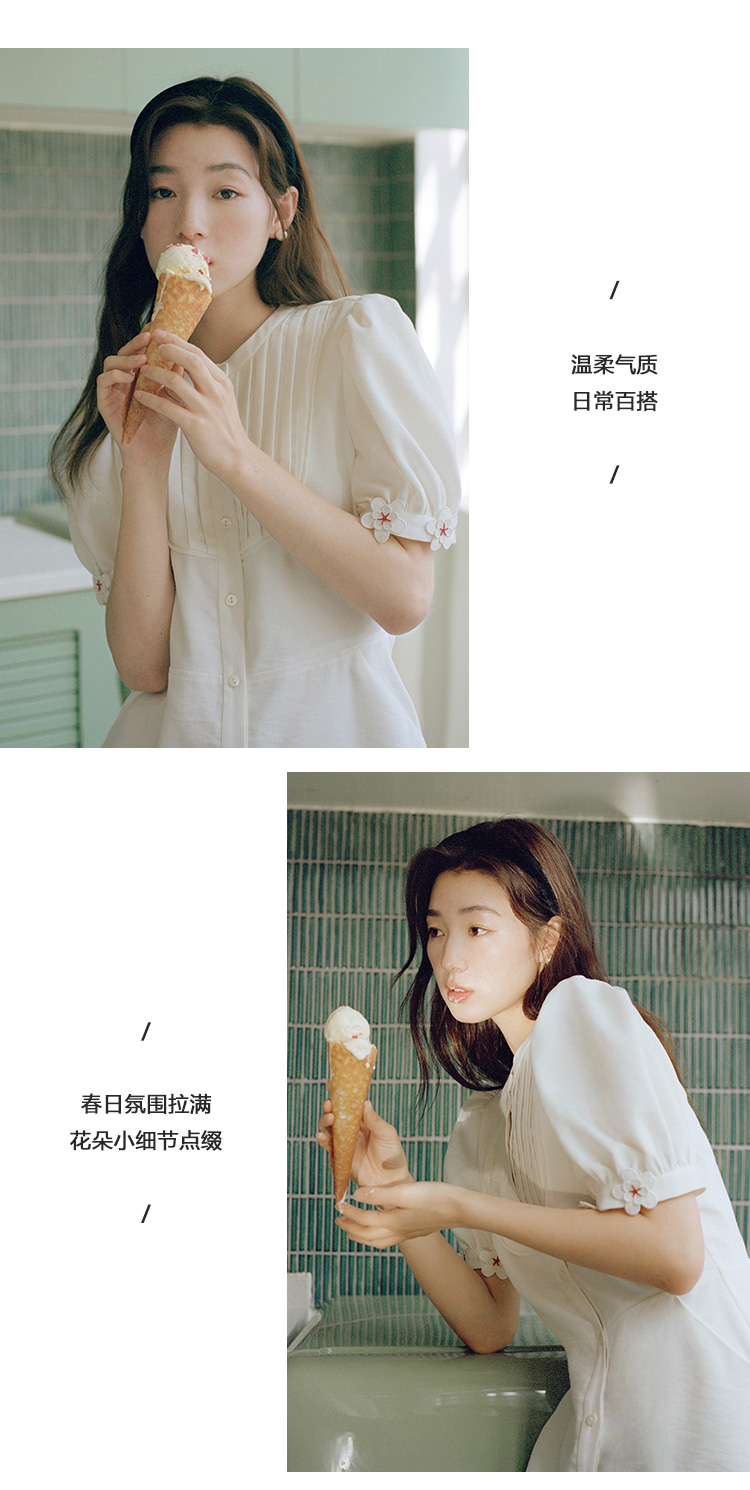 Even Vintage | 夏日清新 原创设计法式连衣裙刺绣花朵高腰小白裙