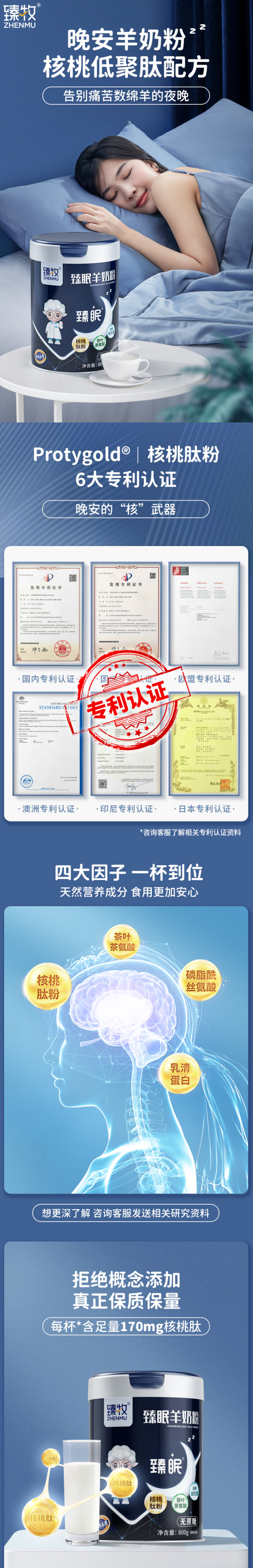 臻牧臻眠羊奶粉800g 中老年学生男女士成人睡眠无蔗糖纯助失