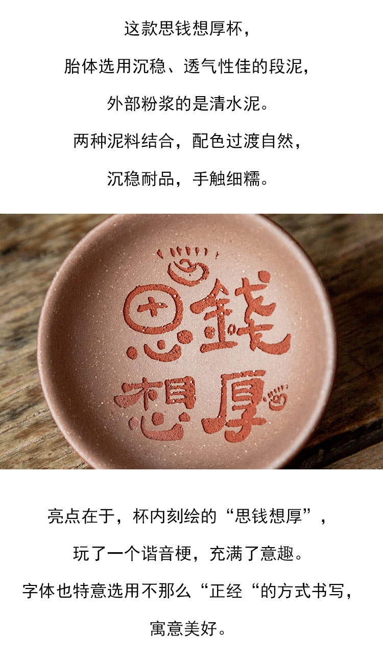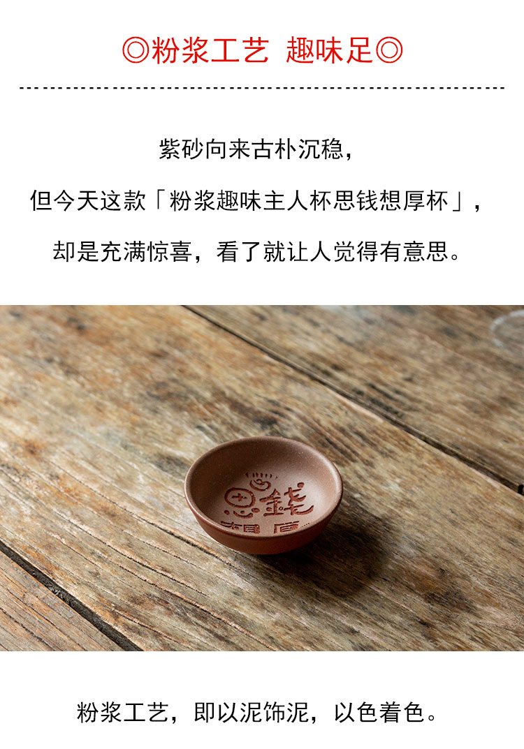 茶香记 紫砂粉浆趣味主人杯思钱想厚杯70ml茶杯品杯趣味足实用