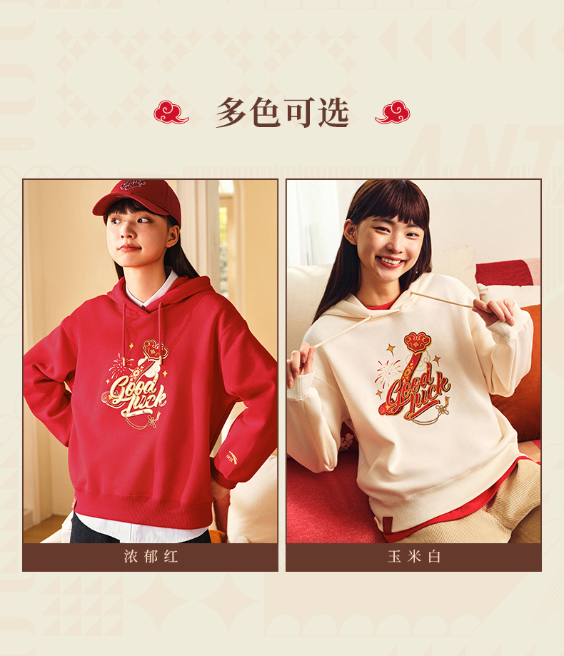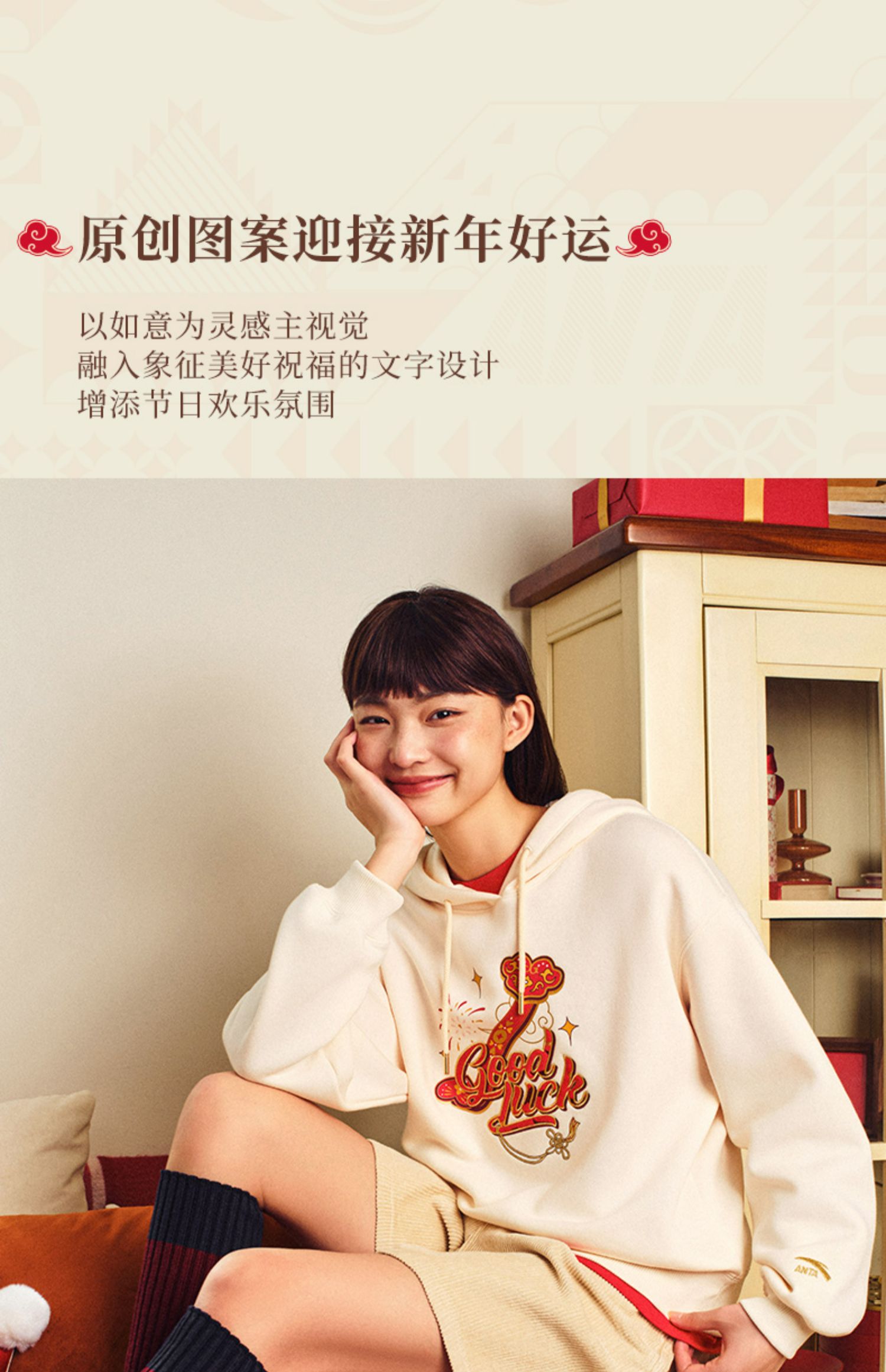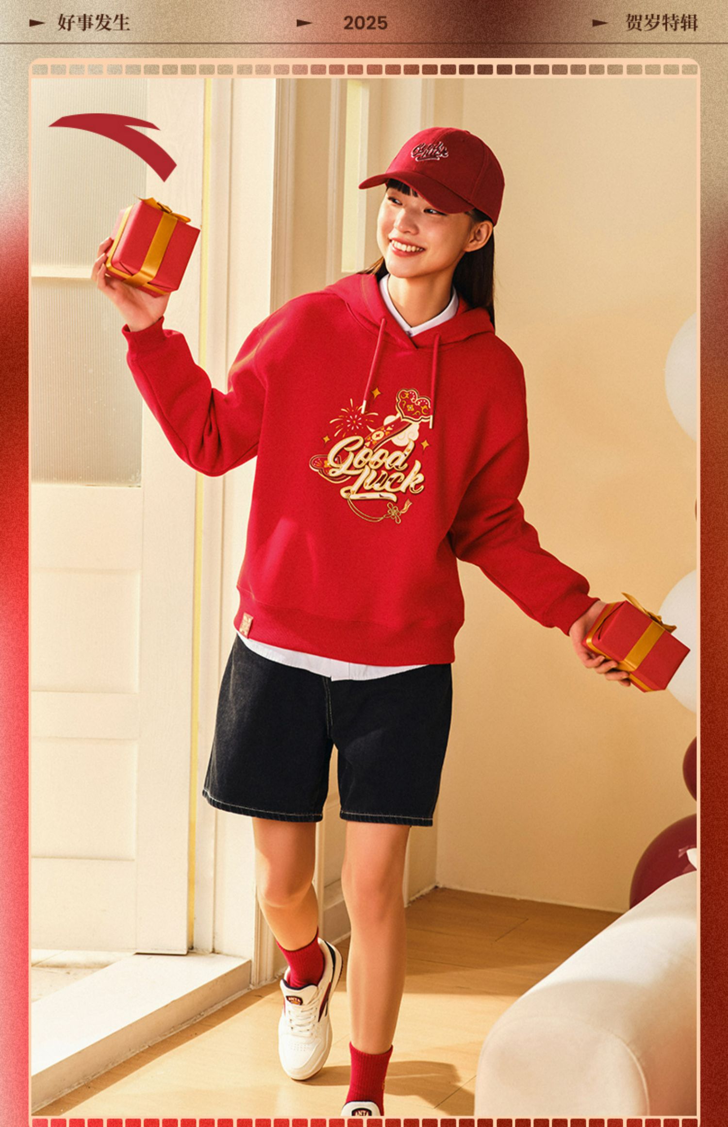 【299任选2件】【关晓彤同款】安踏好事发生丨女款红色加绒厚卫衣162518728N