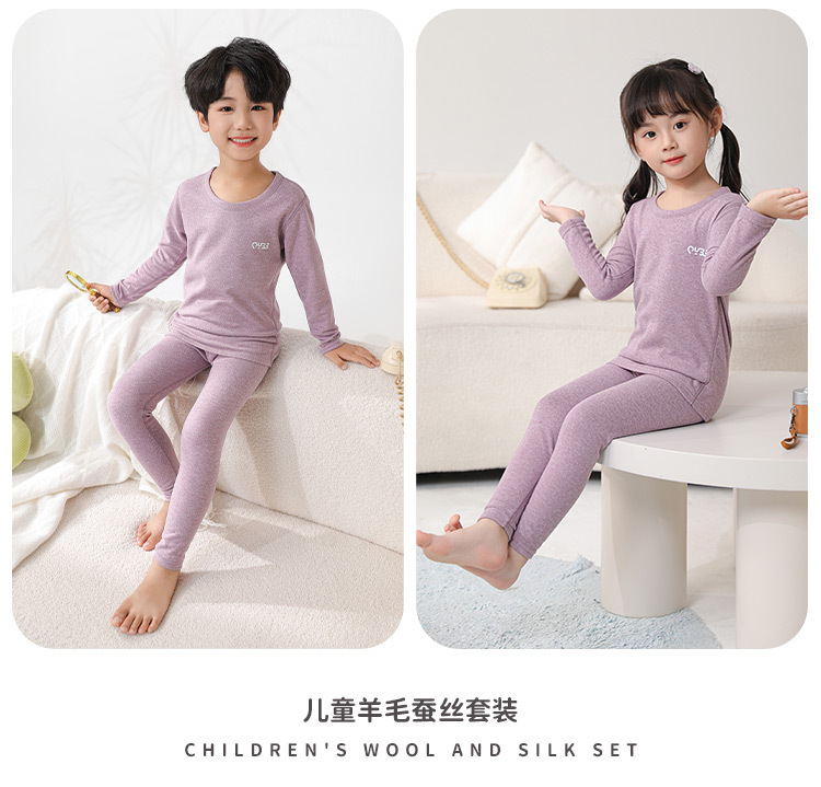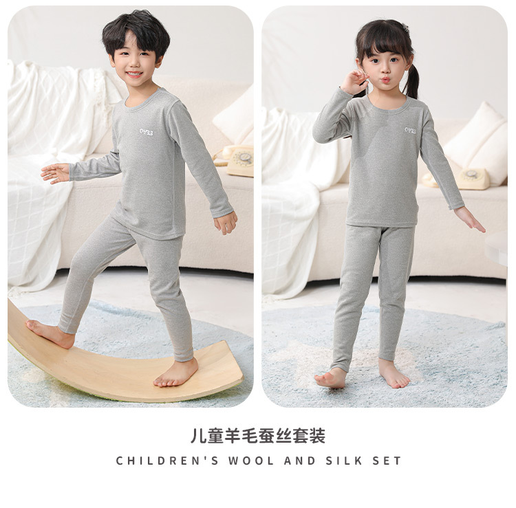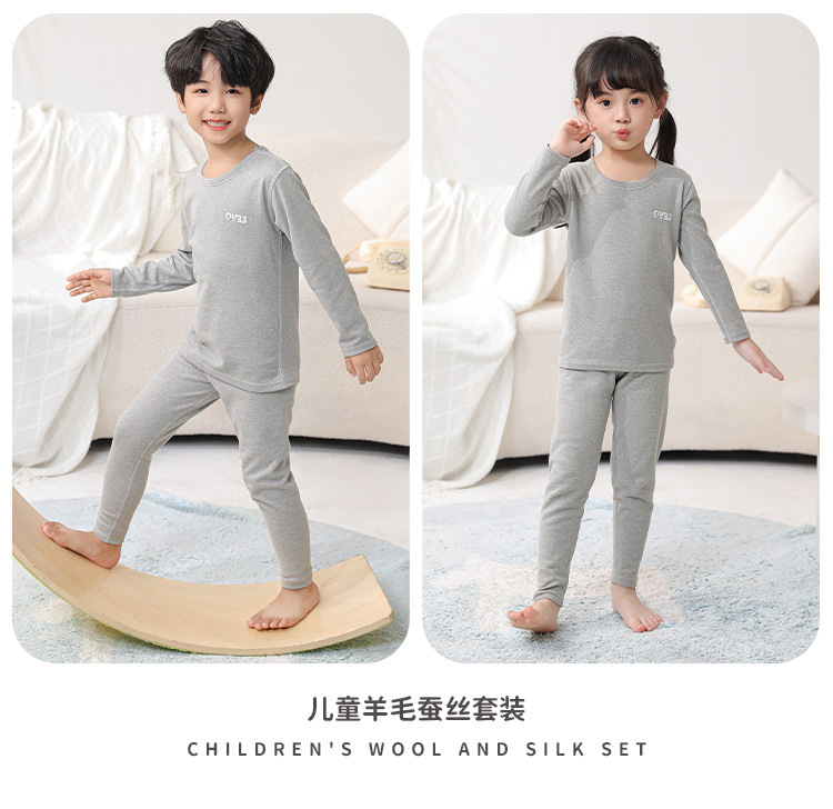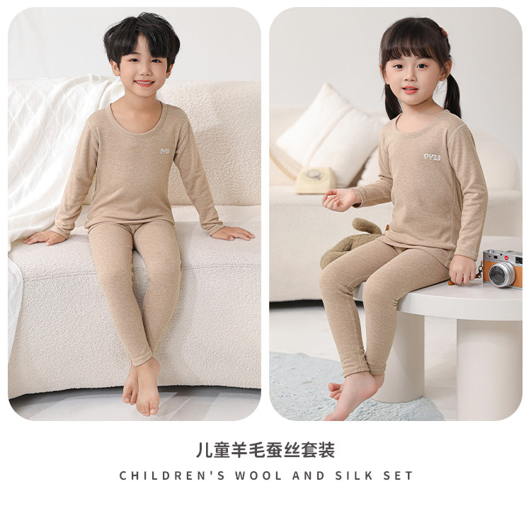 【89.9/任选两件!】儿童羊毛蚕丝保暖内衣,男女童秋衣秋裤套装,秋冬新款中大童保暖套装lm