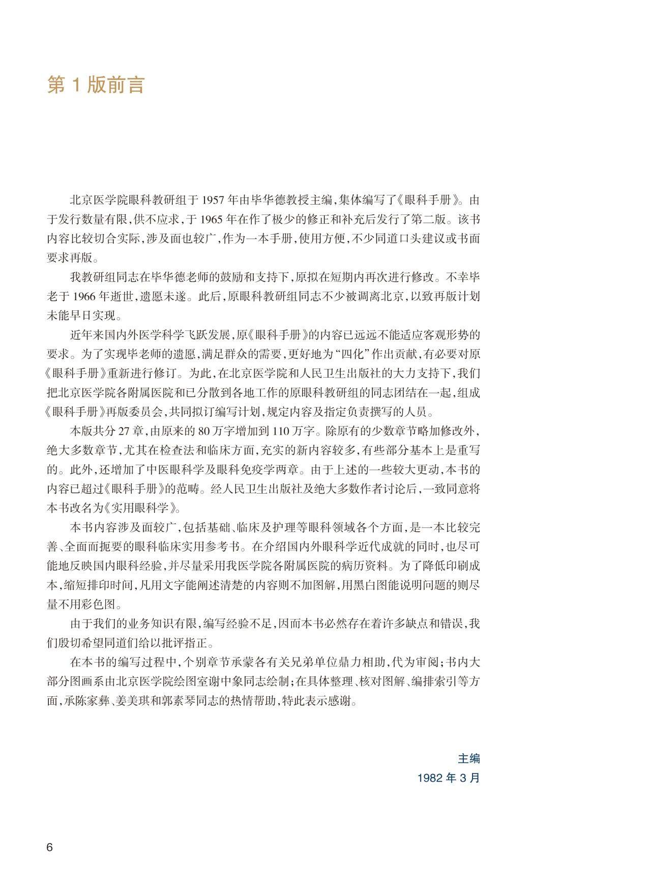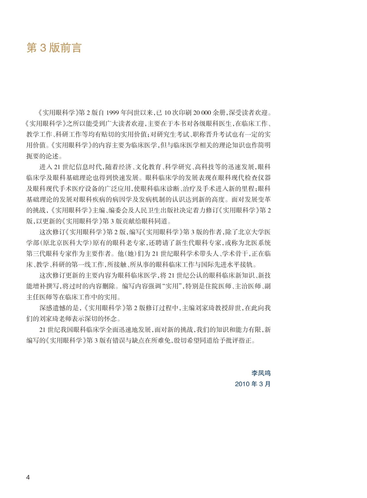 在刘家琦、李凤鸣、吴静安、朱秀安等老一辈眼科大家所奠定的基础上,第4版《实用眼科学》主编由著名眼科学家黎晓新教授担任,编委团队汇集了来自北医系统的一批资深和年富力强的眼科医师,他们活跃于眼科学各领域,拥有十分丰富的教学和临床经验。