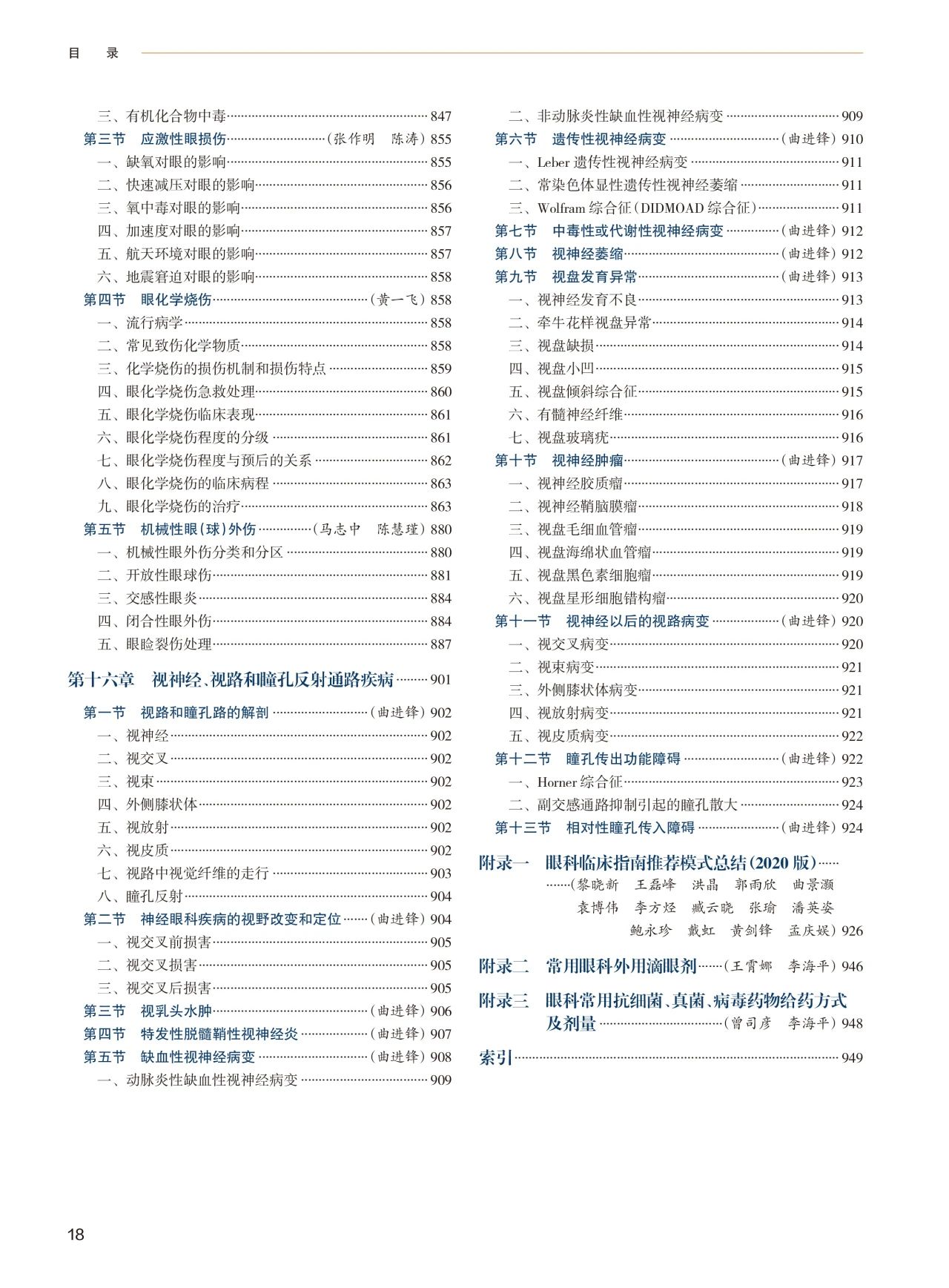 新增三个附录:① 眼科临床指南推荐模式(PPP),以精简条目或表格形式描绘处理路径;② 常用滴眼剂;③ 抗生素的全身和眼内使用剂量。