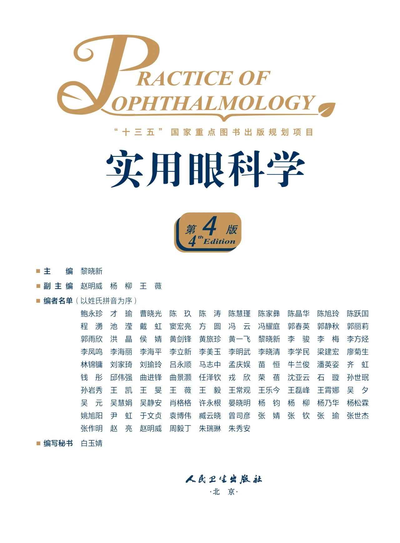 《实用眼科学》是人民卫生出版社临床“实用”系列传承之作,隶属人卫社中国医药原创精品图书工程,第4版入选“十三五”国家重点出版物出版专项规划项目,是人民卫生出版社成立70周年献礼图书之一。