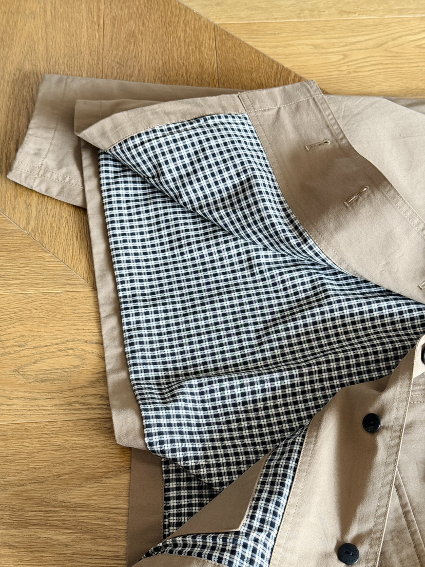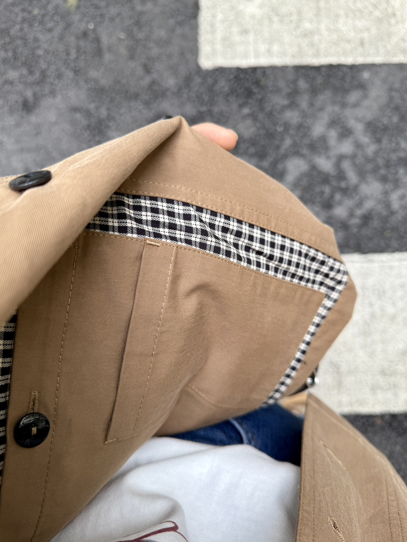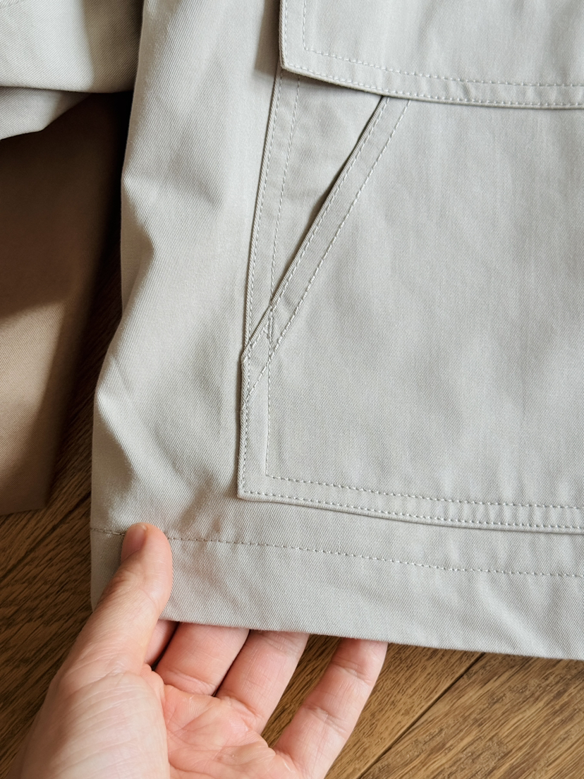 布面有质感的筋骨,挺括度很棒,有离体空间感,垂顺有型质感细腻,触感干爽,具有良好的透气性和调湿功能,穿着轻松舒适,实穿度和时髦度拉满,这个秋天,bi收一件这样的风衣,宽松直筒一手长风衣廓形,立体裁剪,各角度版型立体挺阔线条走势垂顺而下,没有过分向外阔,对身形修饰效果非常好,刚好能够遮住臀胯的长度,将短板隐藏起来,穿着时才不会有身材焦虑
