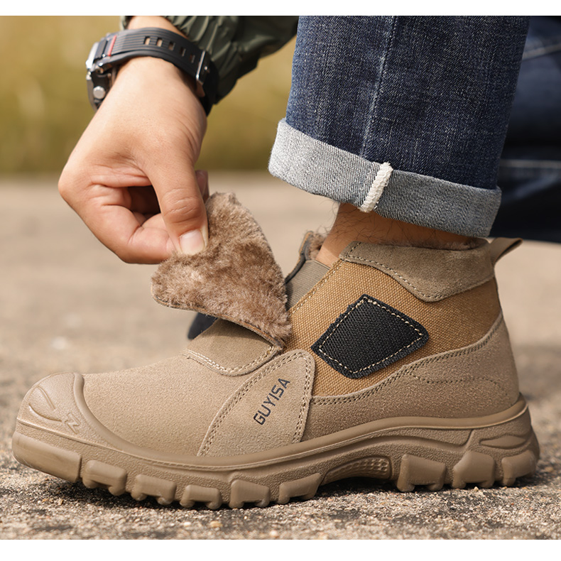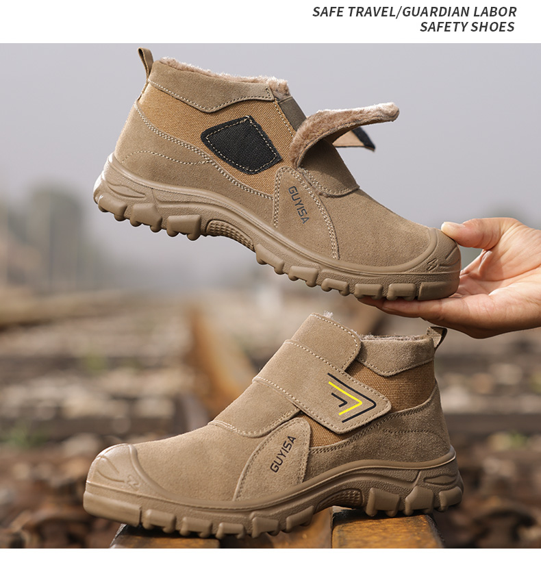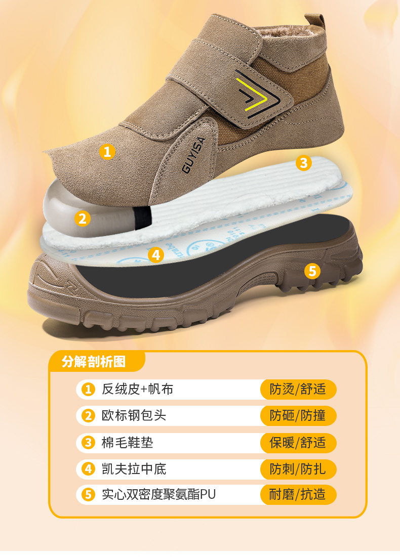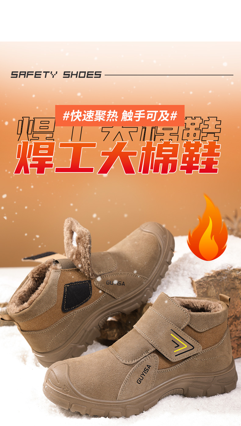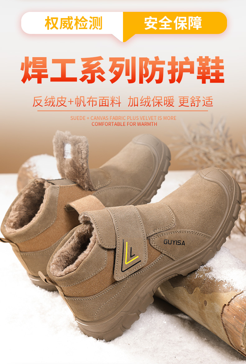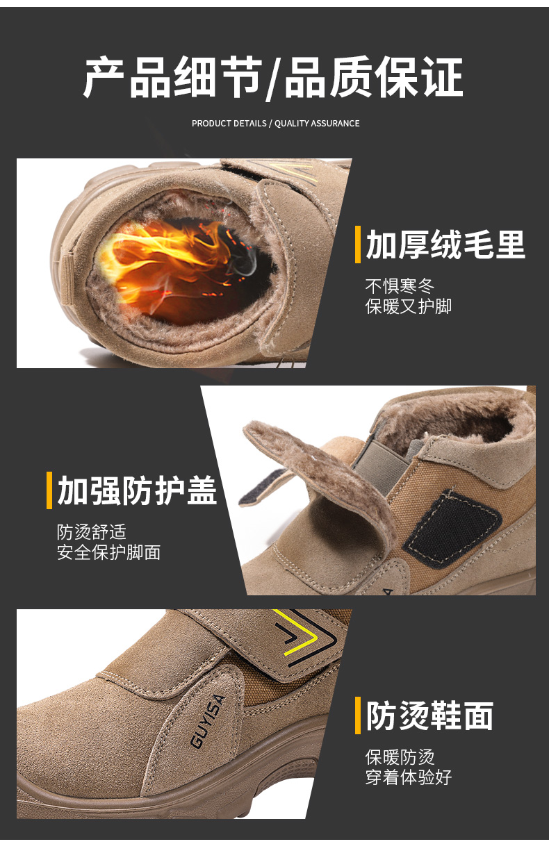 冬季加绒无鞋带焊工鞋翻盖不怕烧劳保鞋男保暖防砸防刺防烫工作鞋安全鞋钢包头