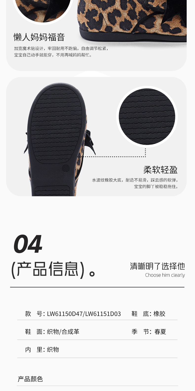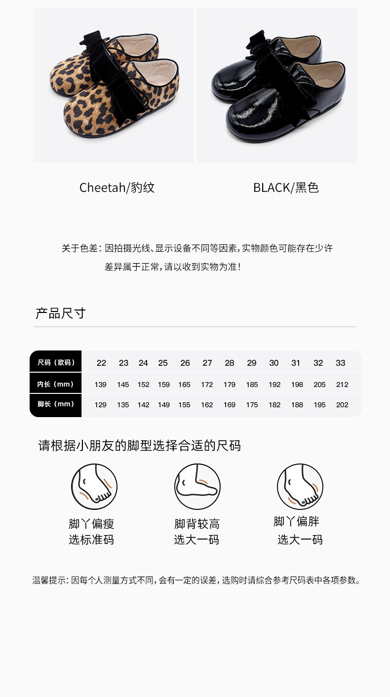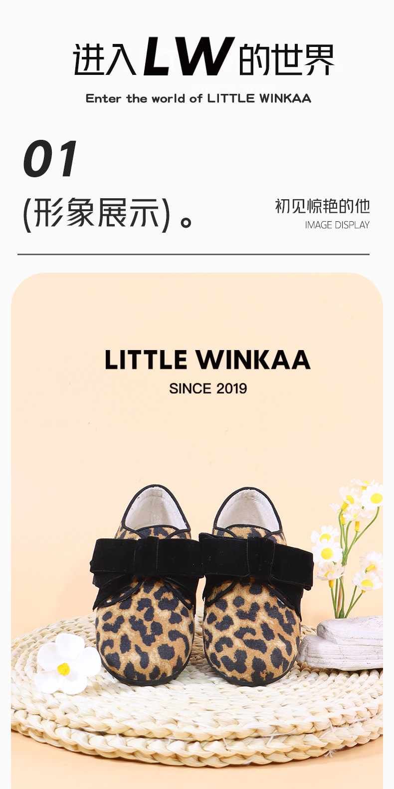 西班牙little winkaa童鞋2026新款春季百搭丝绒蝴蝶结豹纹公主舞蹈鞋女LW61150D47&LW61151D03