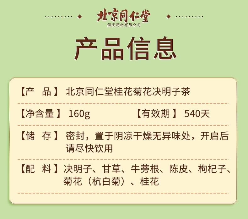【买5送5】北京同仁堂桂花菊花决明子茶160g/盒