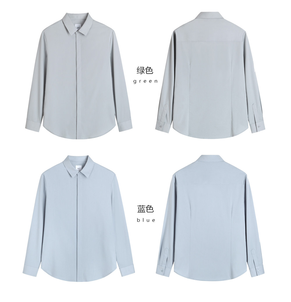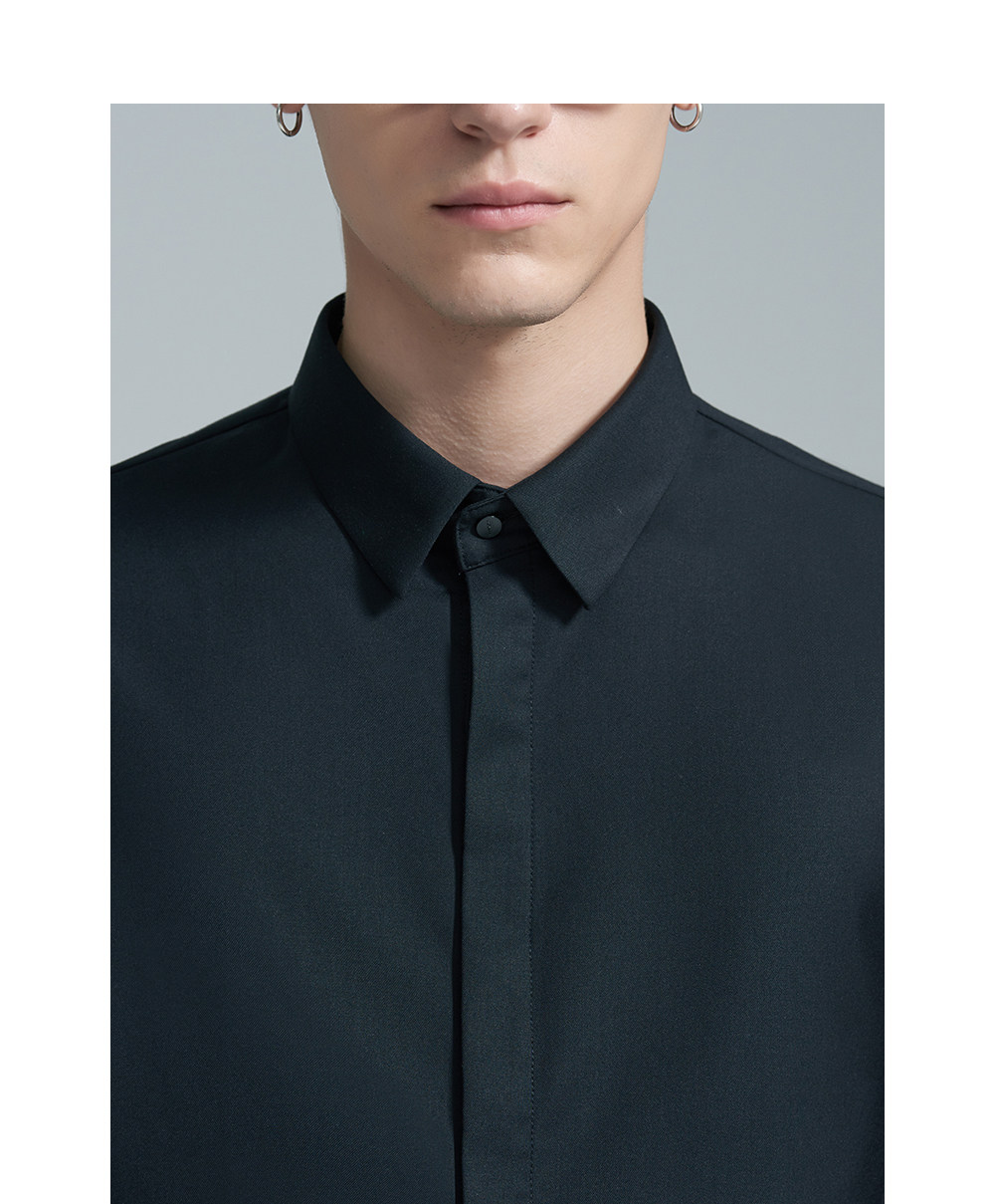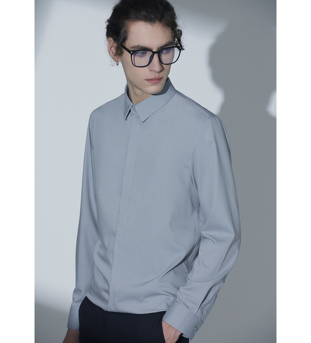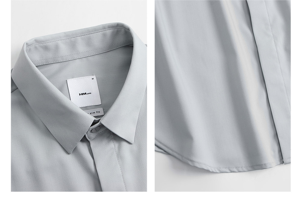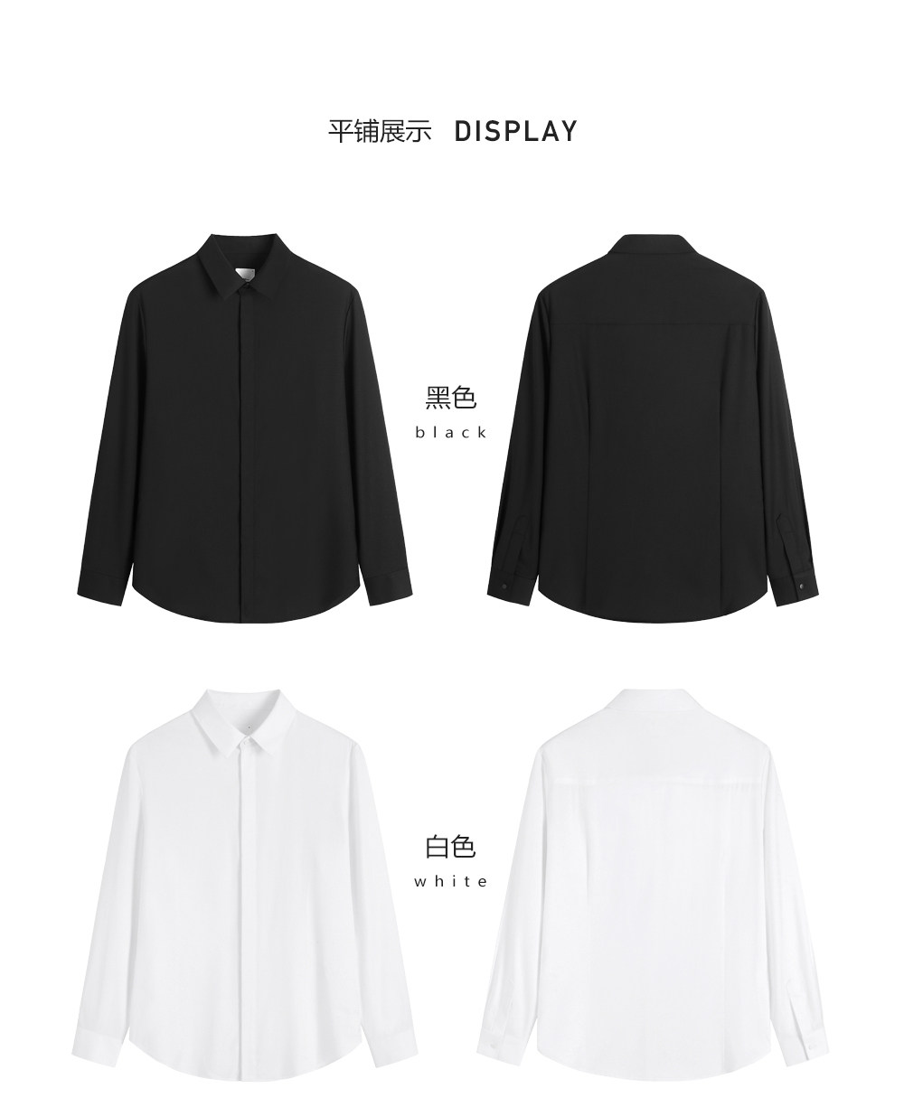 HIM漢崇 经典修身商务正装黑白蓝多色暗门襟方领长袖衬衣2026春夏