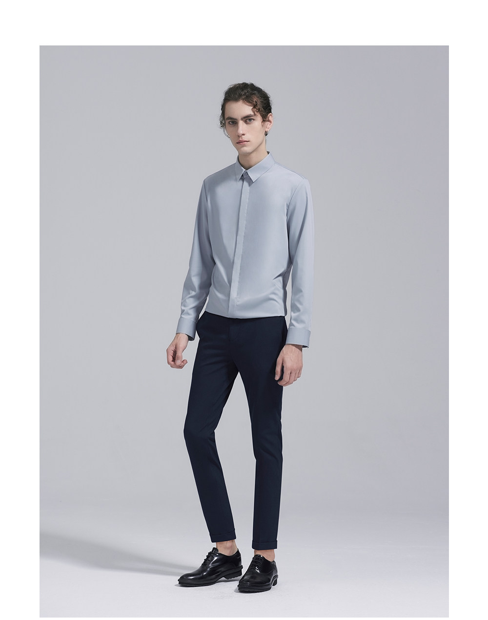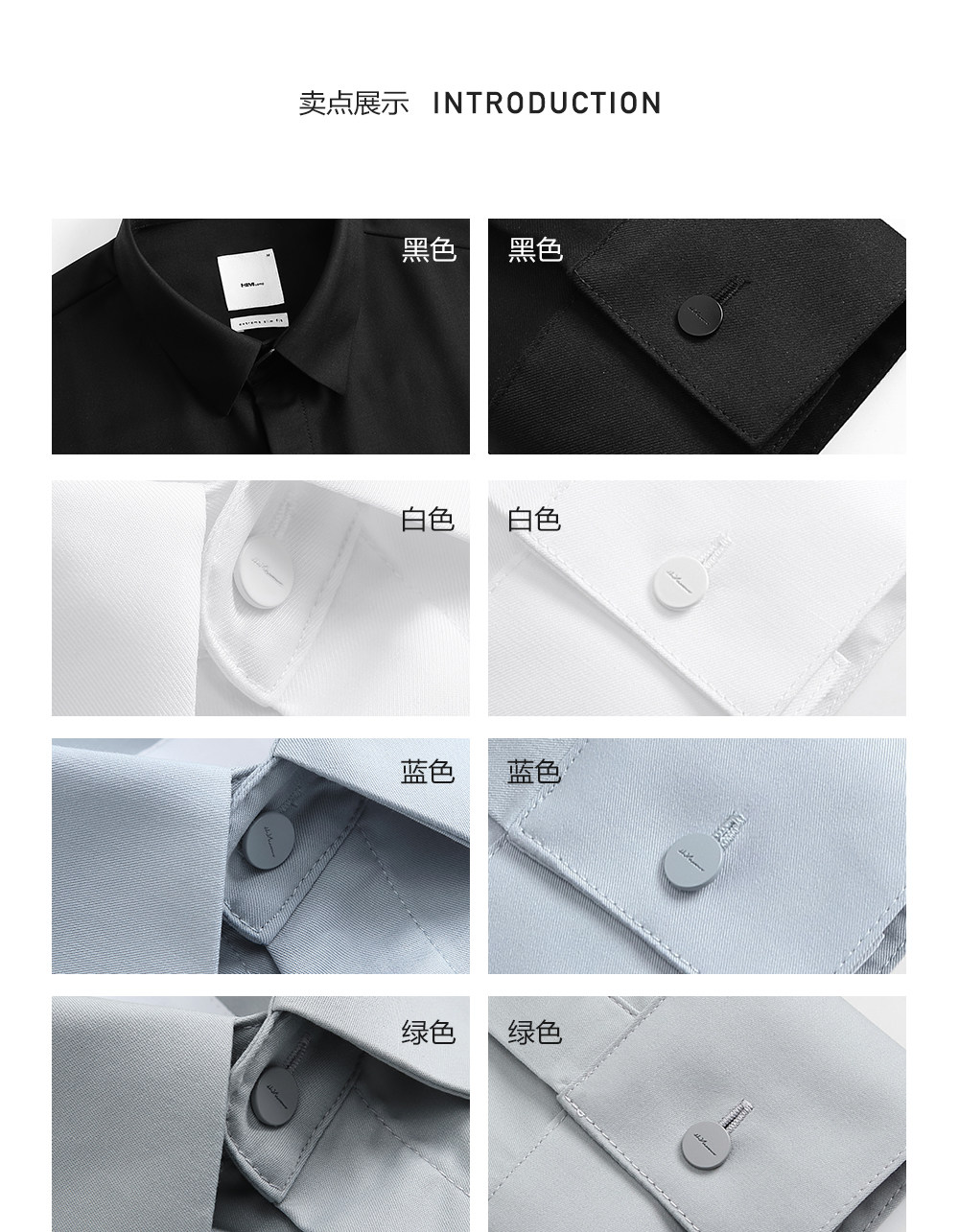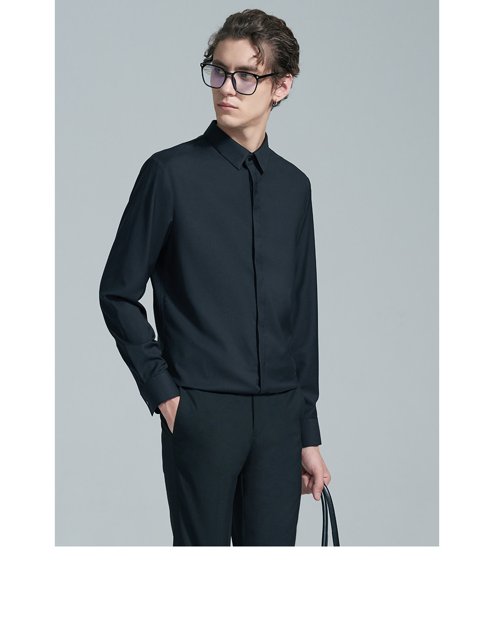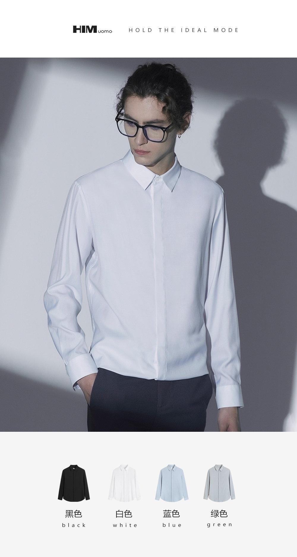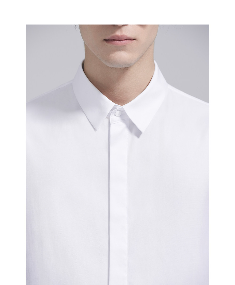 HIM漢崇 经典修身商务正装黑白蓝多色暗门襟方领长袖衬衣2026春夏