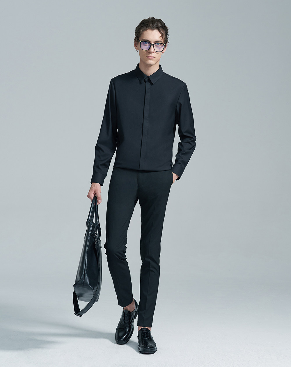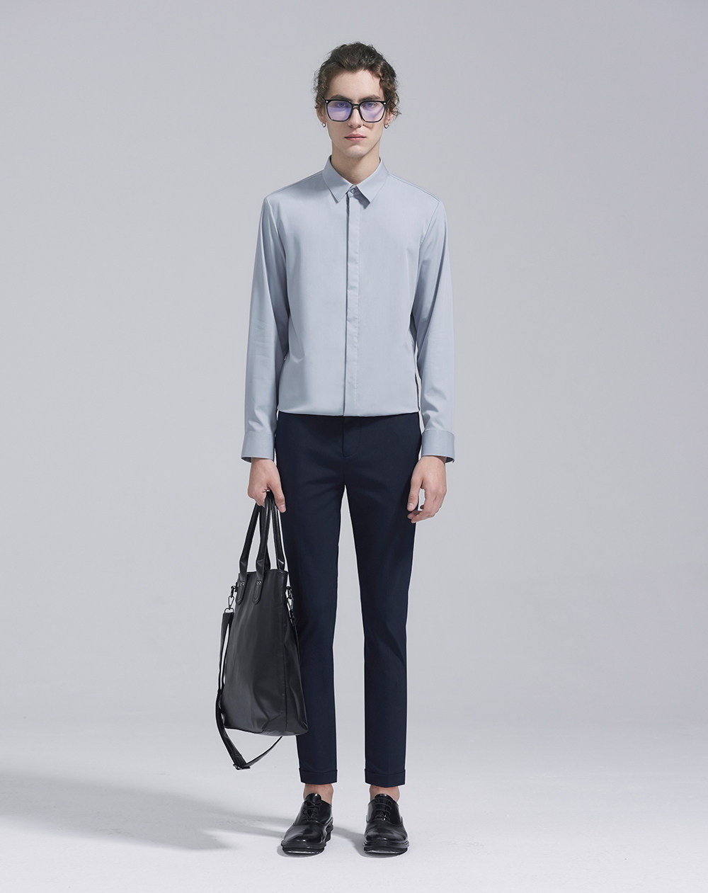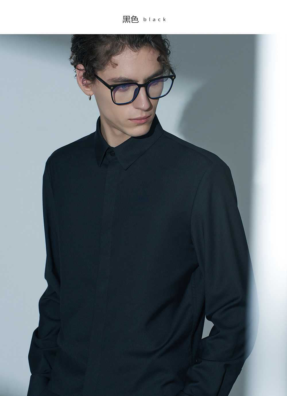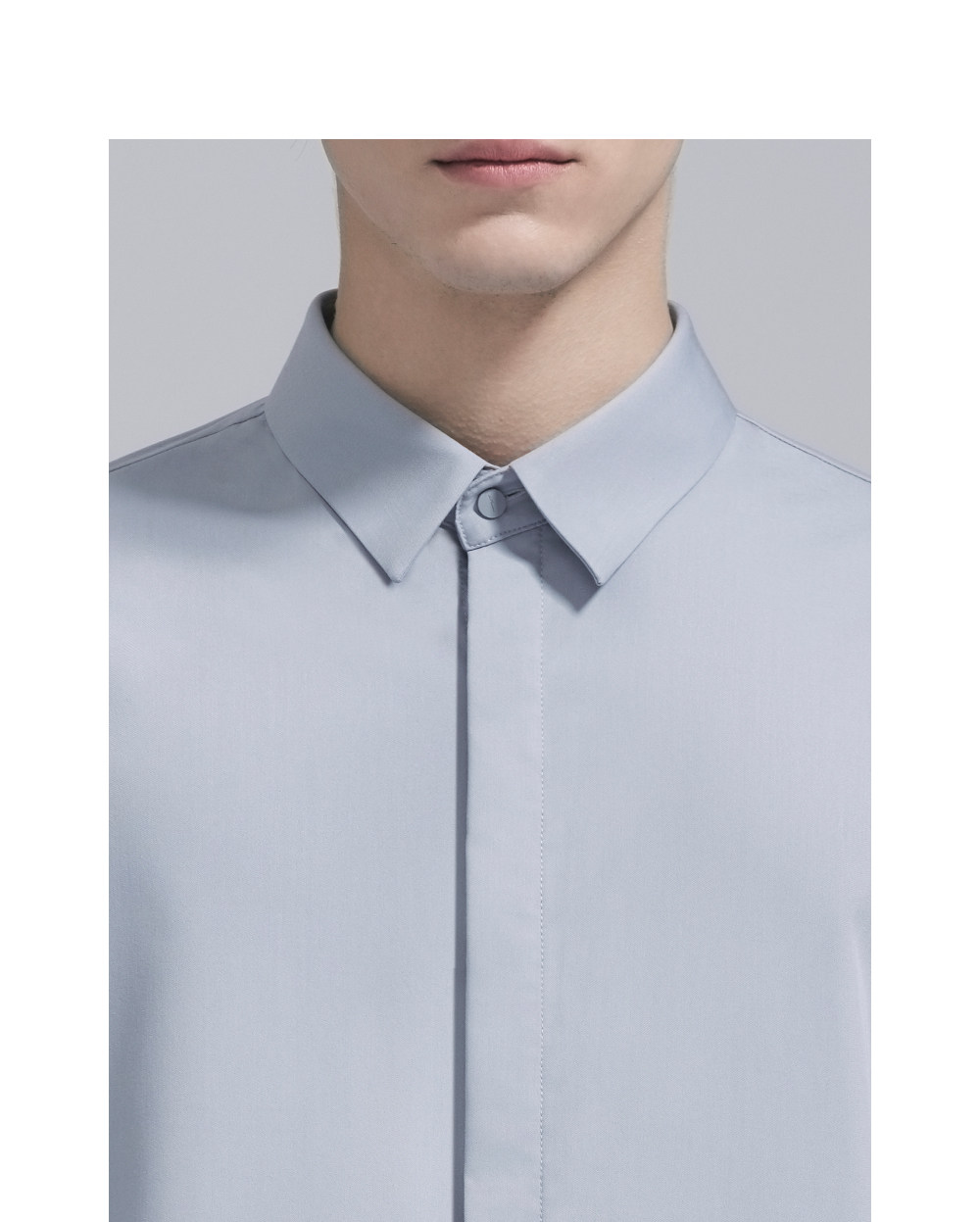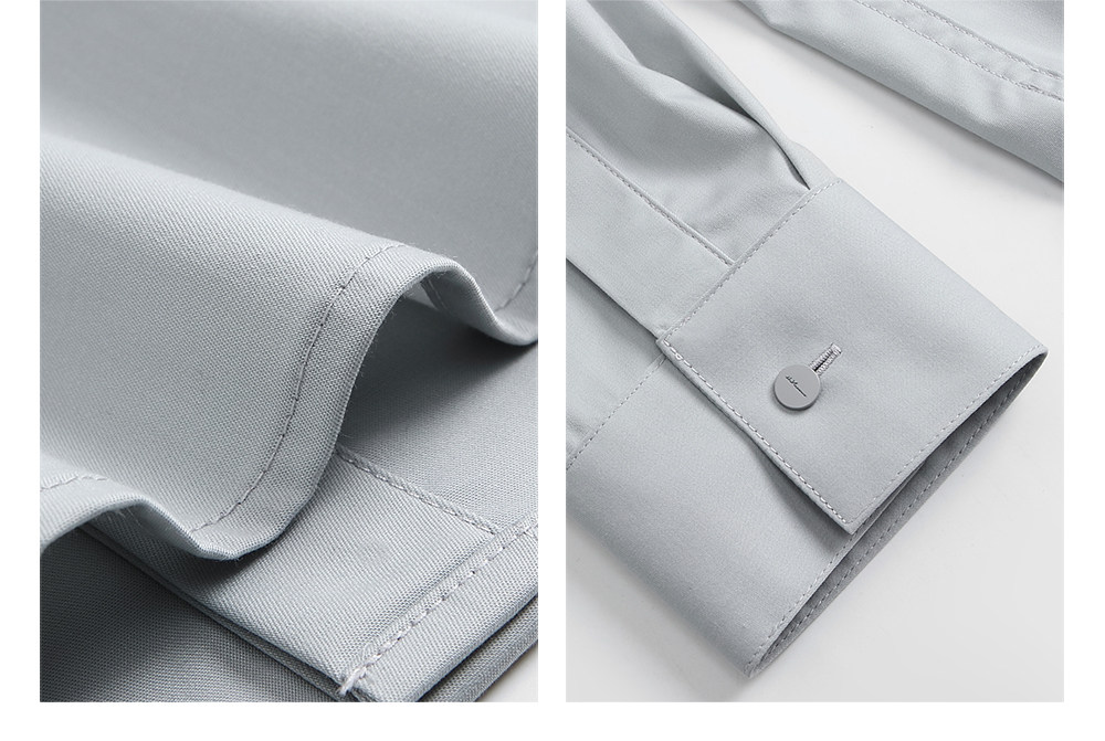 HIM漢崇 经典修身商务正装黑白蓝多色暗门襟方领长袖衬衣2026春夏