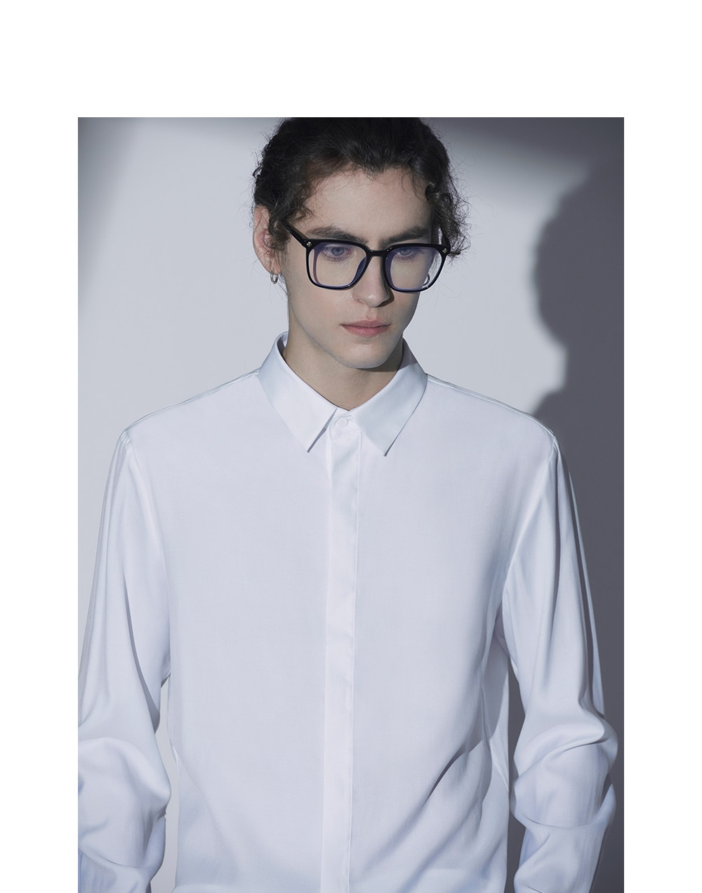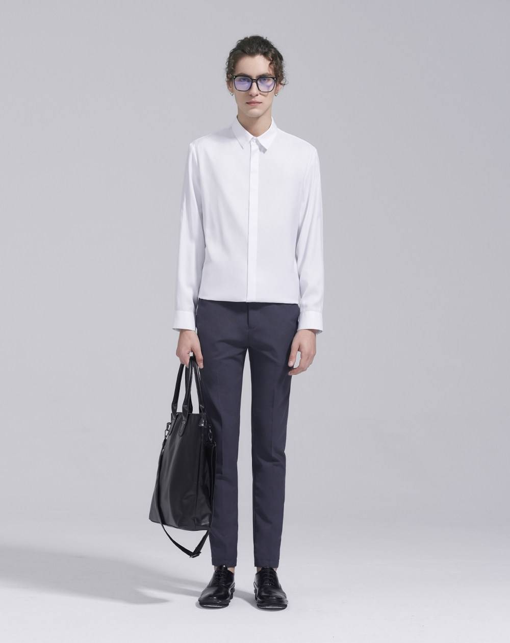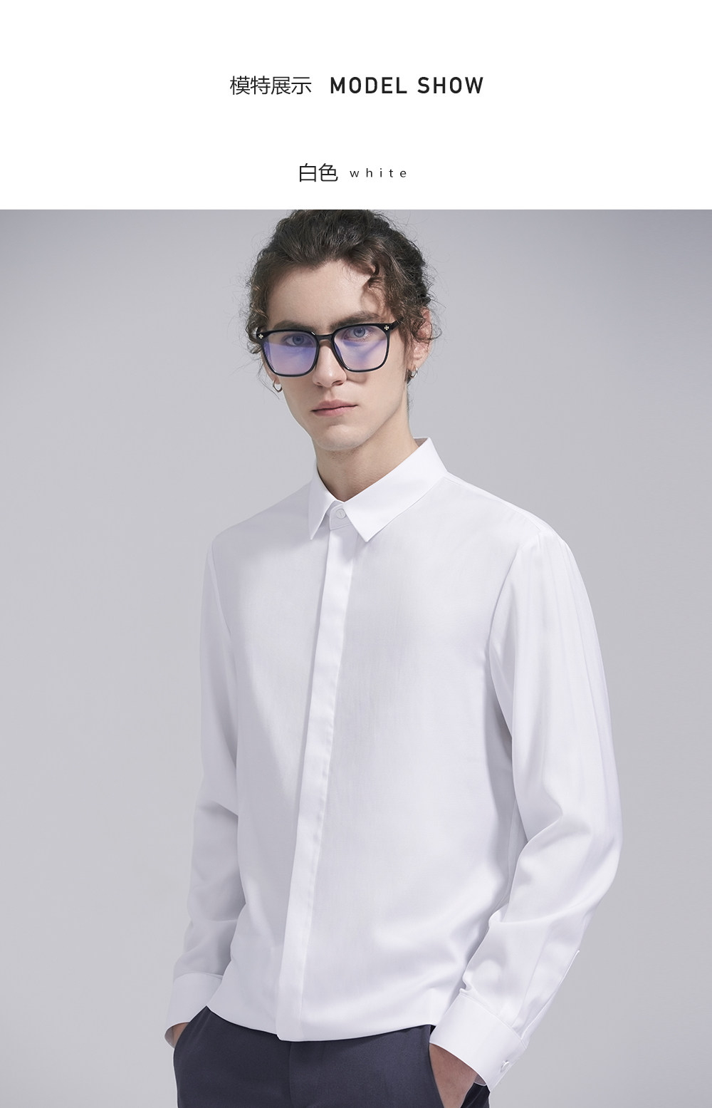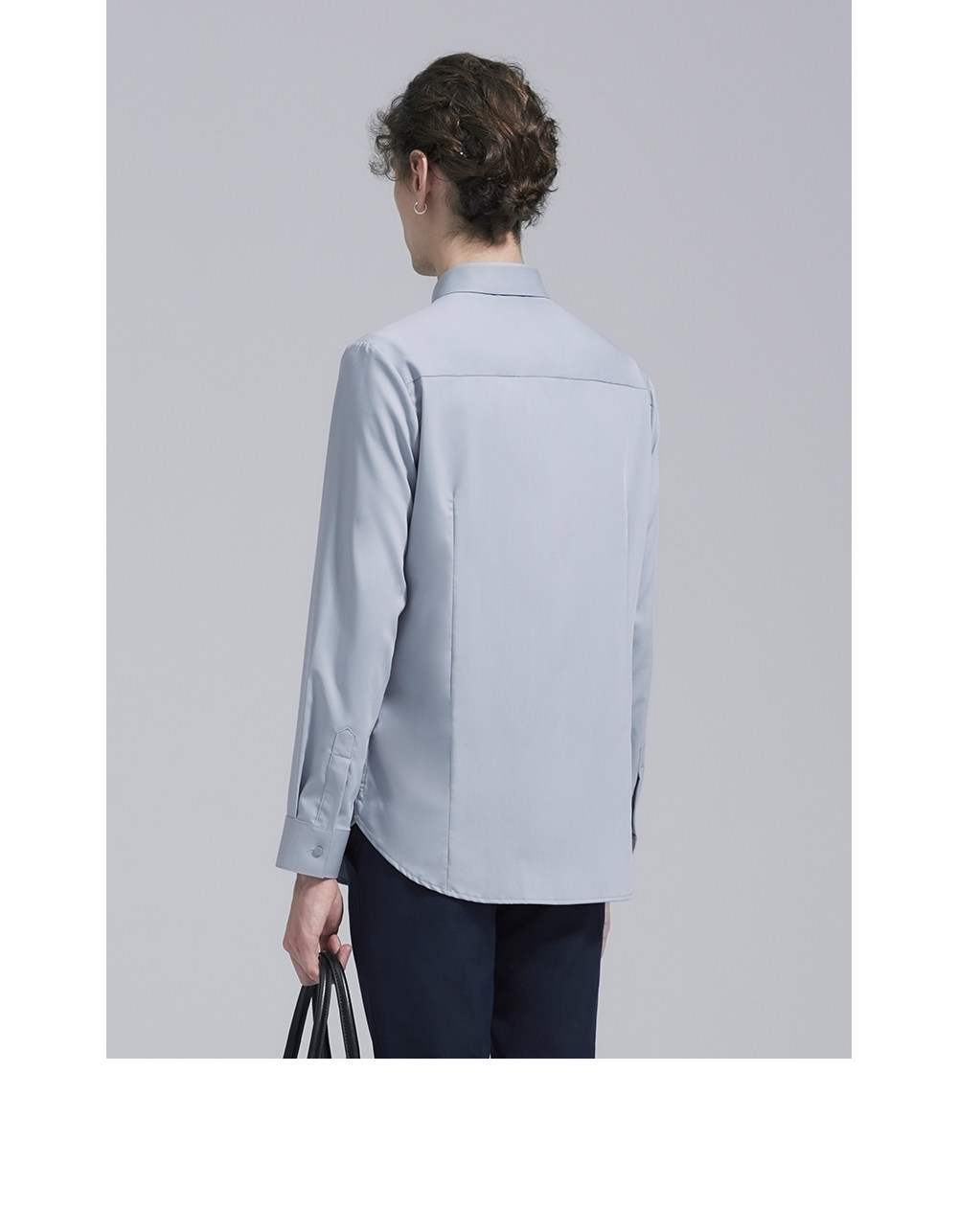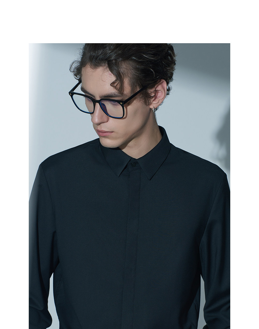 HIM漢崇 经典修身商务正装黑白蓝多色暗门襟方领长袖衬衣2026春夏