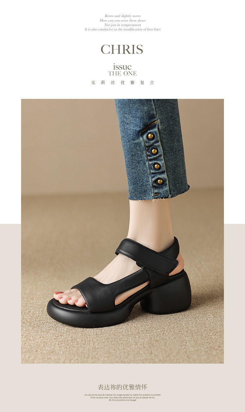 厚底高跟罗马鞋子,黑色运动沙滩凉鞋DTN-300-9