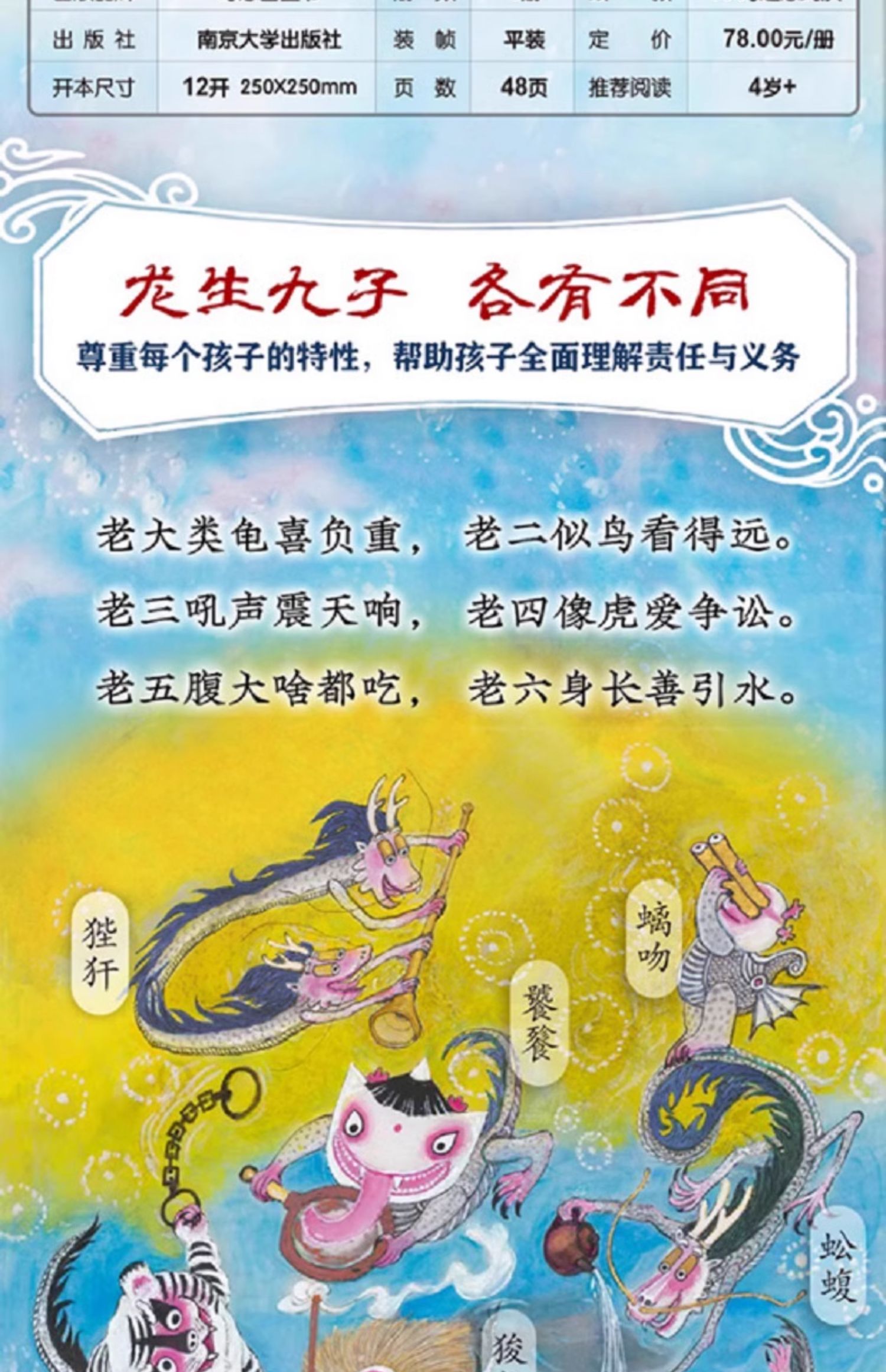 龙生九子 奇想国绘本 图画书 南京大学出版社 过年新年绘本欢乐中国年 6-9岁以上开心过大年幼儿幼儿园小班春节礼物 ND