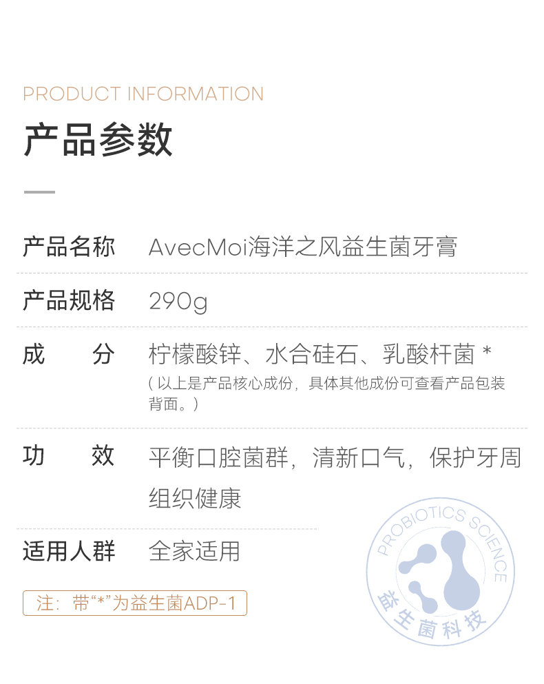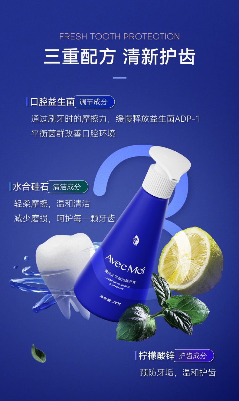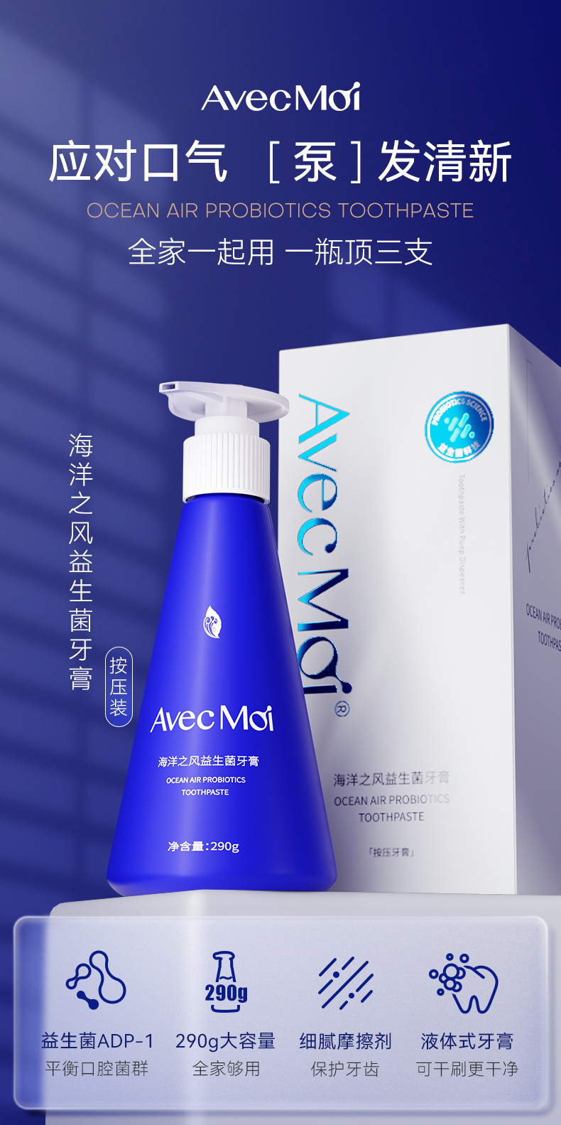 (品牌方直供)海洋之风 Avecmoi 益生菌牙膏 按压式海洋之风益生菌牙膏 女男士清新口气口腔异味