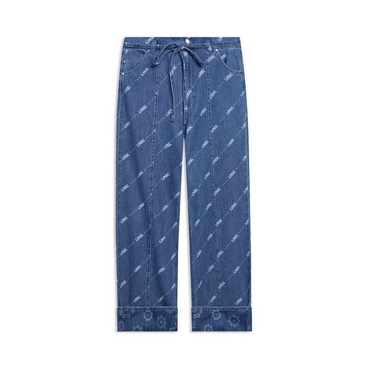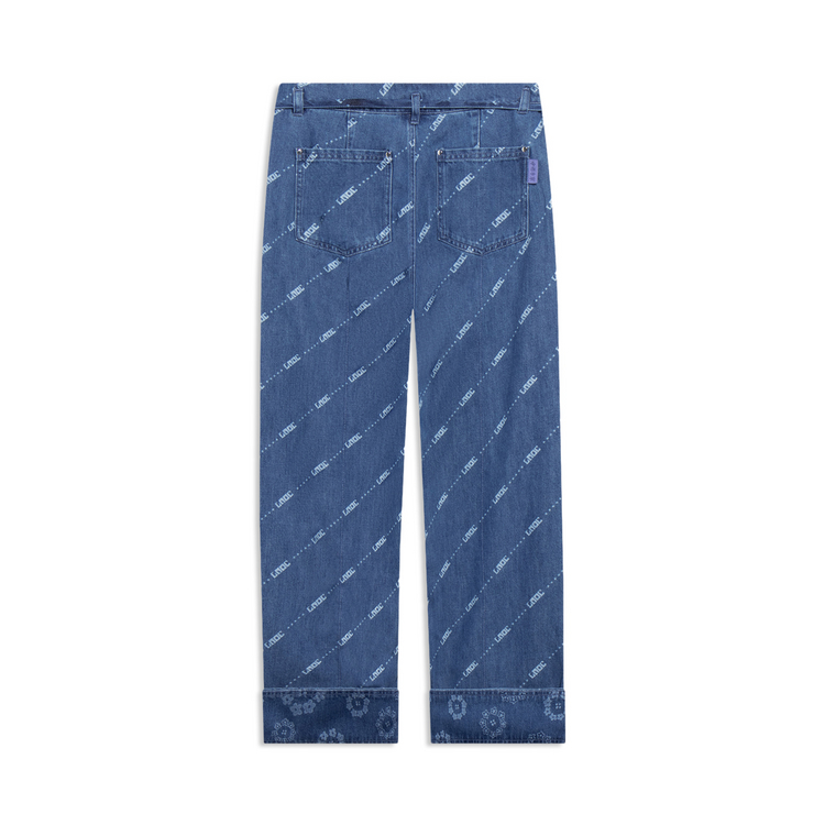 【XL断码】中国李宁2023春季新品女子时尚系列运动直筒水洗牛仔长裤 AJQT014【库存有限,如无货将做退款,介意慎拍!】