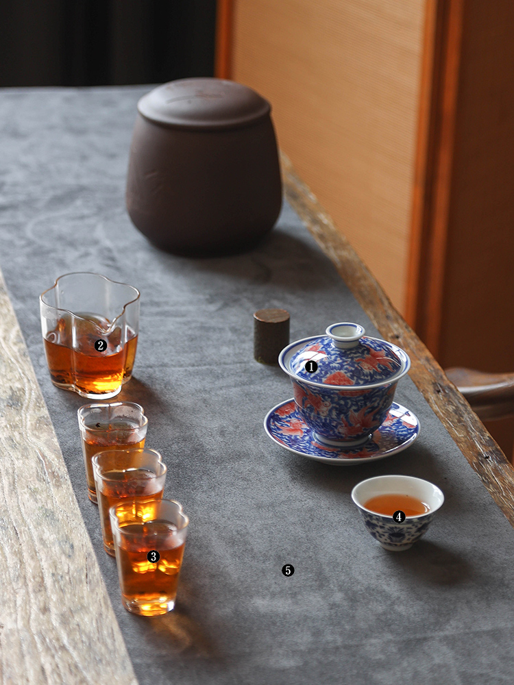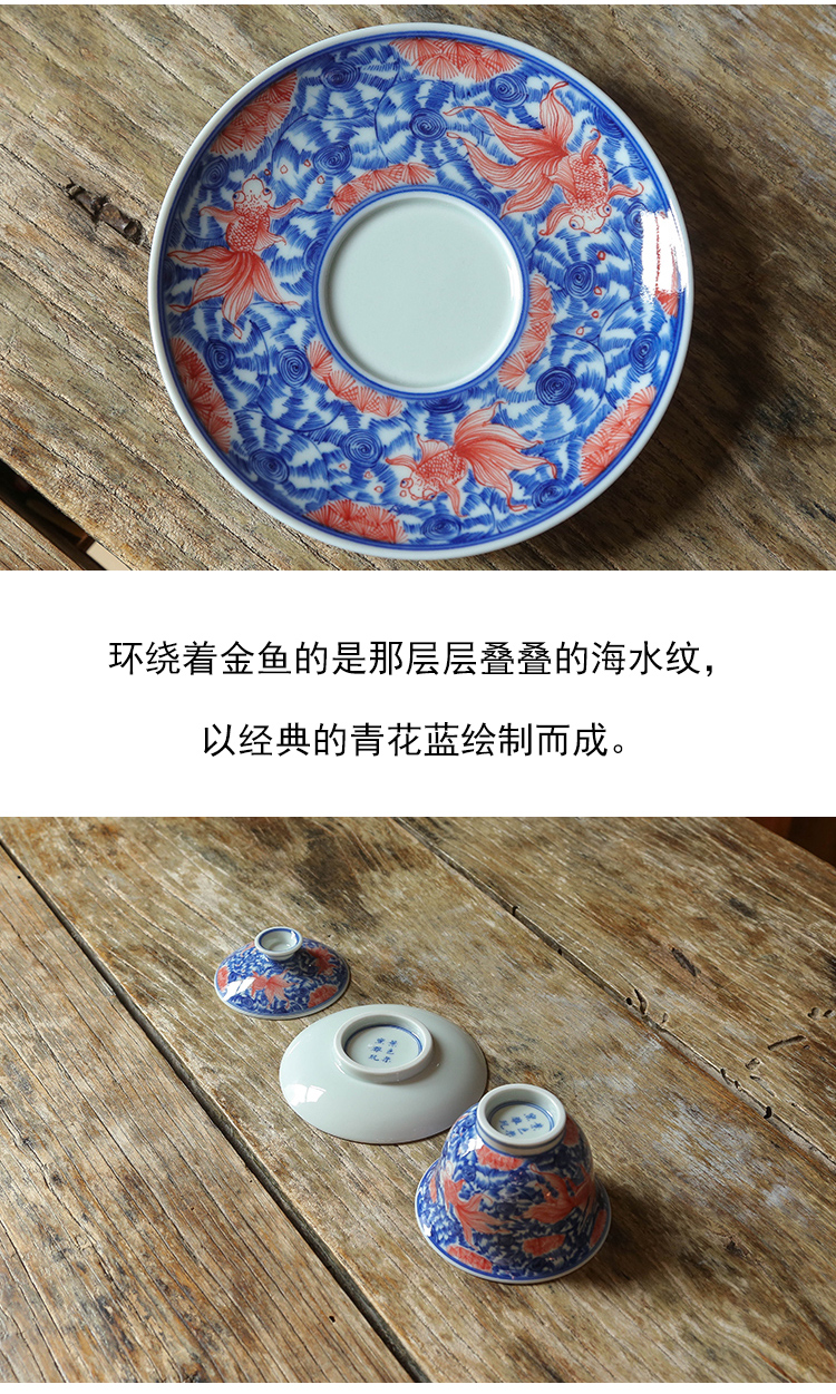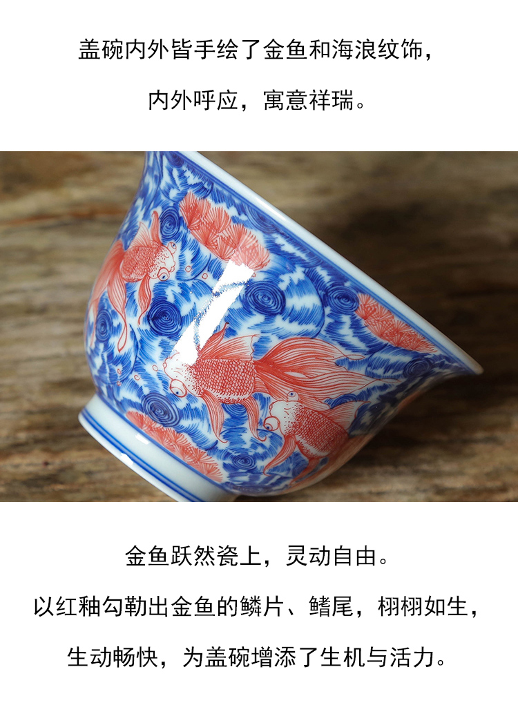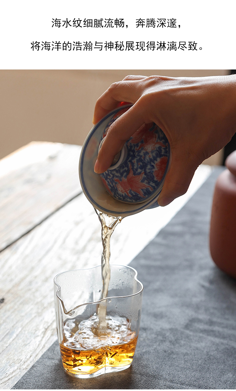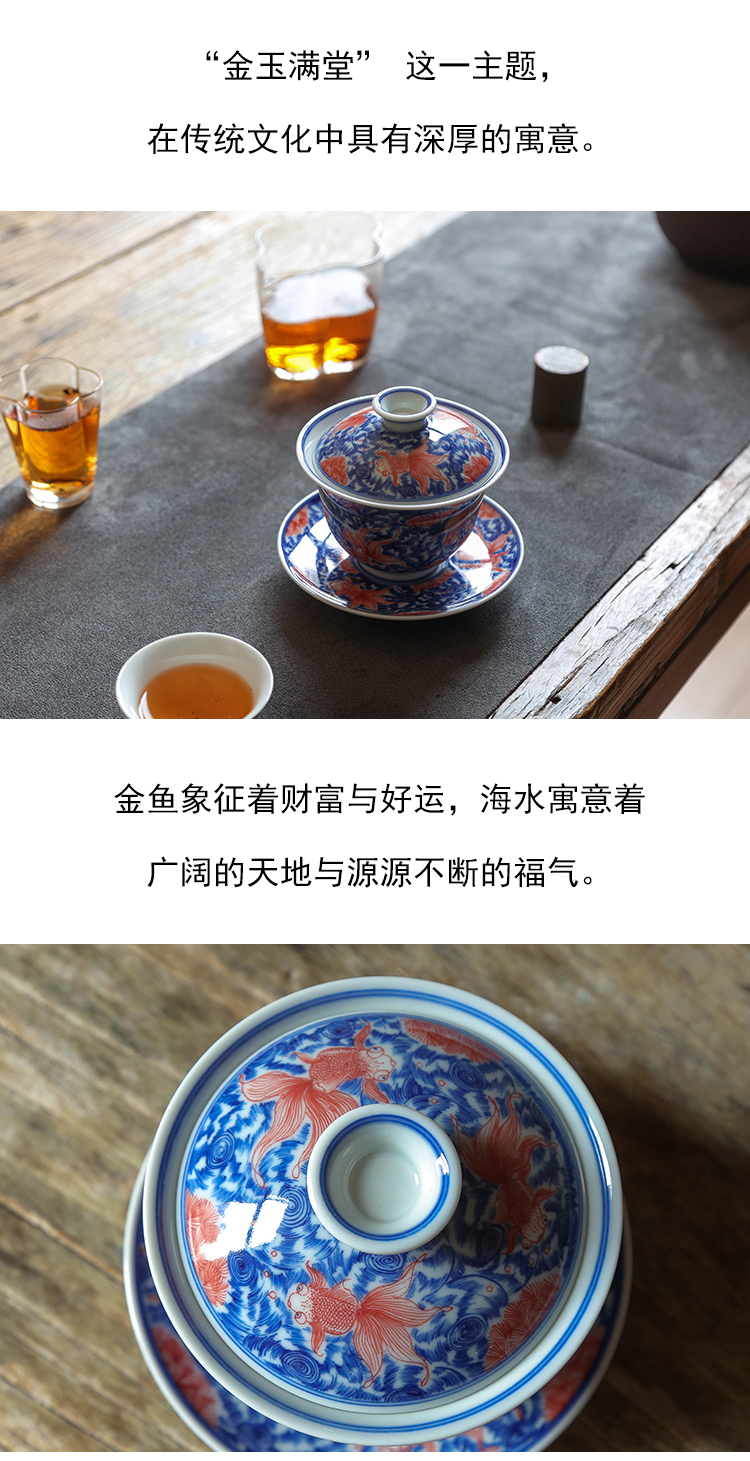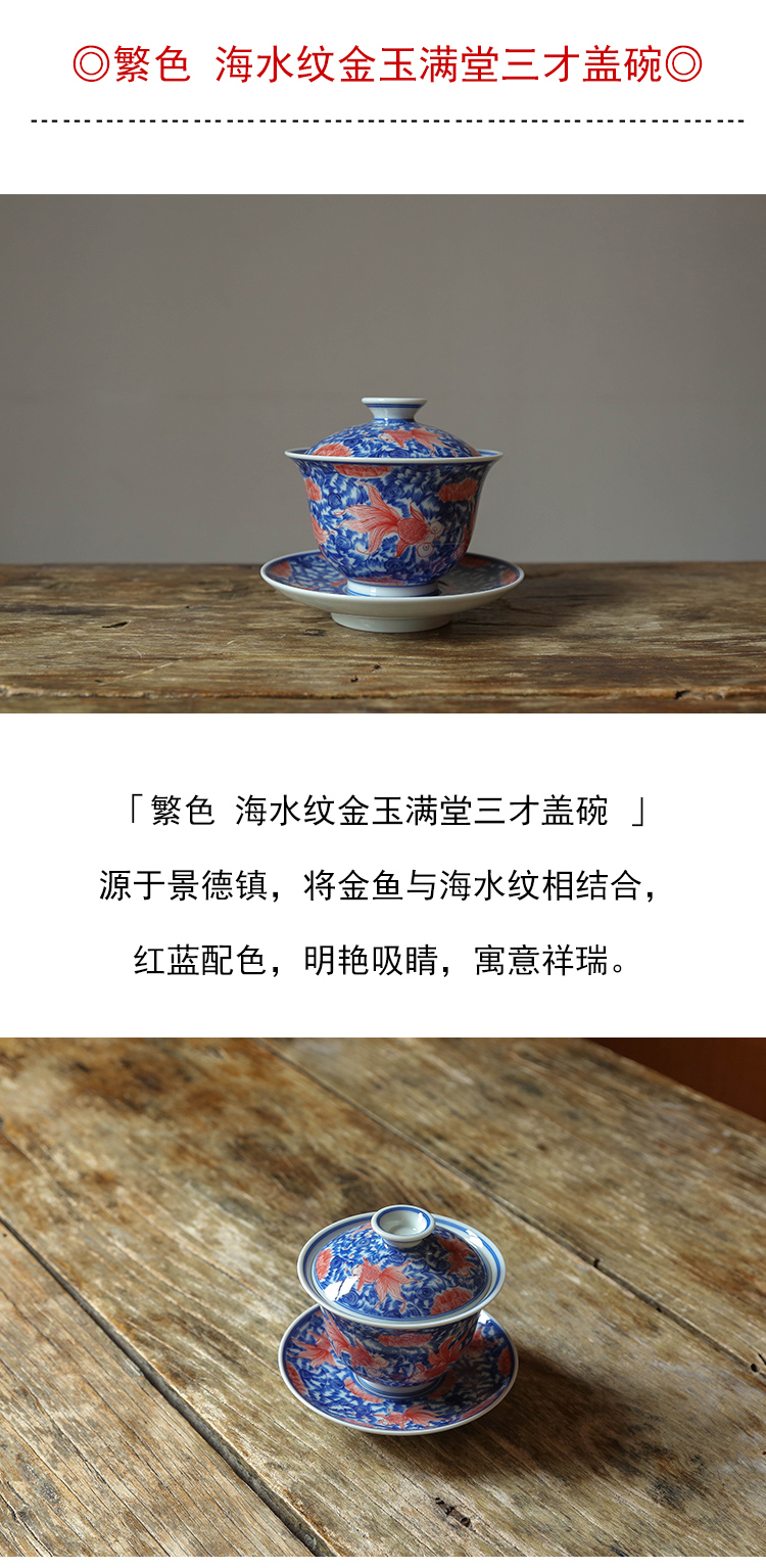 茶香记 繁色海水纹金玉满堂三才盖碗180ml陶瓷青花泡茶碗功夫茶具