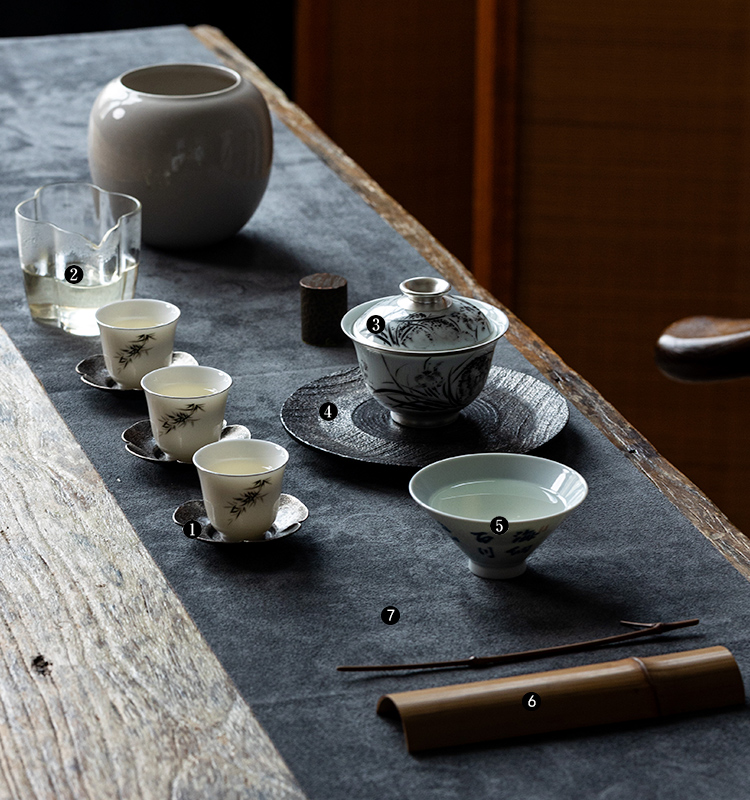 茶香记 合金锡杯垫花瓣杯托茶道配件优雅灵动茶室茶具