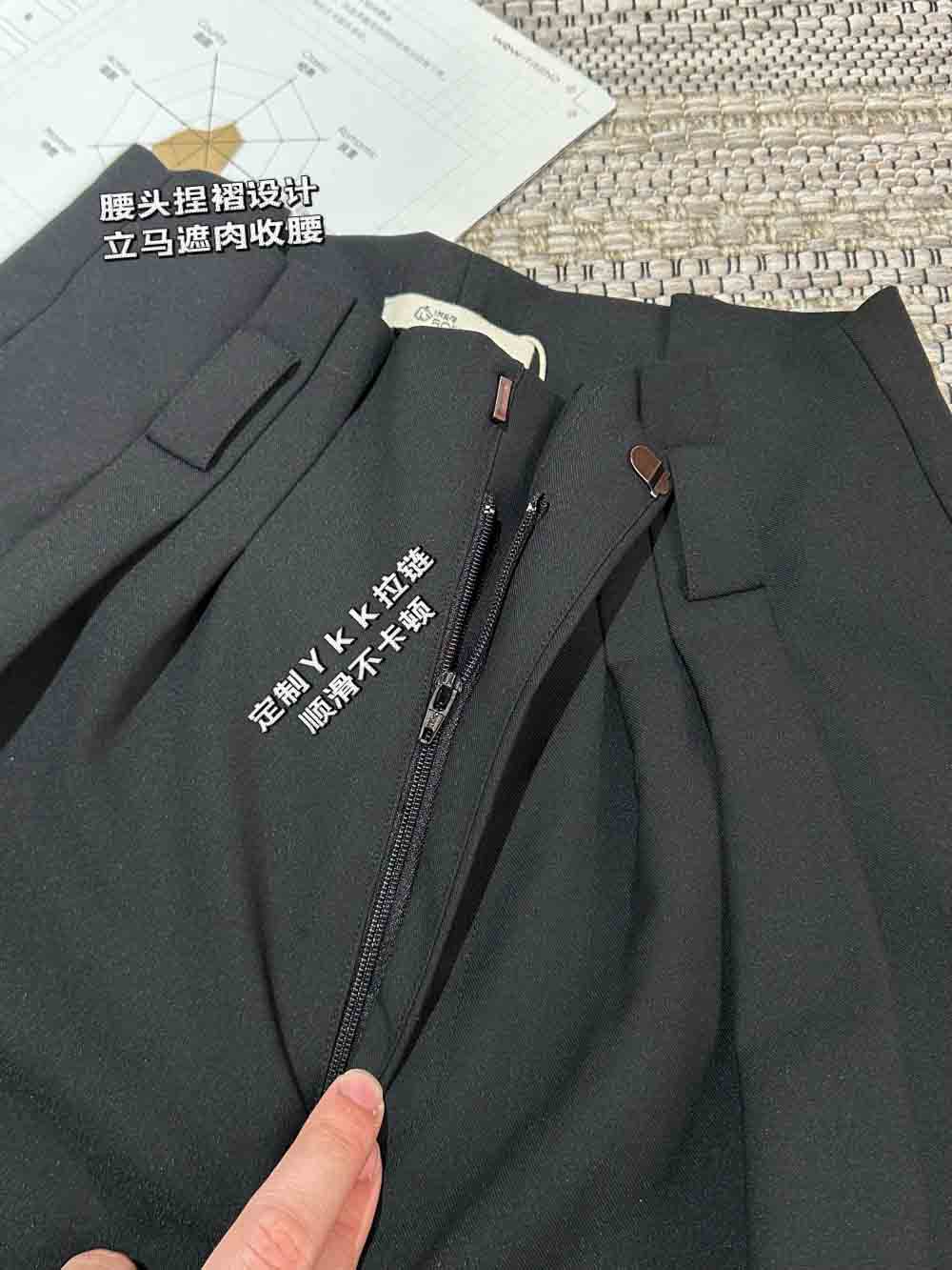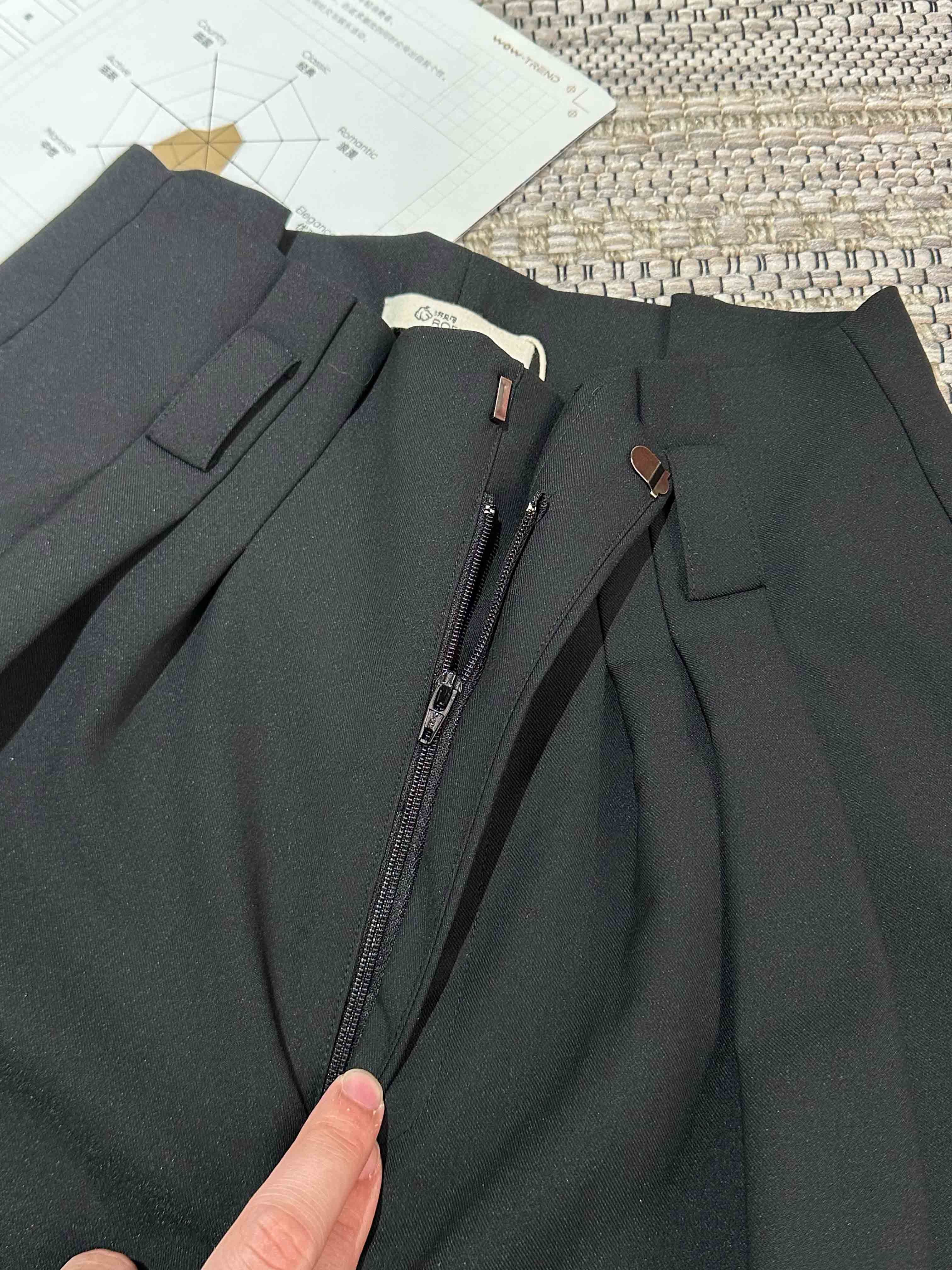 裤身立体捏褶皱设计,视觉收窄腿宽,尽显立体感,拉链顺滑